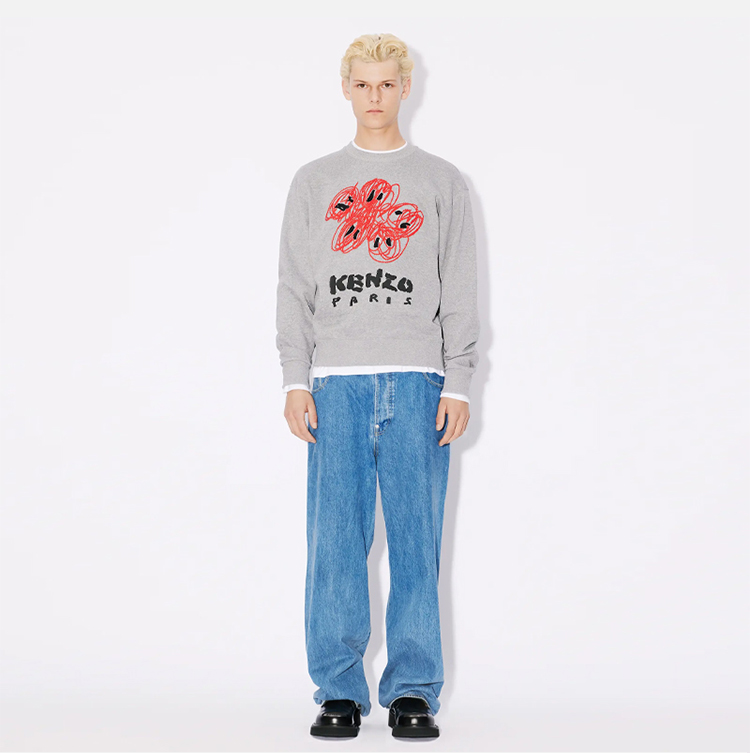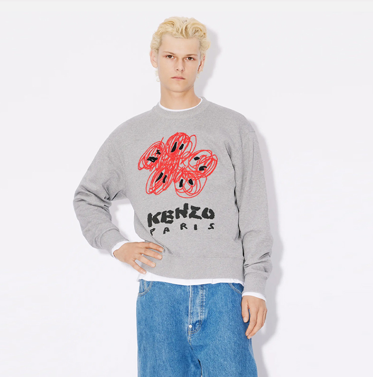 KENZO 高田贤三 男士刺绣徽标棉质长袖卫衣 灰色 FE55 SW170 4MF 94C