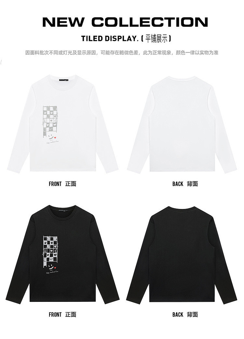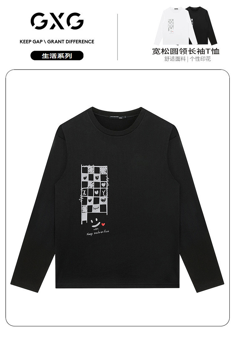 GXG男装【爱心方格】秋季时尚笑脸印花男士百搭圆领长袖T恤K&C