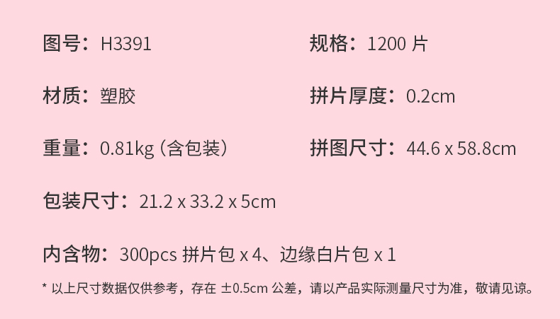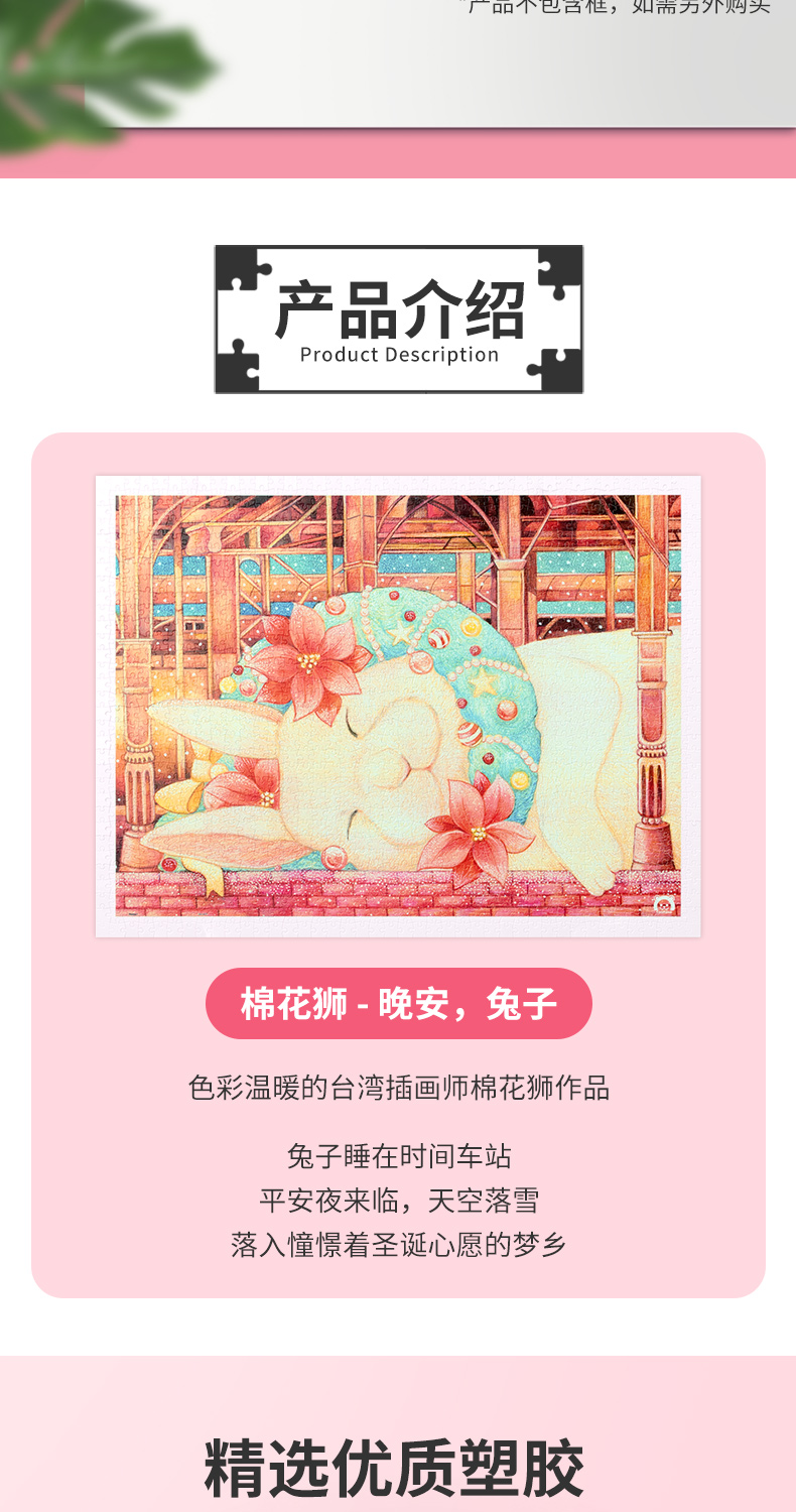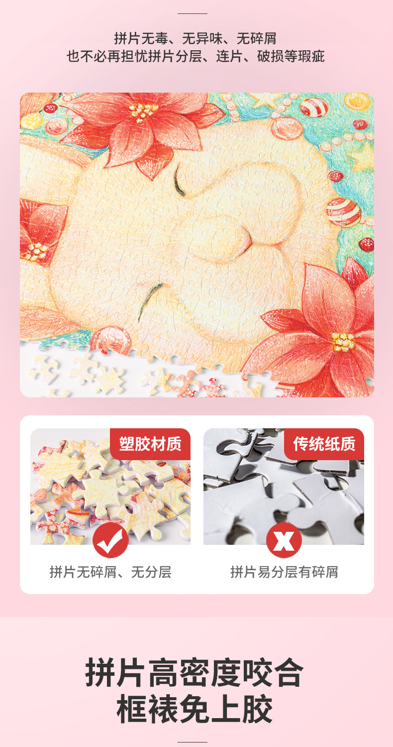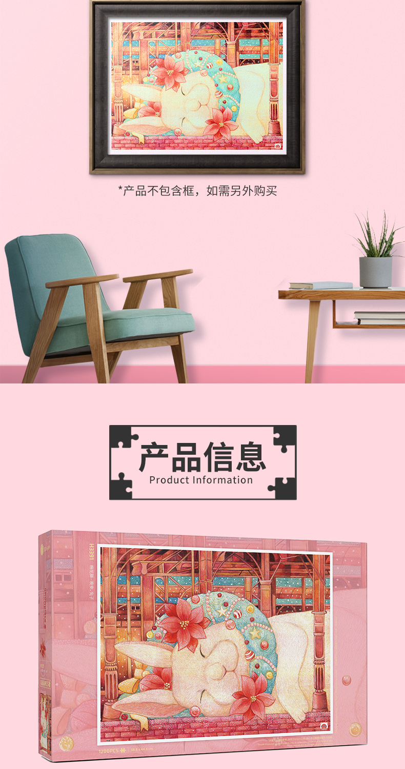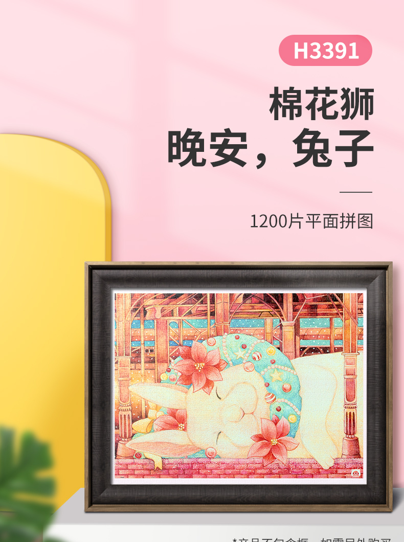 【折扣商品 不退不换】1200片 平面塑料拼图 H3391 棉花狮-棉花狮-晚安,兔子