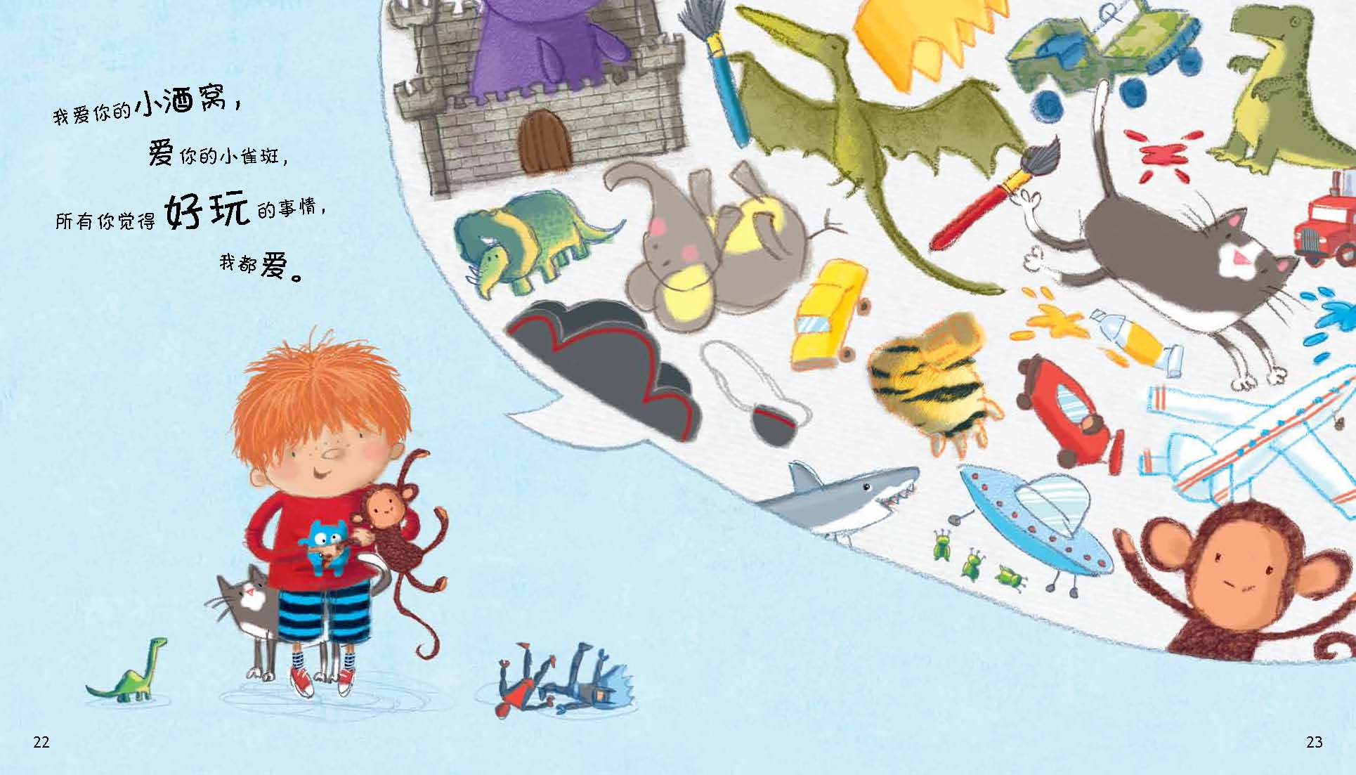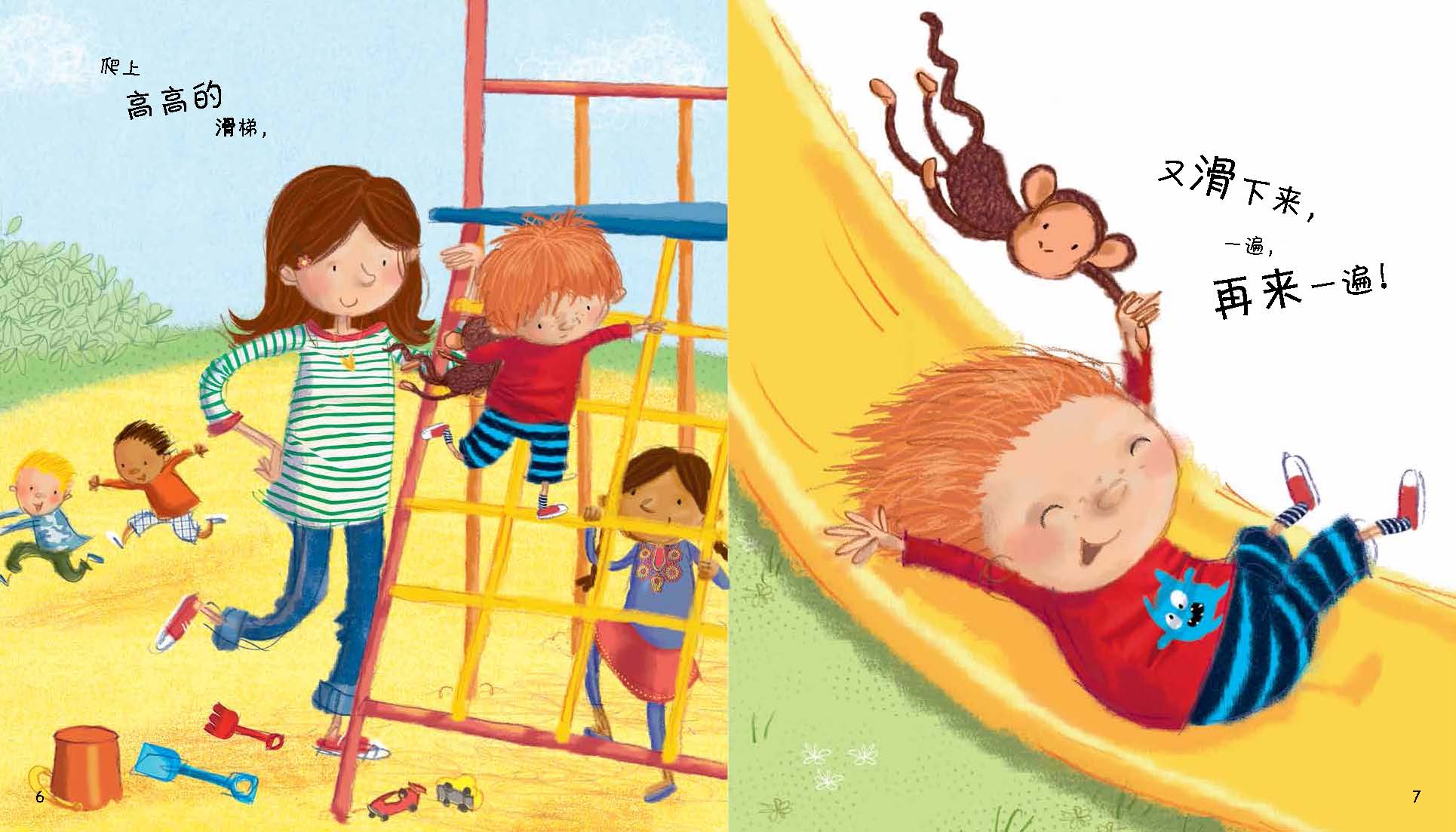 整本书里,亚麻色头发的小男孩一直都是主角,而妈妈只是陪伴在他的左右,或支持、或鼓励、或与孩子一起欢笑。爱,有时并不需要语言的表达,一个接纳的眼神,一个温暖的拥抱,一个轻柔的亲吻,已经让孩子感受到全然的爱。