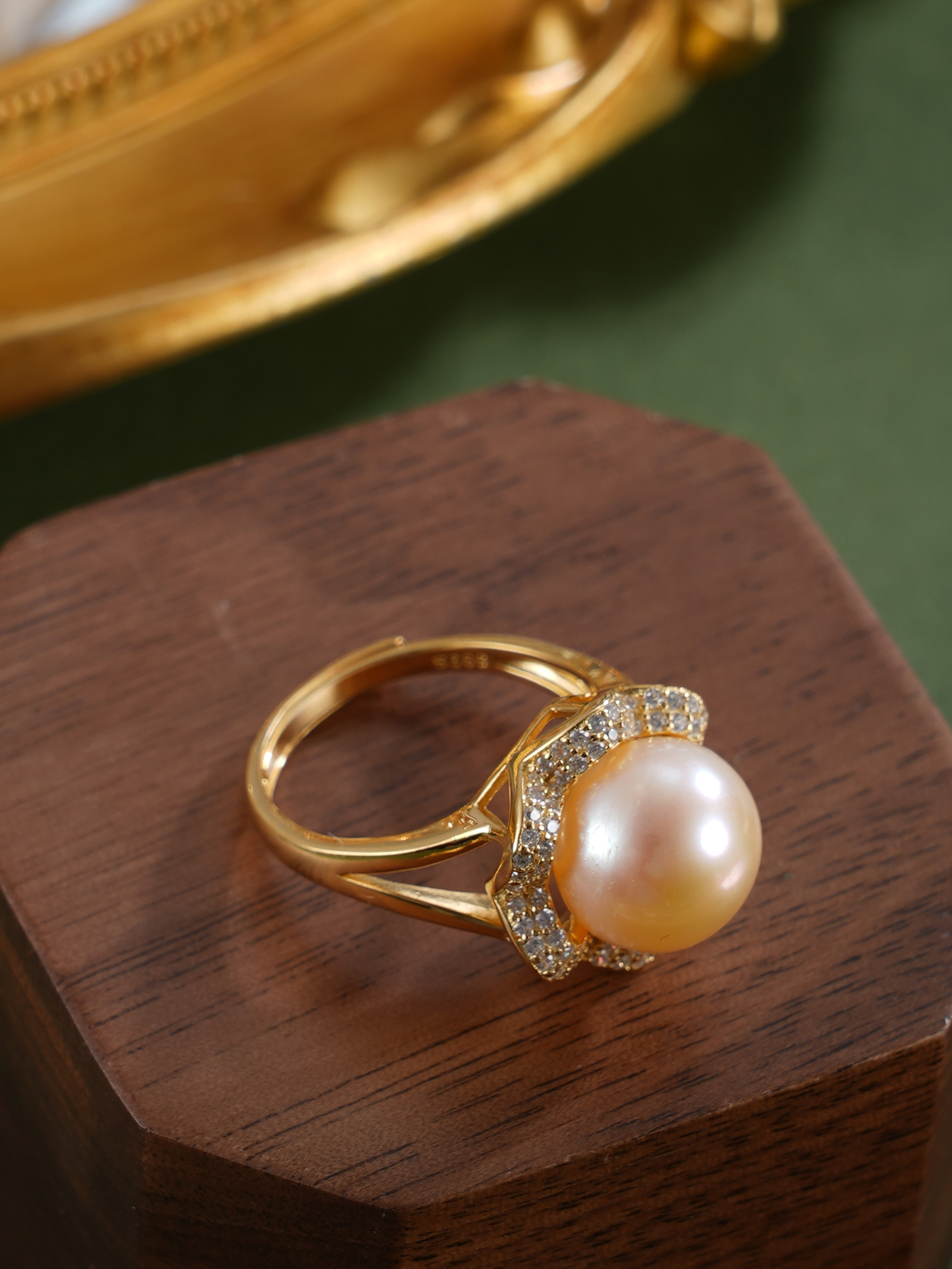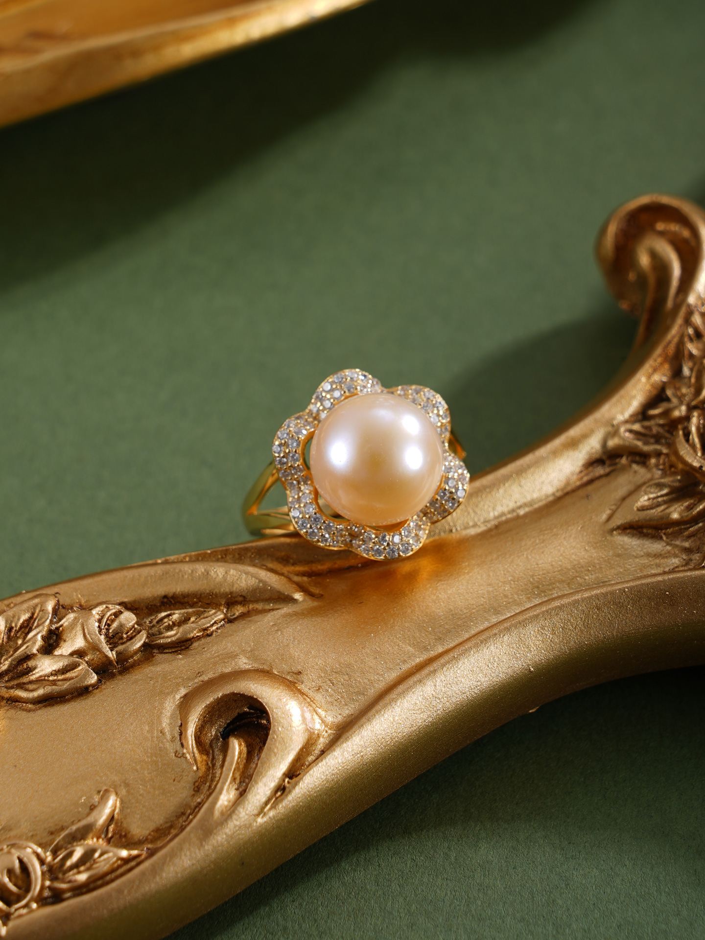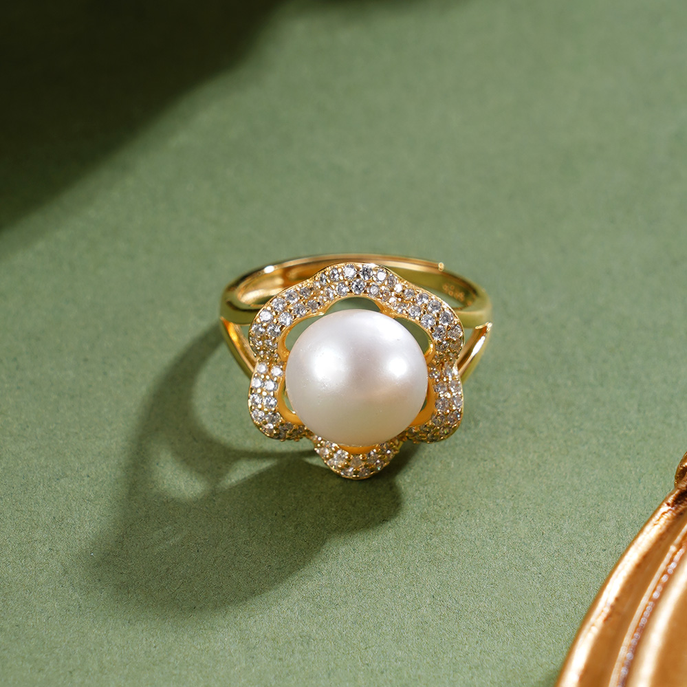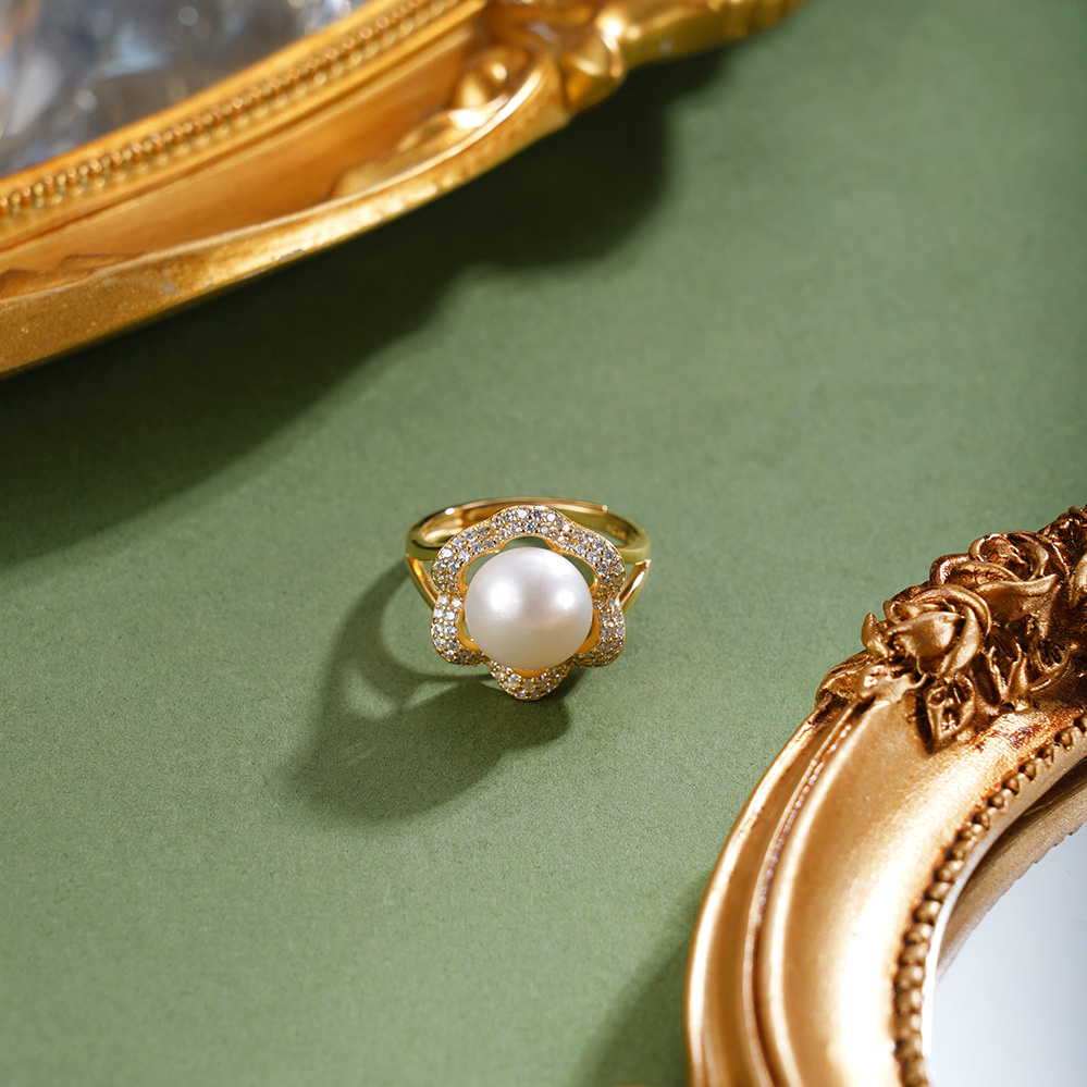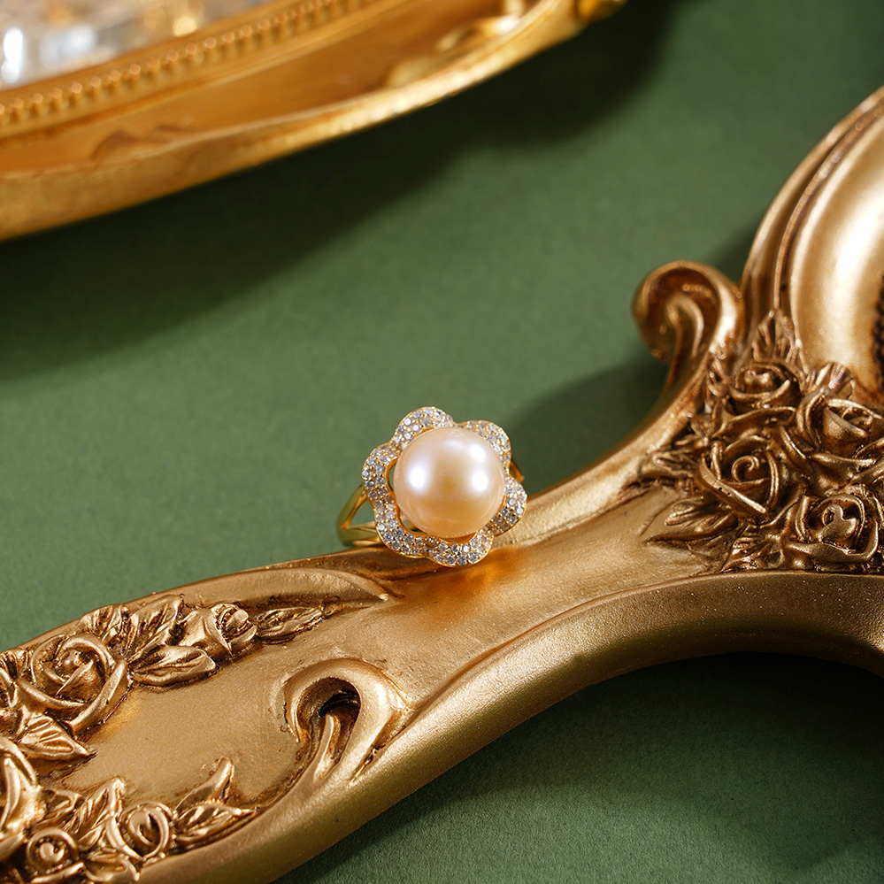 子佩集【繁花物语】银S925珍珠惜王妃戒指【R1873A】10.5mm珠镀金花朵金色珠2601