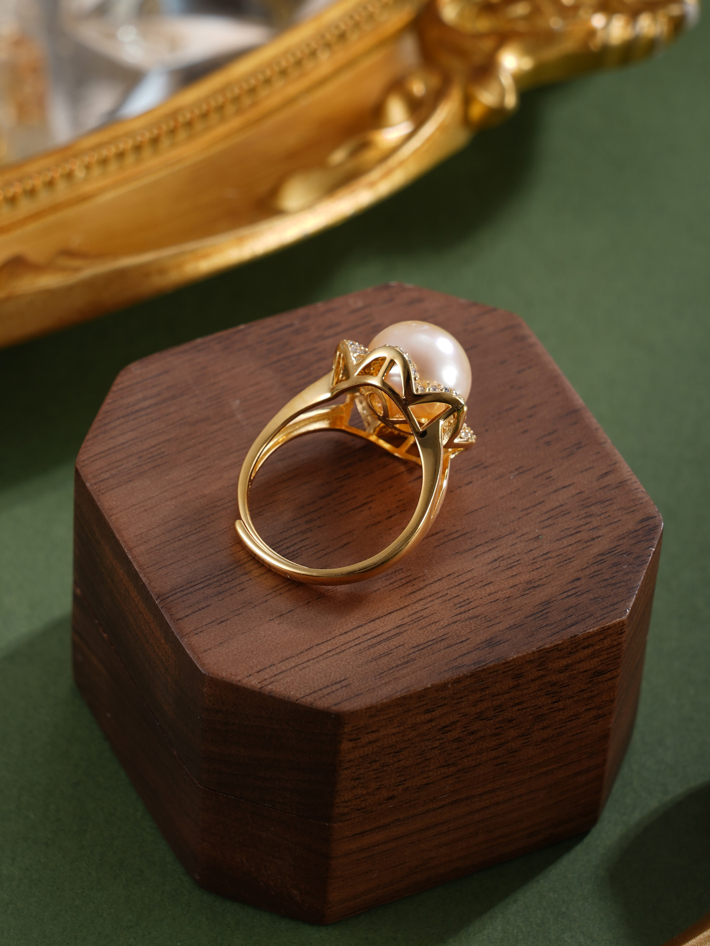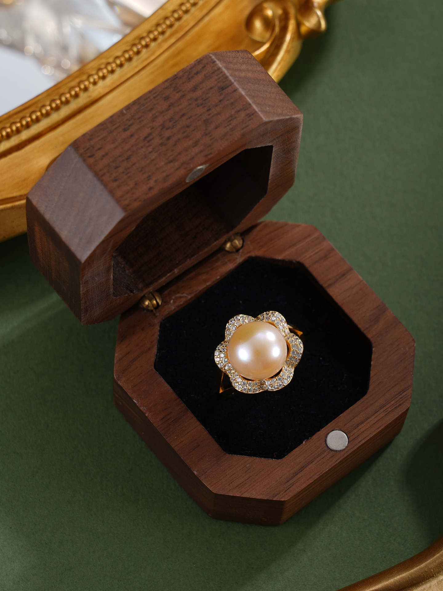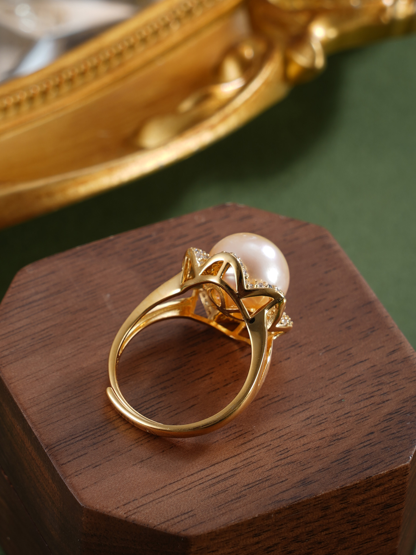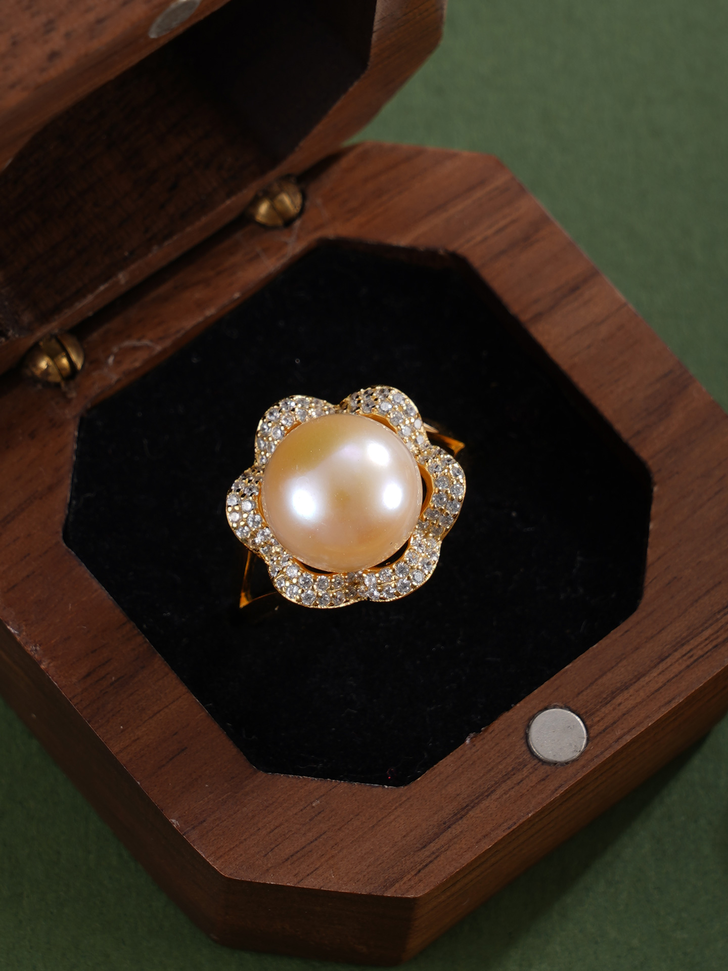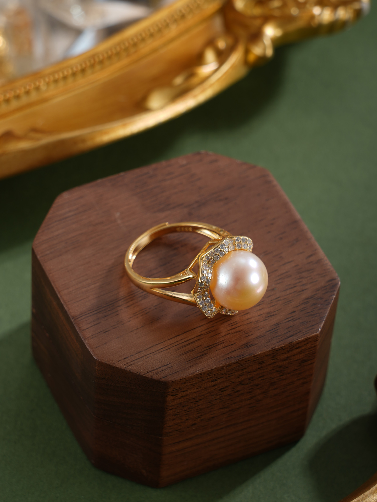 子佩集【繁花物语】银S925珍珠惜王妃戒指【R1873A】10.5mm珠镀金花朵金色珠2601