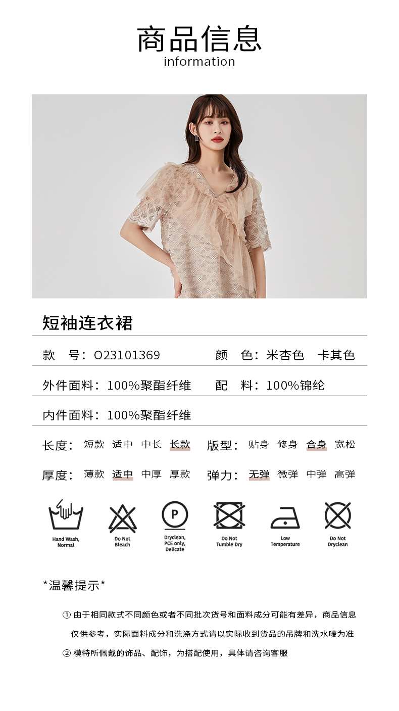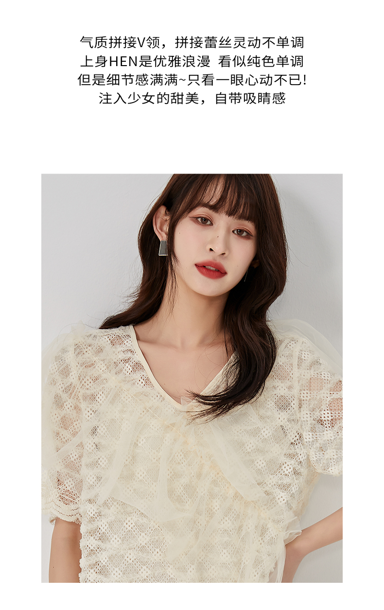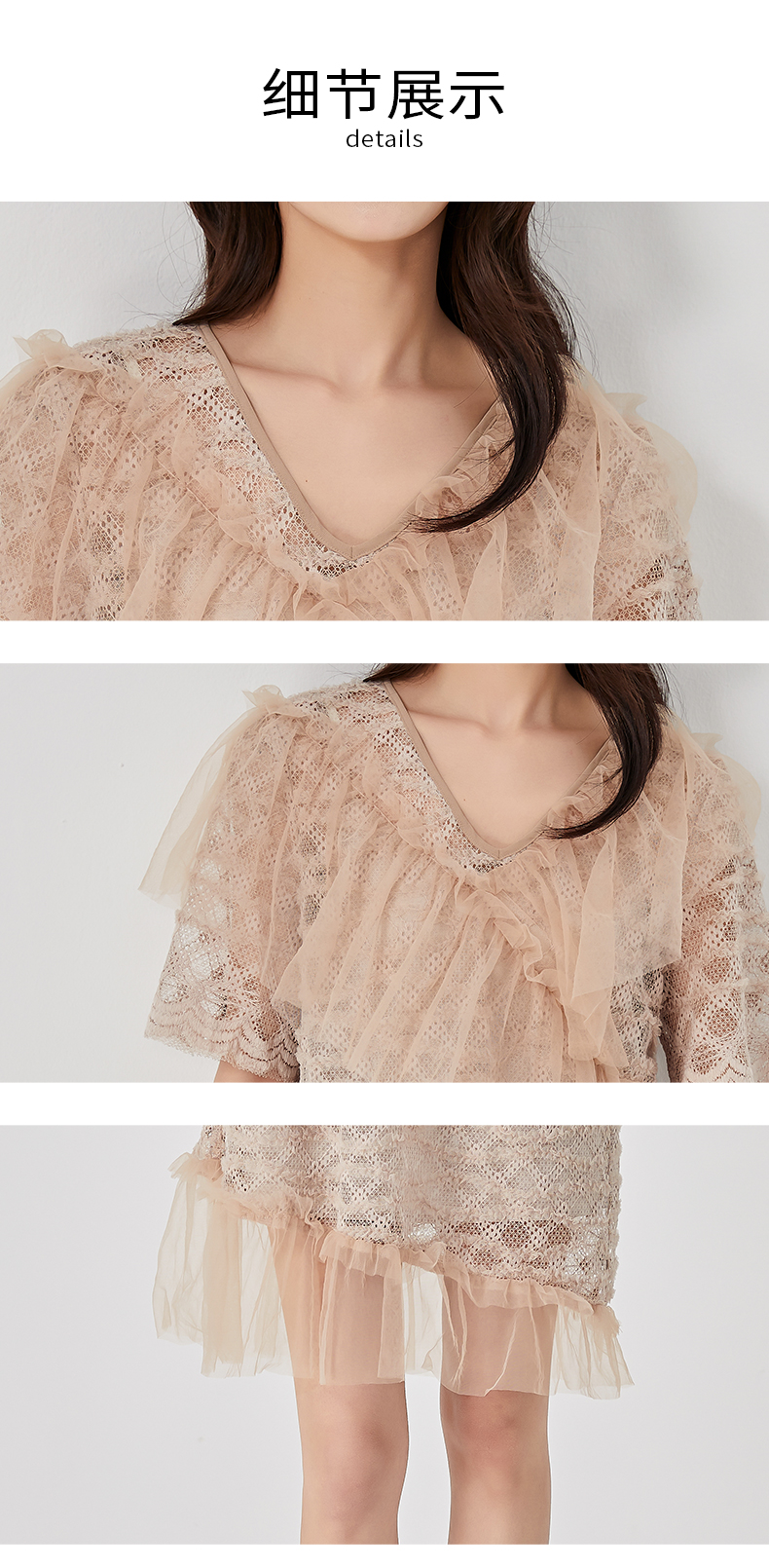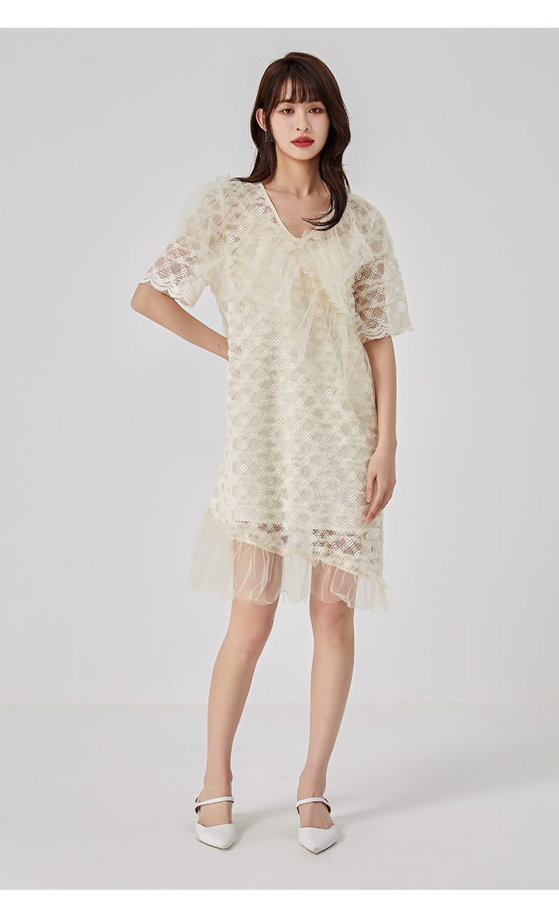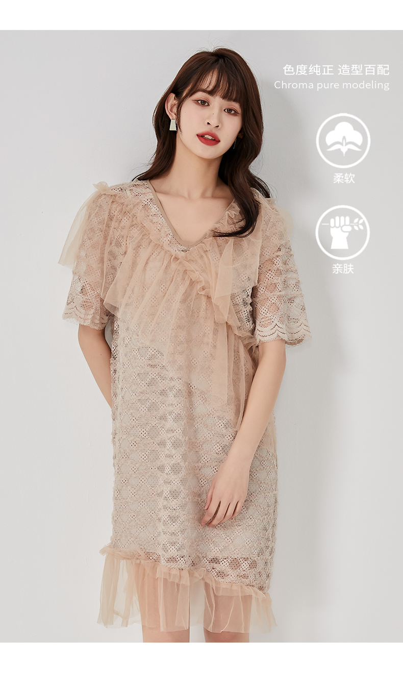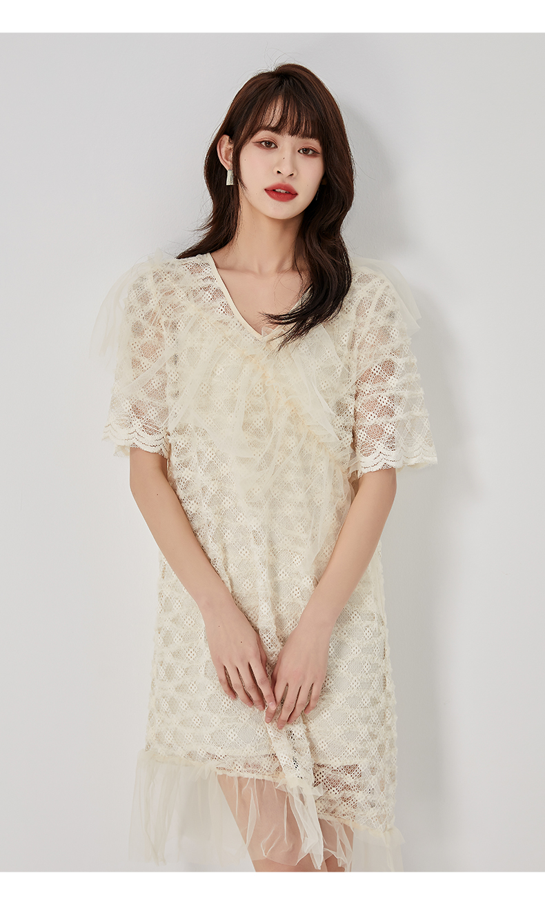 oldcolour夏新款时尚气质蕾丝V领宽松连衣裙两件套O23101369