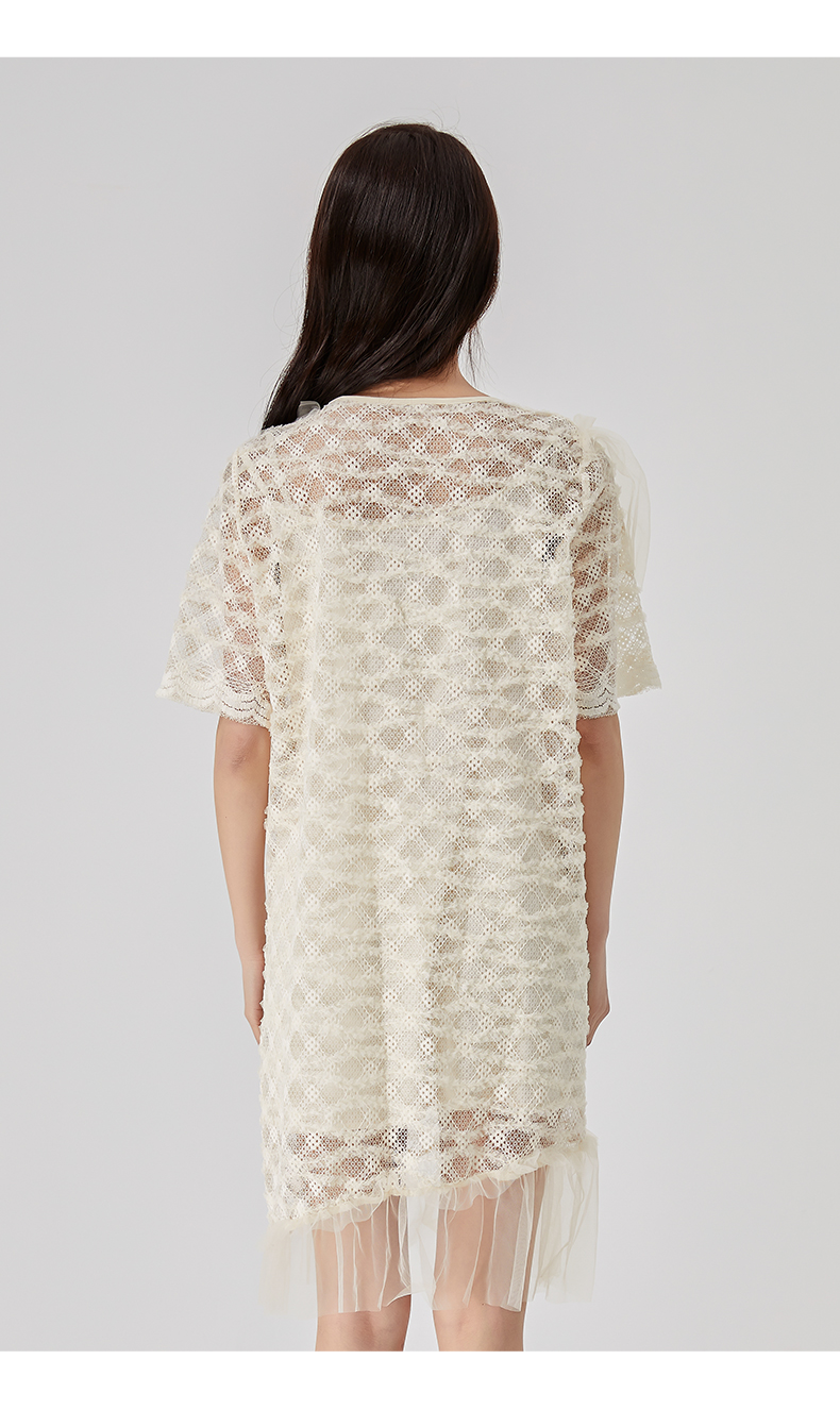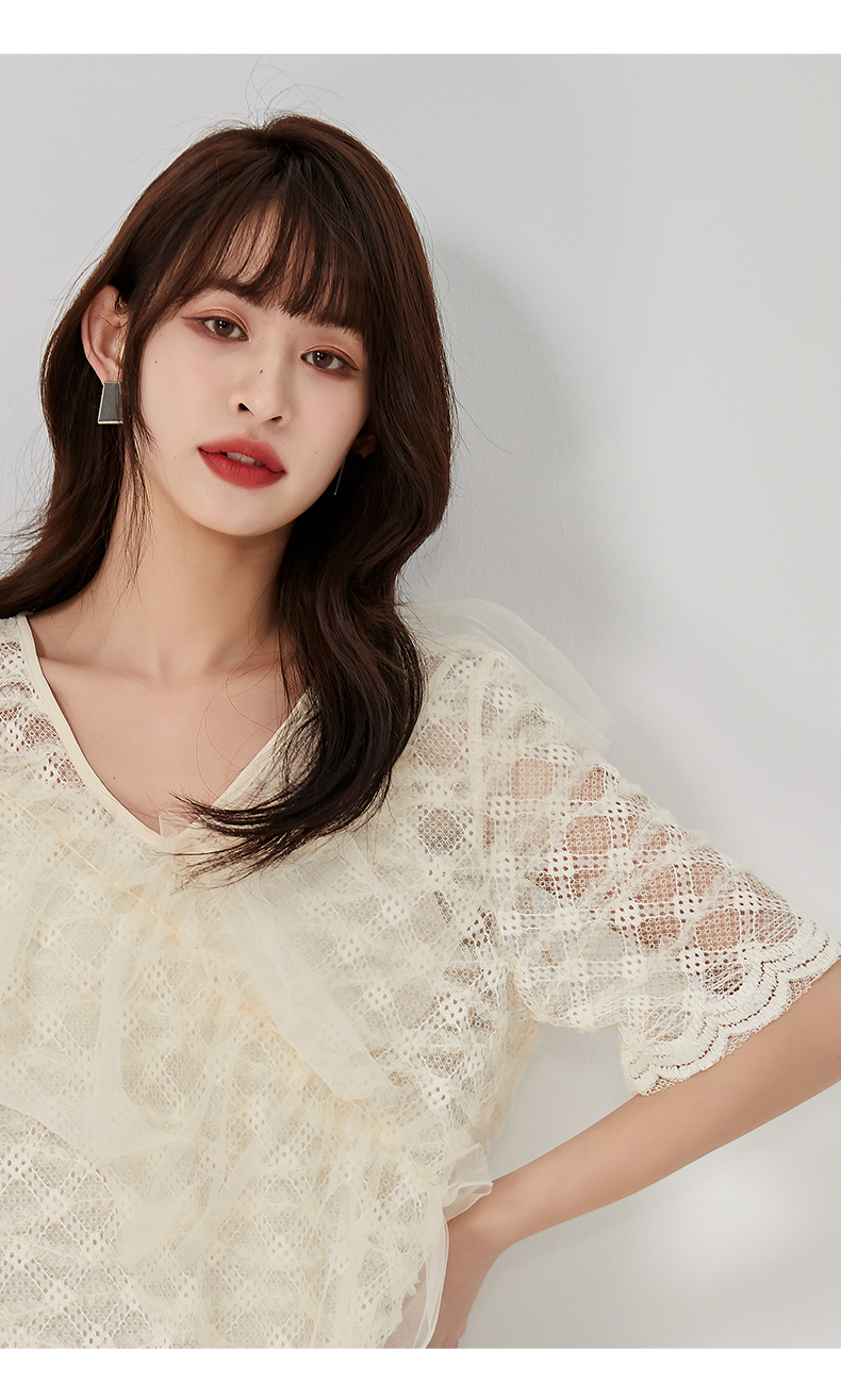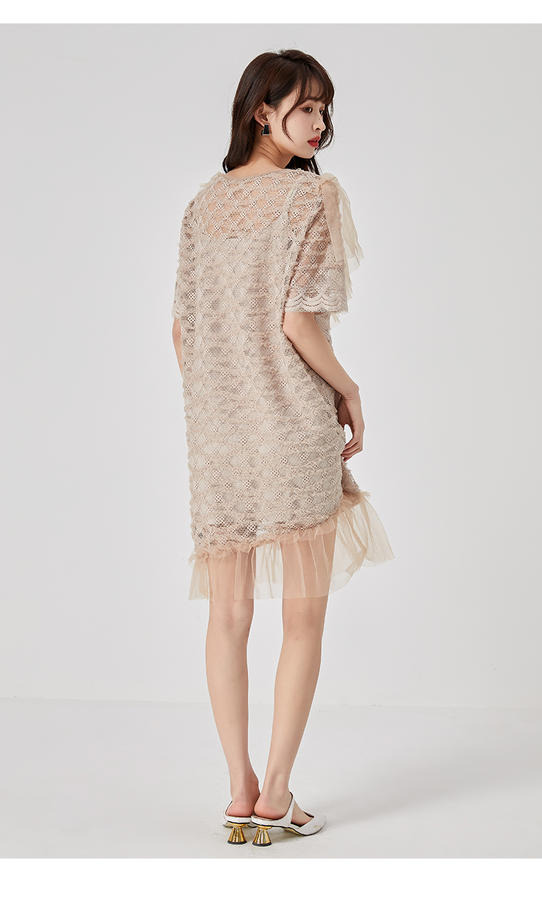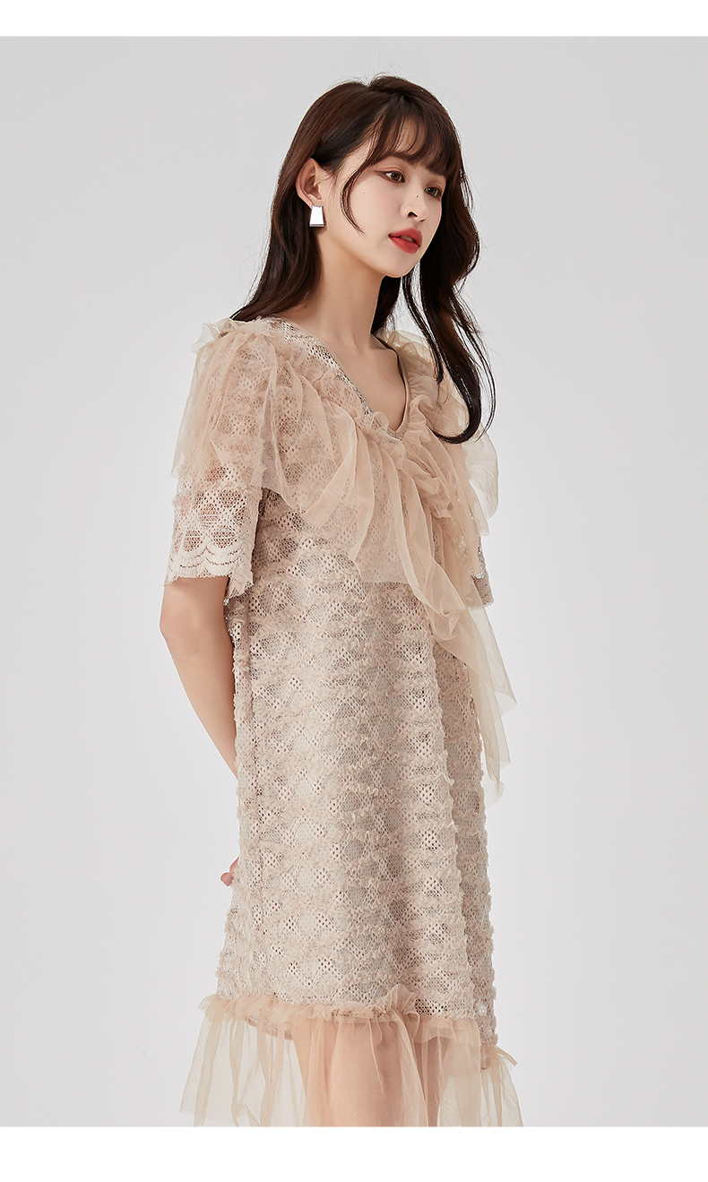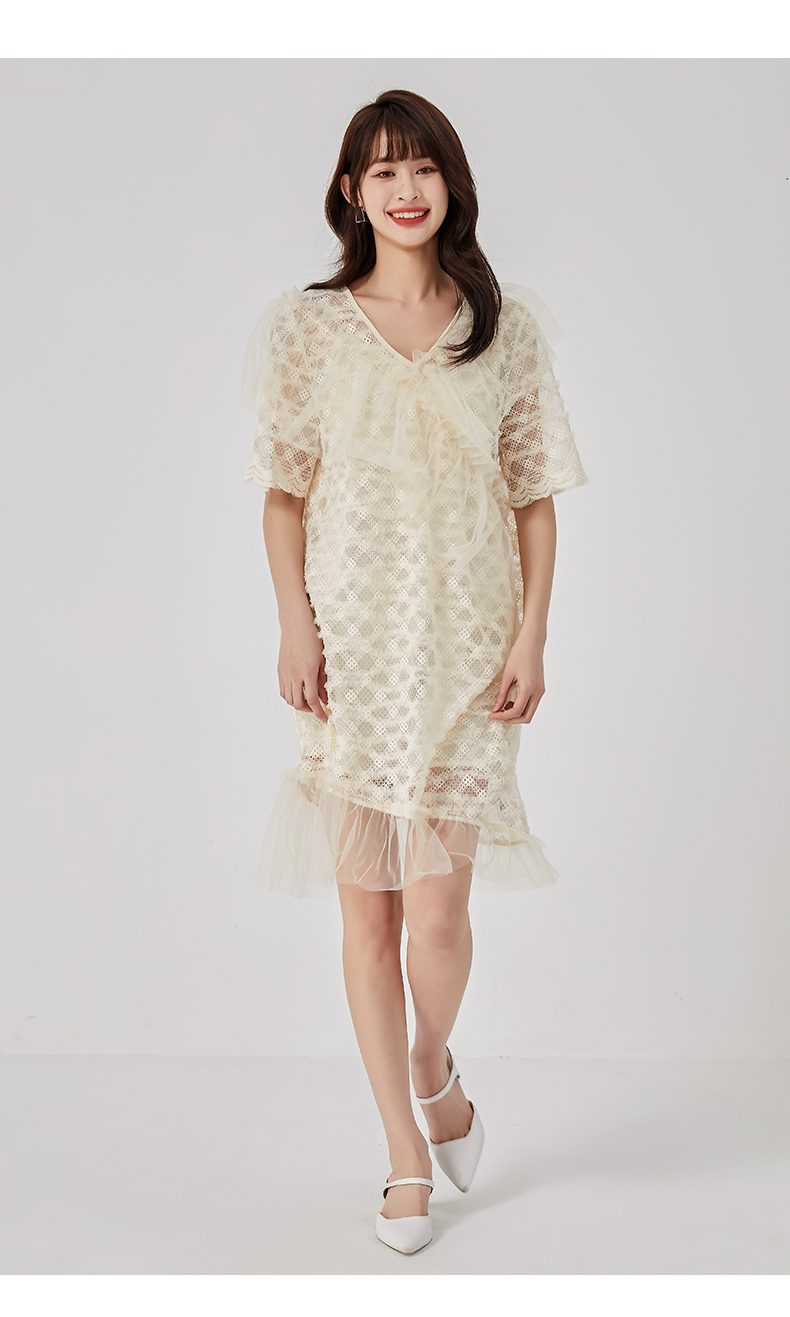 oldcolour夏新款时尚气质蕾丝V领宽松连衣裙两件套O23101369