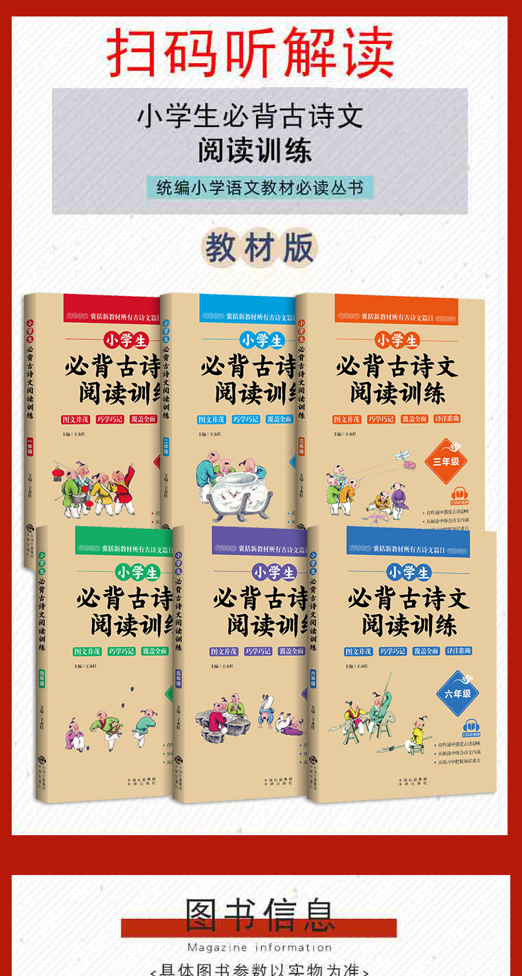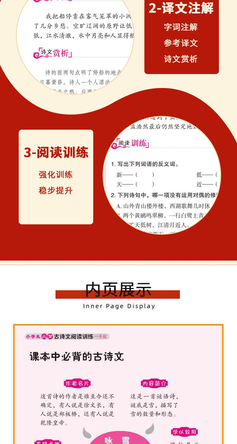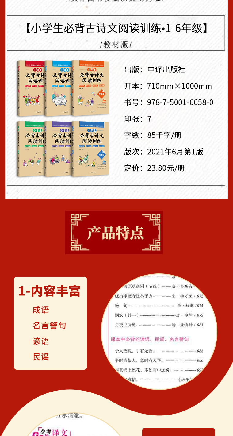 小学生必背古诗文阅读训练新版一年级二年级三年级四年级五年级六年级阅读理解专项训练强化练习阶梯测试古诗词译注赏析小古文