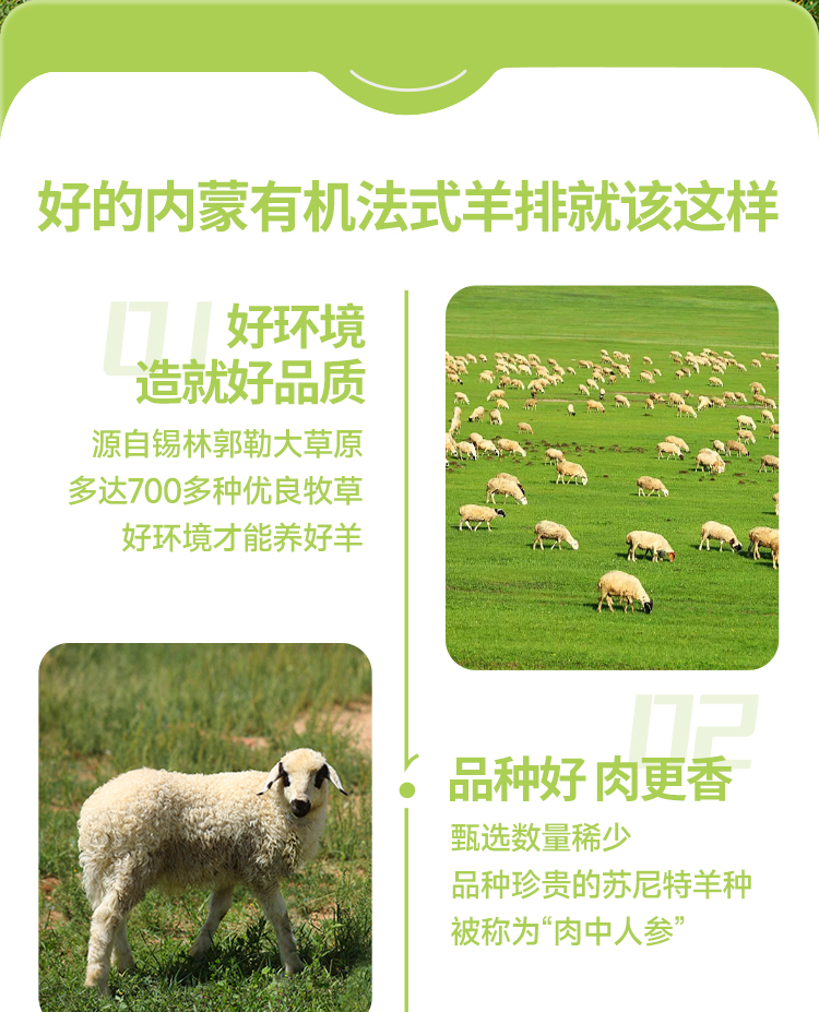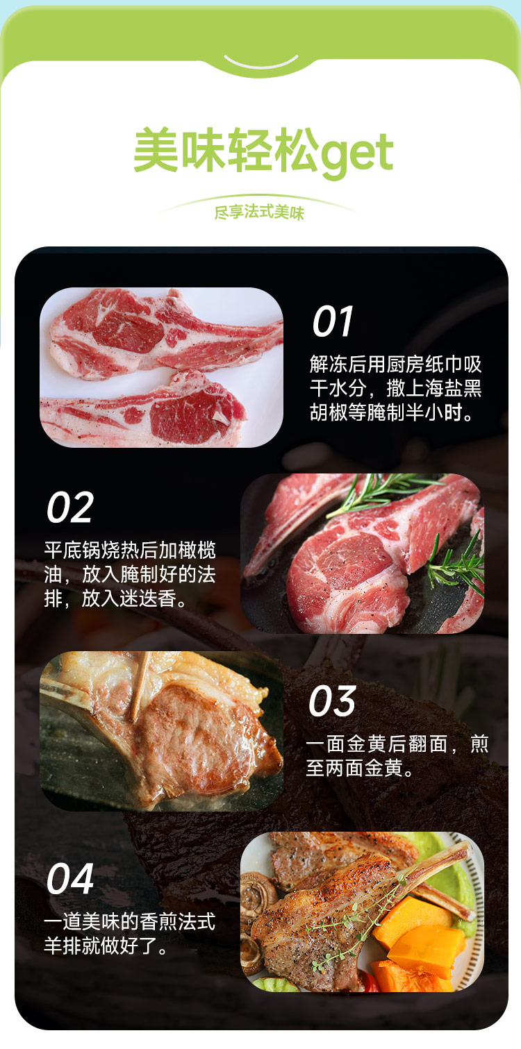 【易煎易熟空气炸锅轻松搞定】牧北鲜锡盟6月龄苏尼特羔羊有机法排小切到手约6-8根赠海盐黑胡椒
