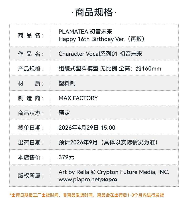 【GSC预售定金】PLAMATEA 初音未来 Happy 16th Birthday Ver. 附官方限定特典
