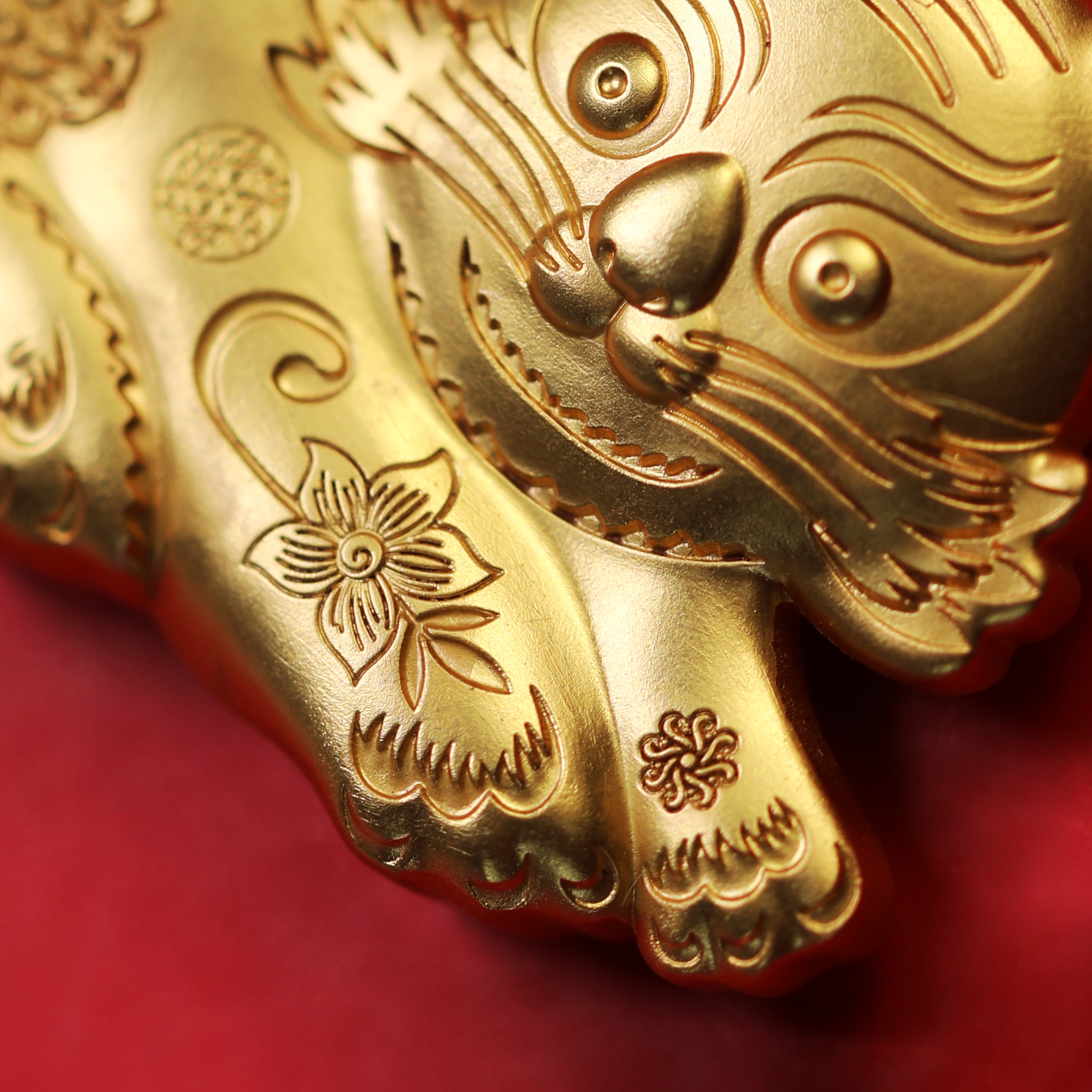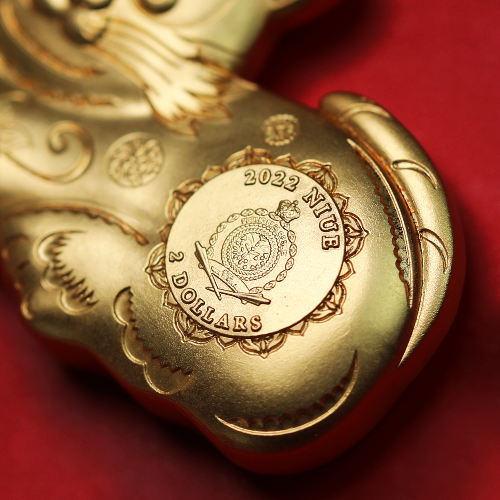 为迎接2022壬寅虎年的到来,纽埃发行了一枚3D立体、异形设计的虎年纪念币!通体镀金,极为特别!
