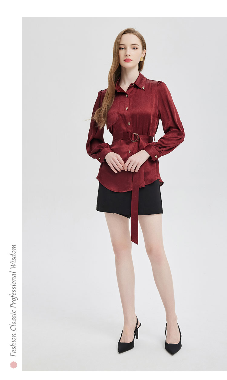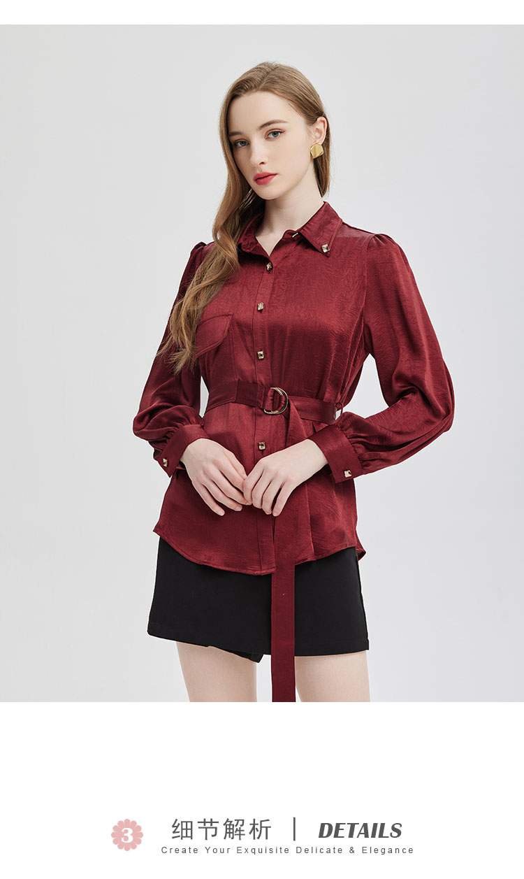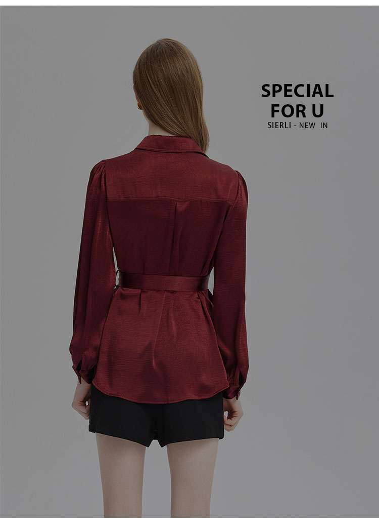 PE257斯尔丽24春夏新款设计感绑带不对称口袋显瘦时尚小众长衬衫