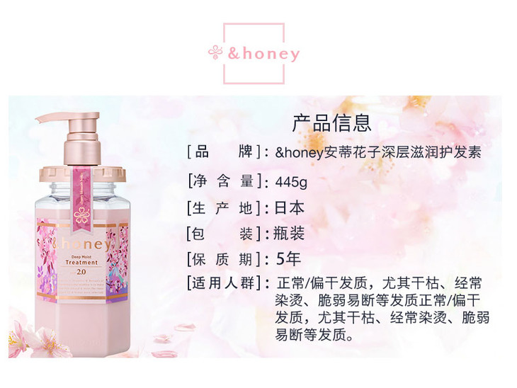 日本honey安蒂花子樱花护发素女滋润柔顺修复受损抚平毛躁无硅油