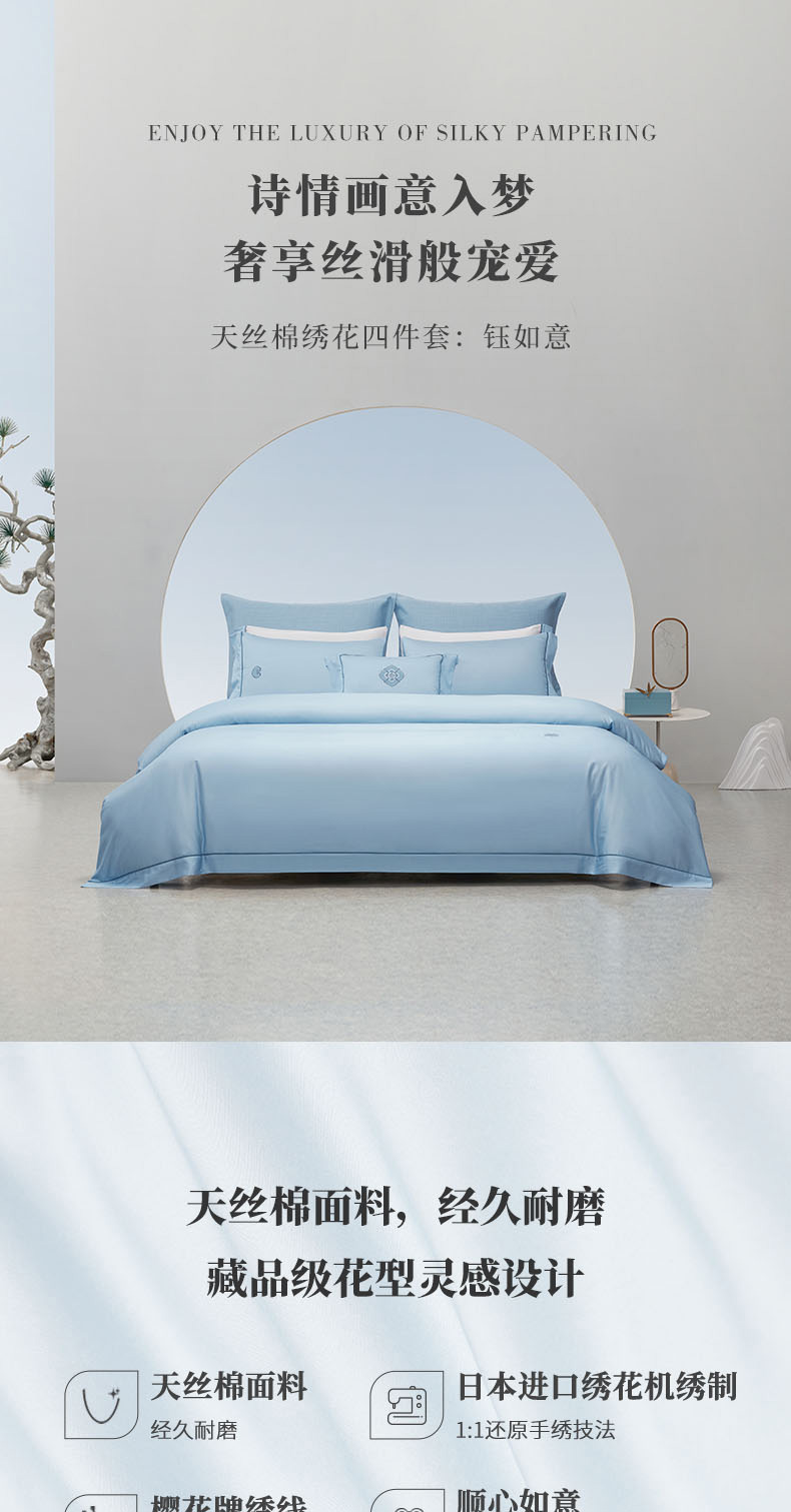 梦洁钰如意天丝面套件+天丝棉夏被组合