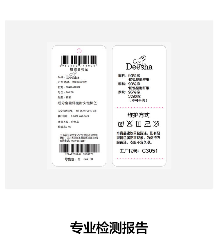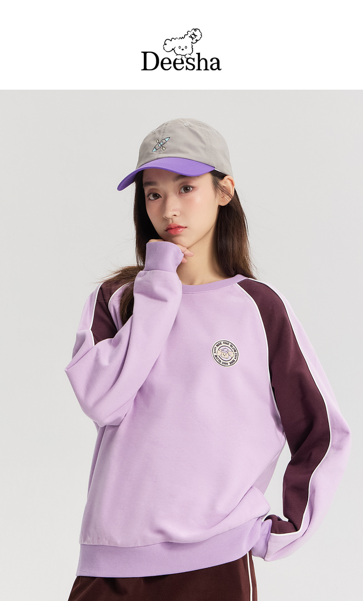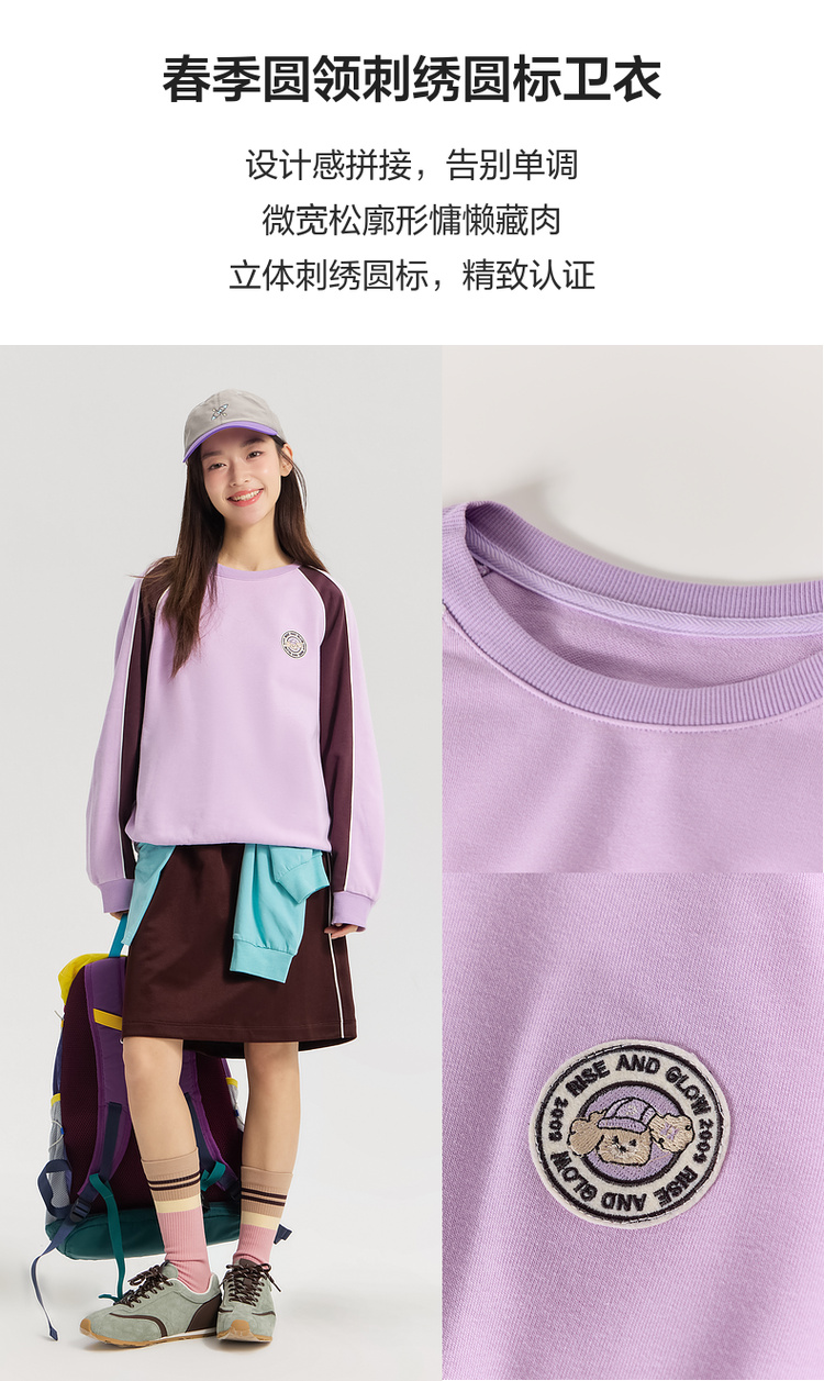 笛莎Deesha青少年女童卫衣2026春季女童春季圆领刺绣圆标卫衣
