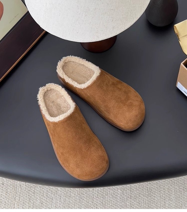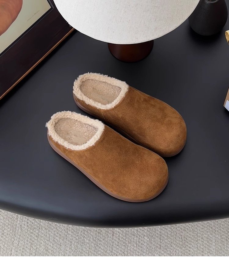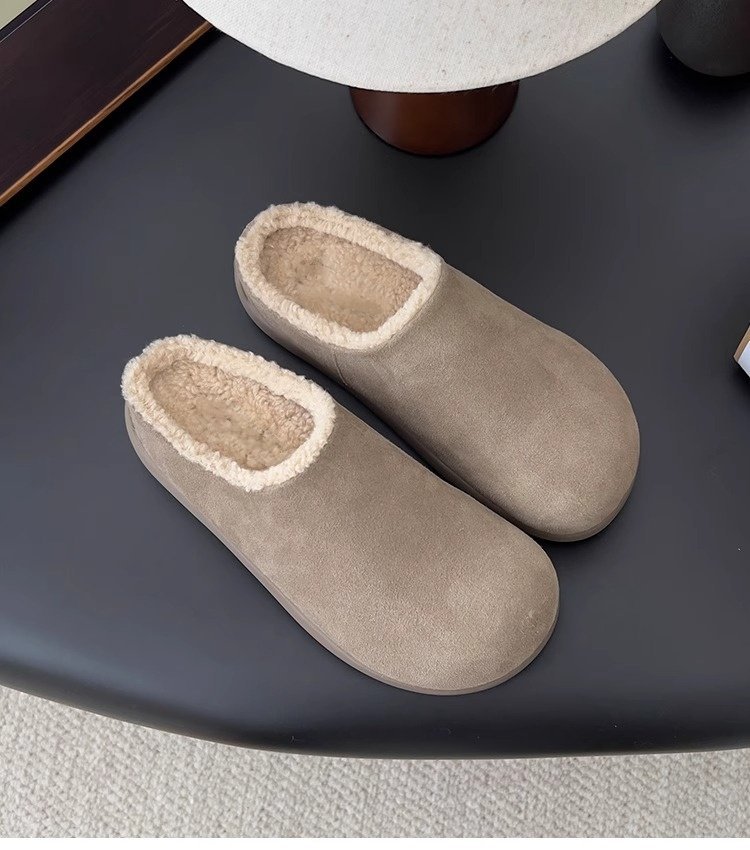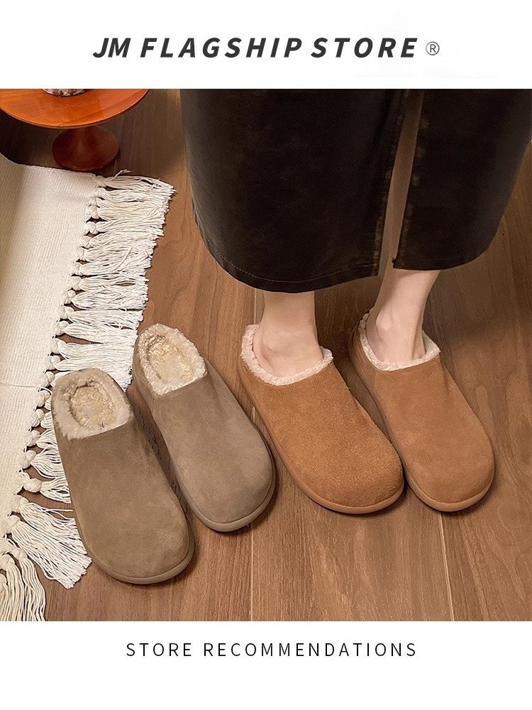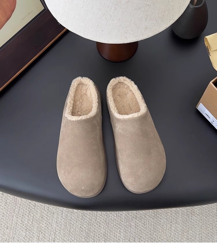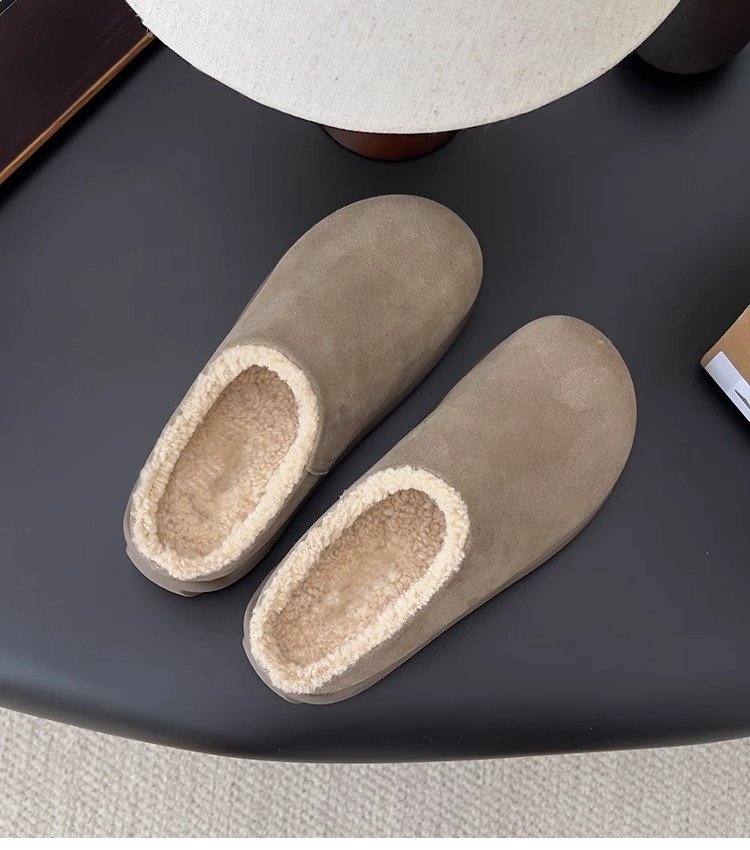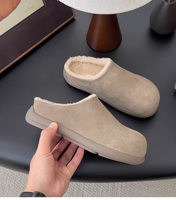 【勃肯毛毛鞋加绒】新款冬季 一脚蹬包头穆勒鞋 厚底防寒保暖棉拖鞋