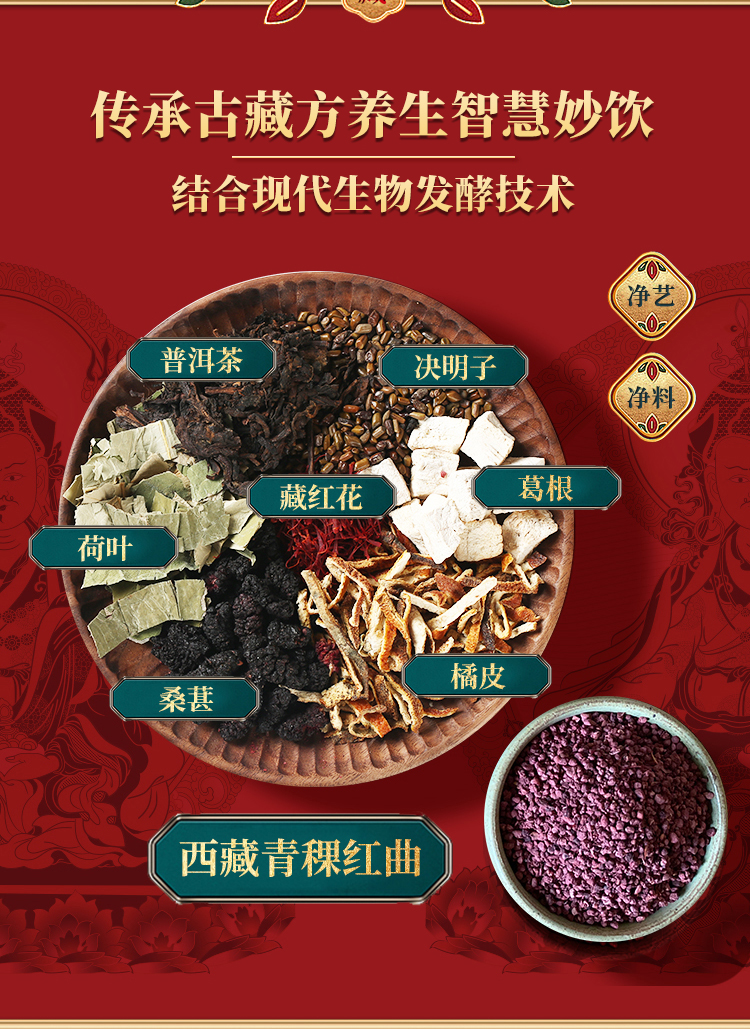 减轻腹担 古藏方与现代发酵结合的青稞红曲茶 4g*30袋/盒