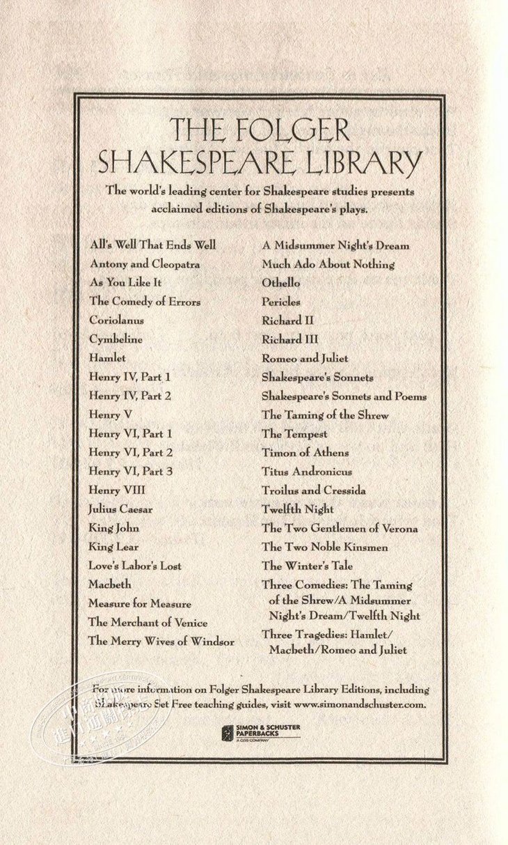 丛书名: Folger Shakespeare Library