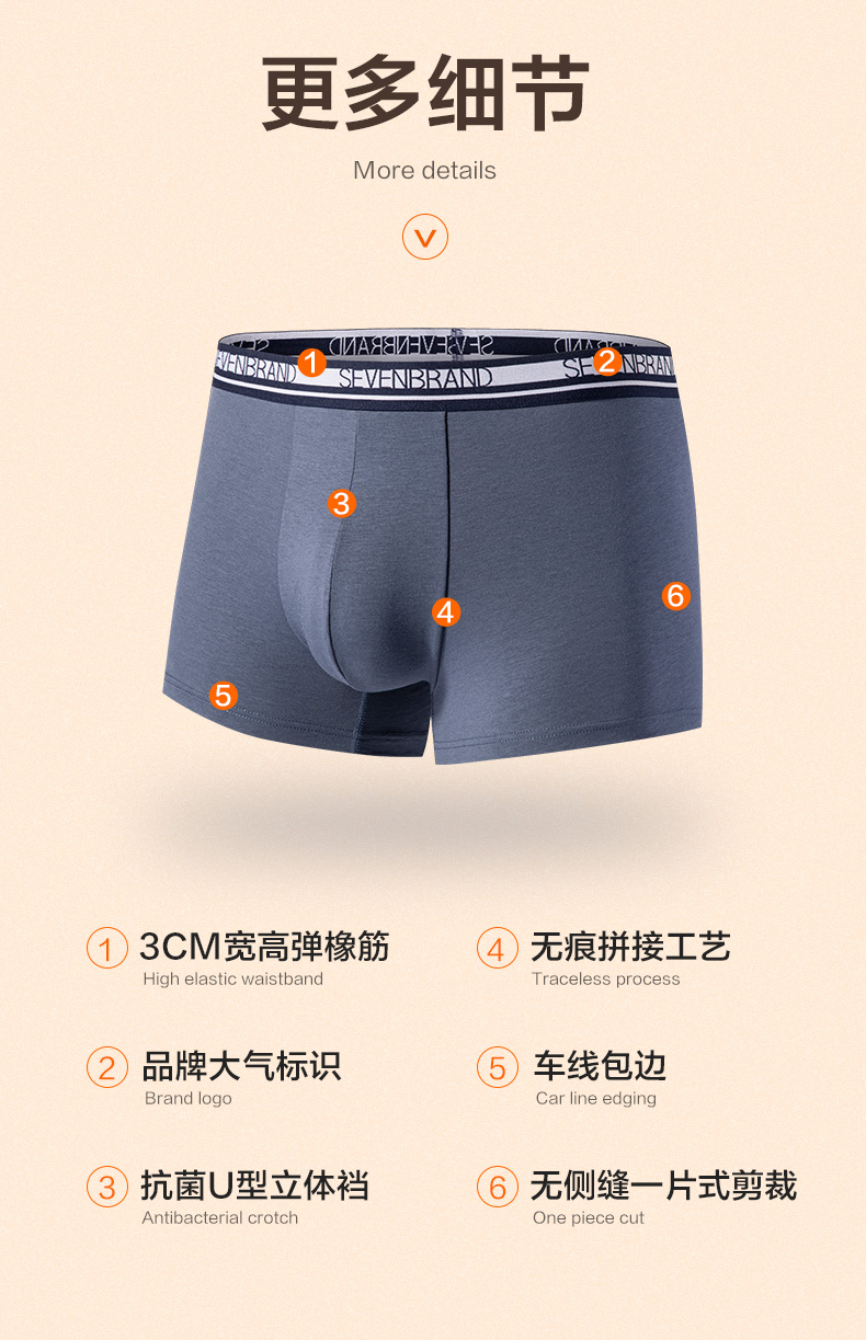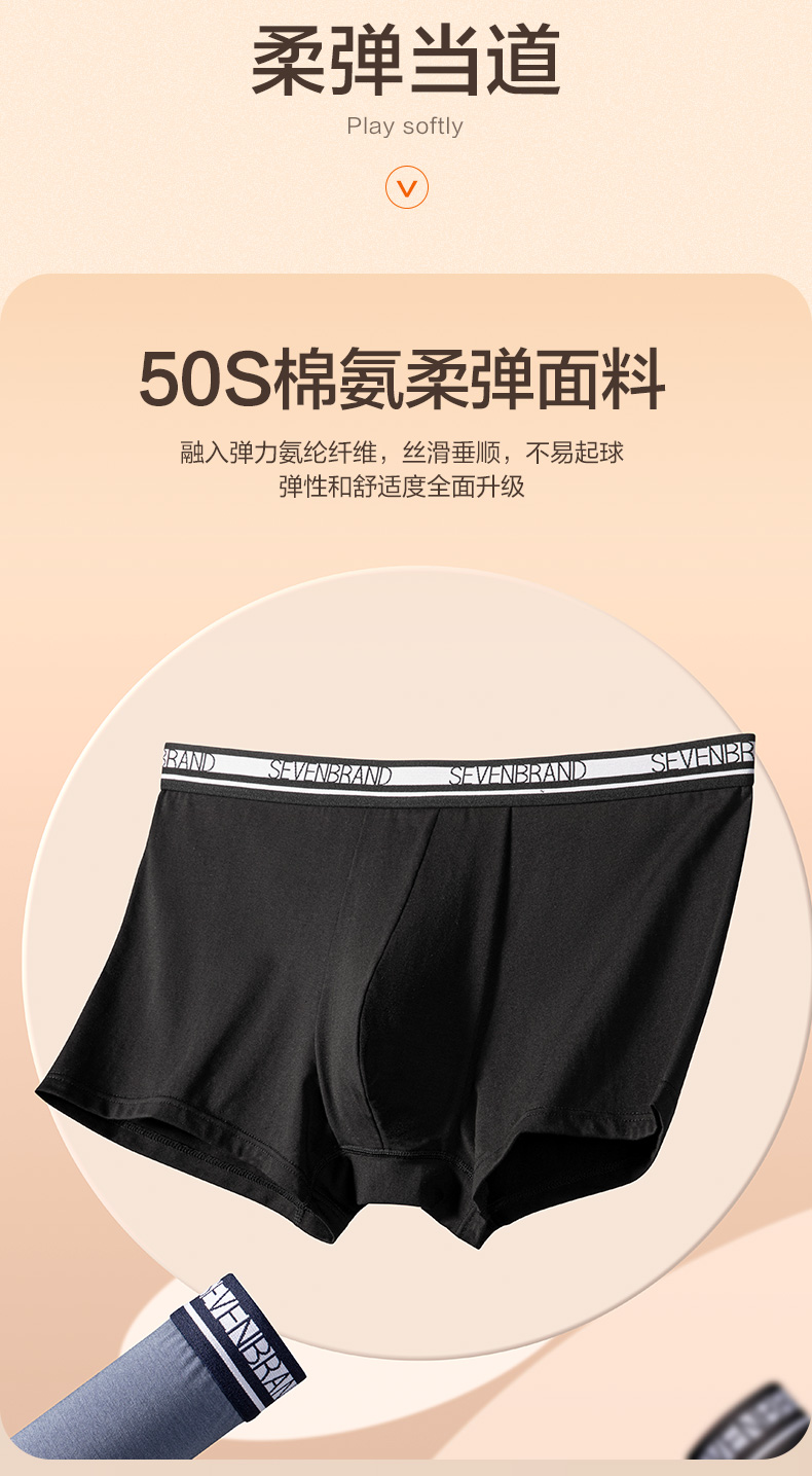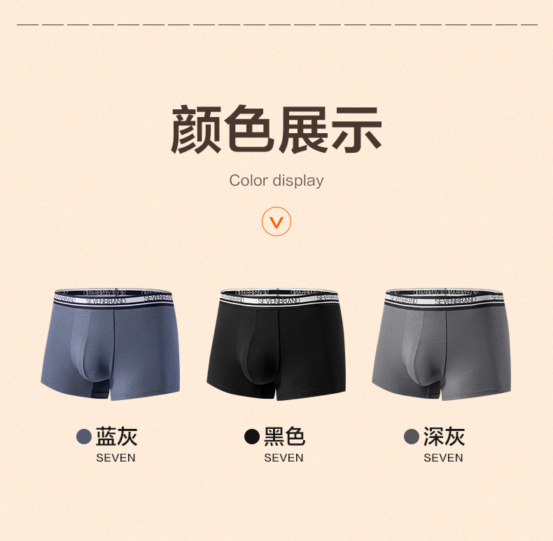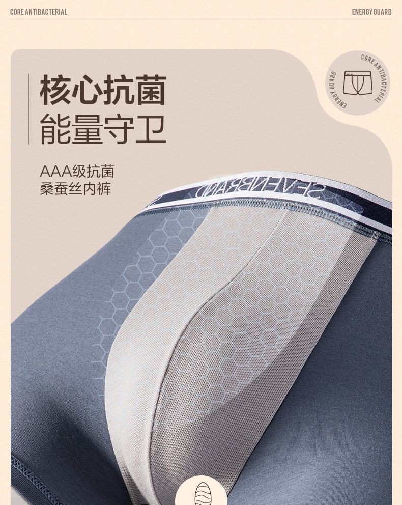 柒牌内裤男四角裤含桑蚕丝夏季薄款透气抗菌男生平角裤短裤3条装 123F70360
