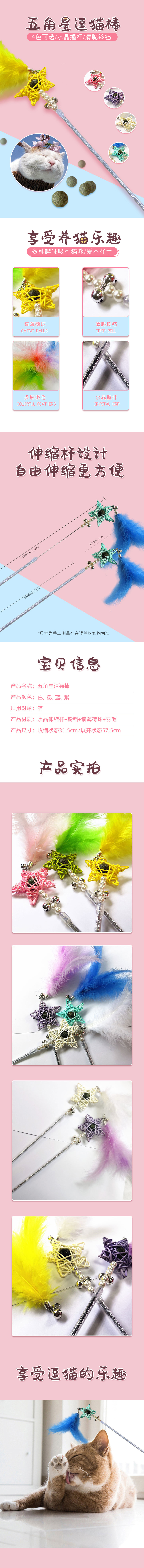 五角星逗猫棒 可伸缩 内置猫薄荷球 钢丝杆 耐咬不易断