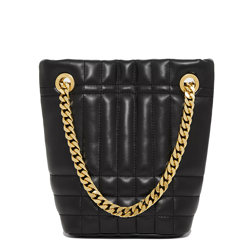 【包税】BURBERRY/博柏利 21秋冬新款Lola系列 女士迷你黑色绗缝羊皮革TB专属标识单肩手提水桶包80502871