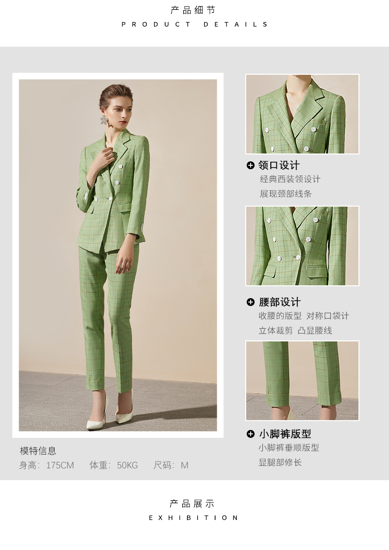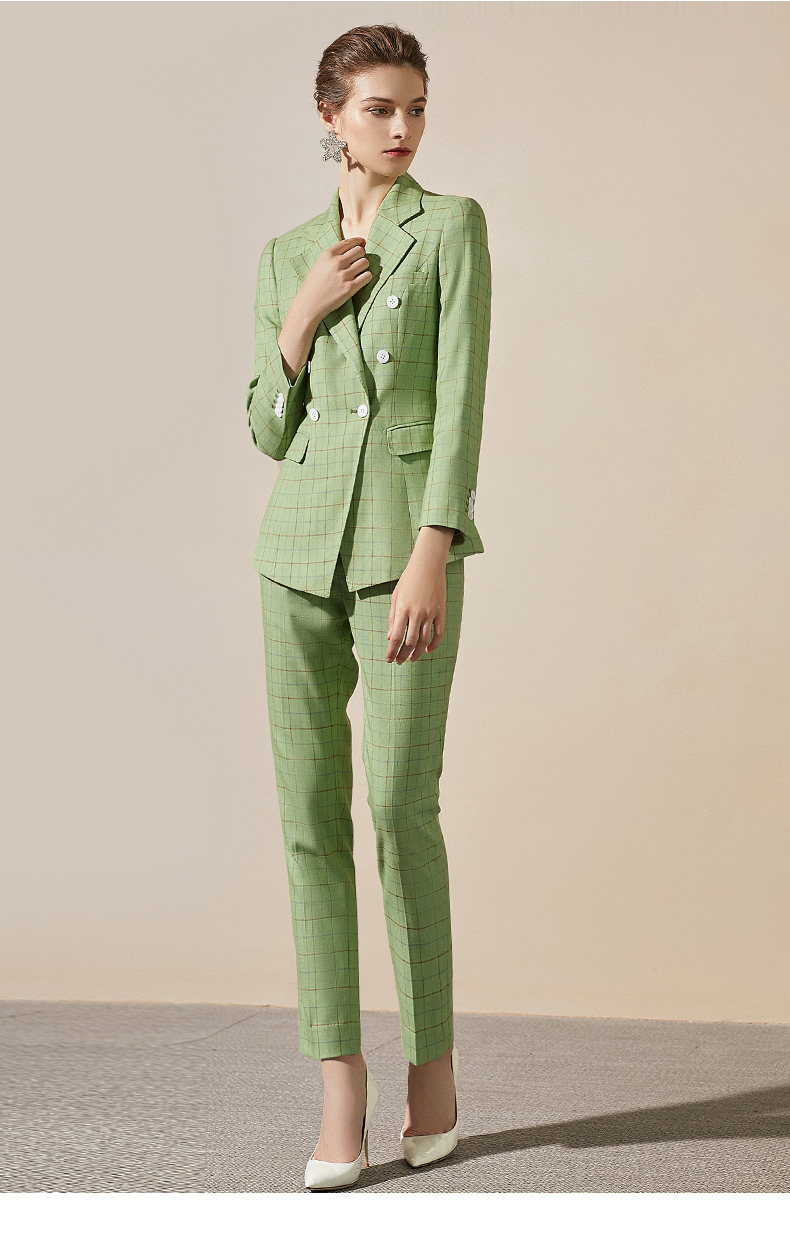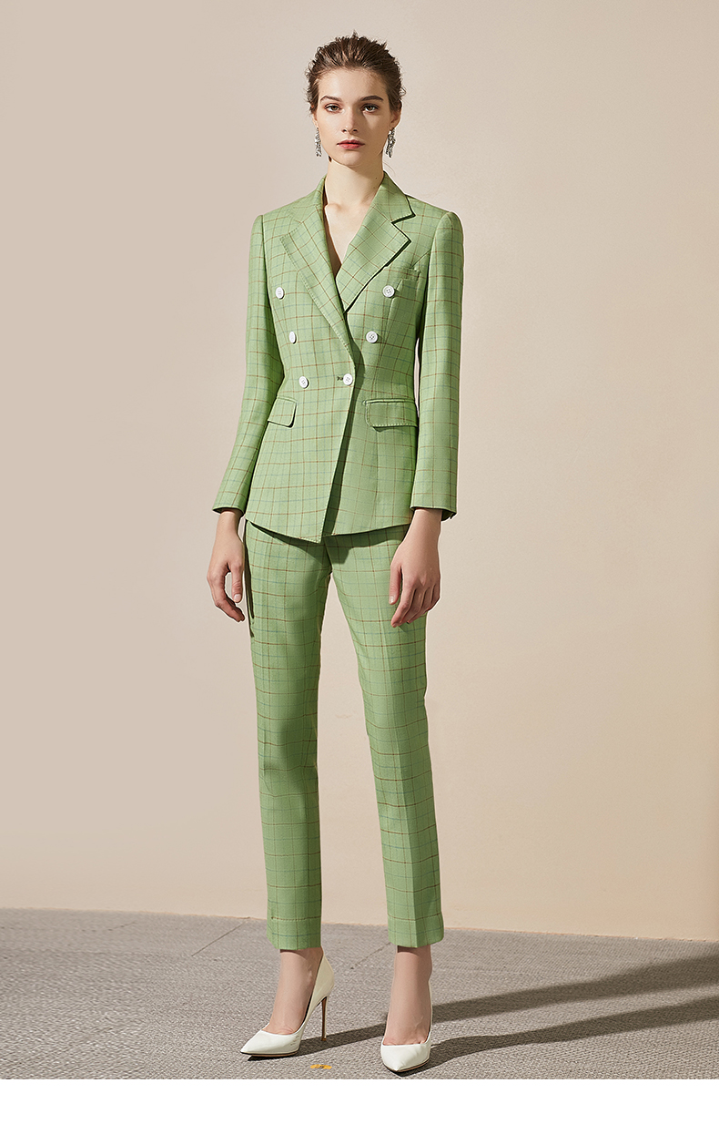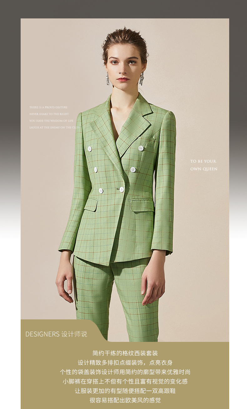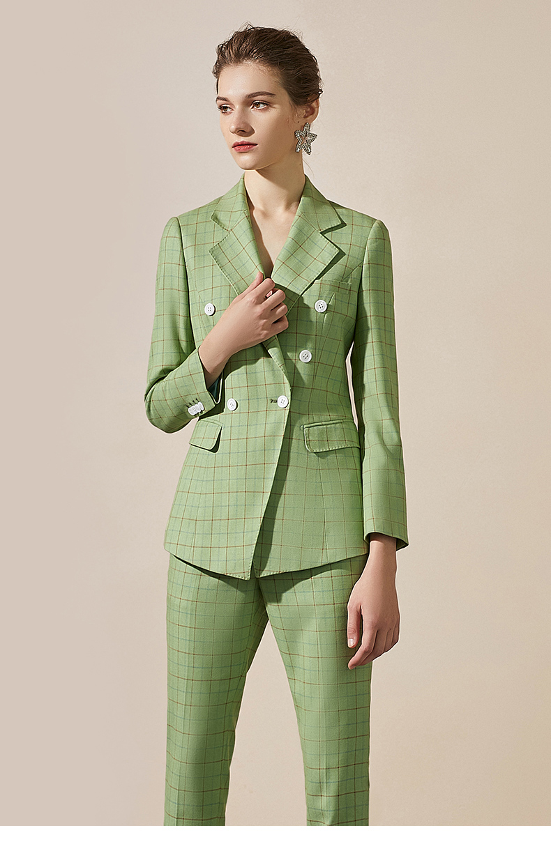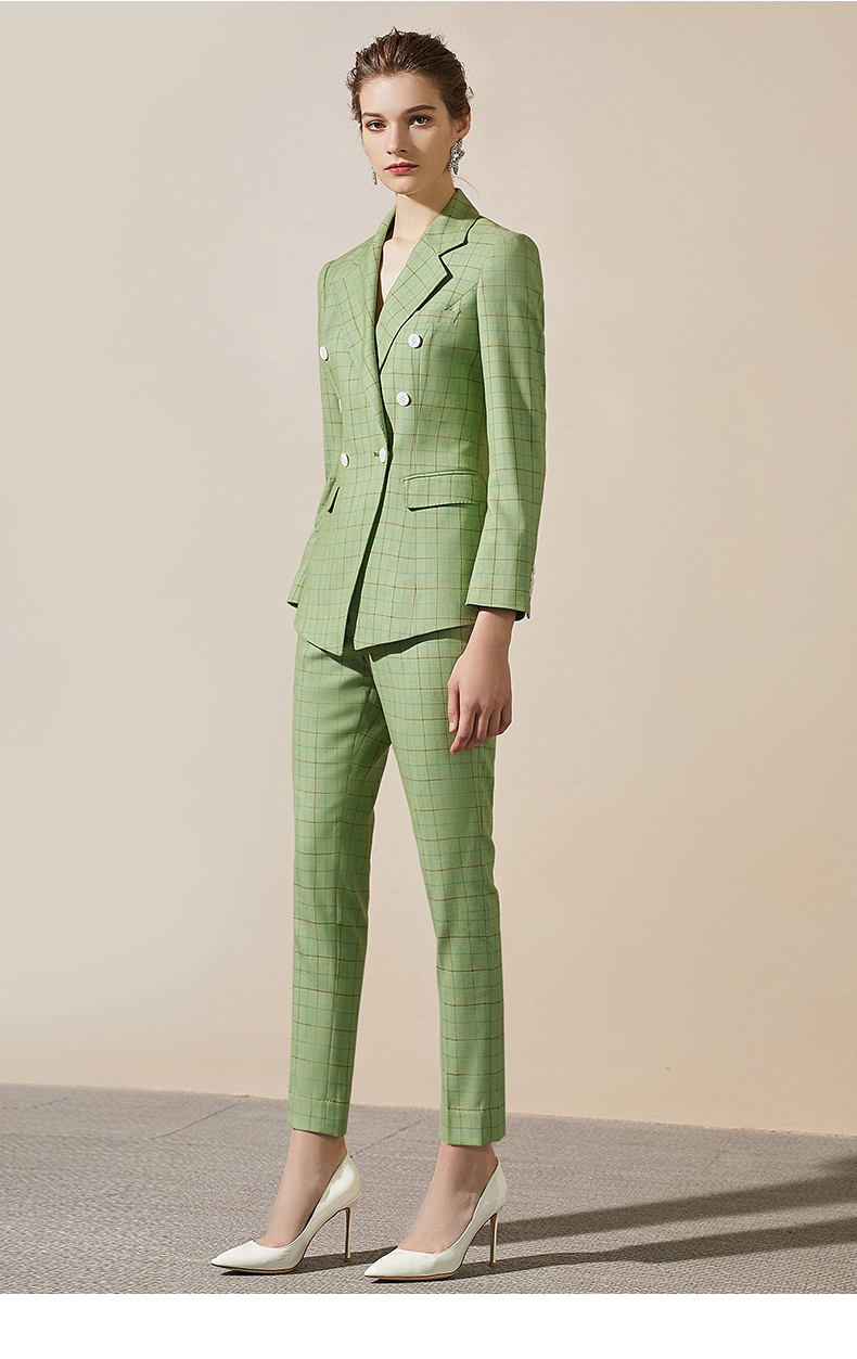 IWY/高端职业套装女时尚绿色西装套裤商务主持人西服女正装203144C1+203144P1