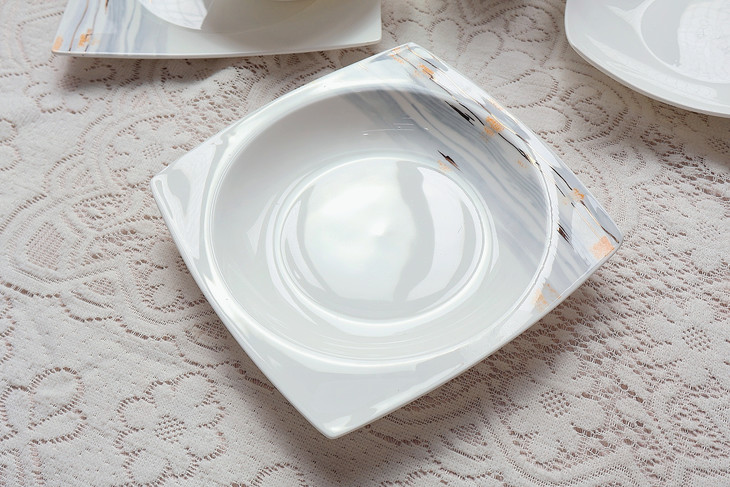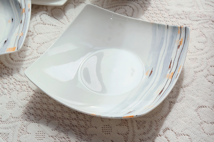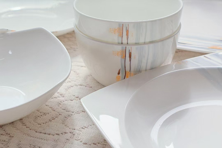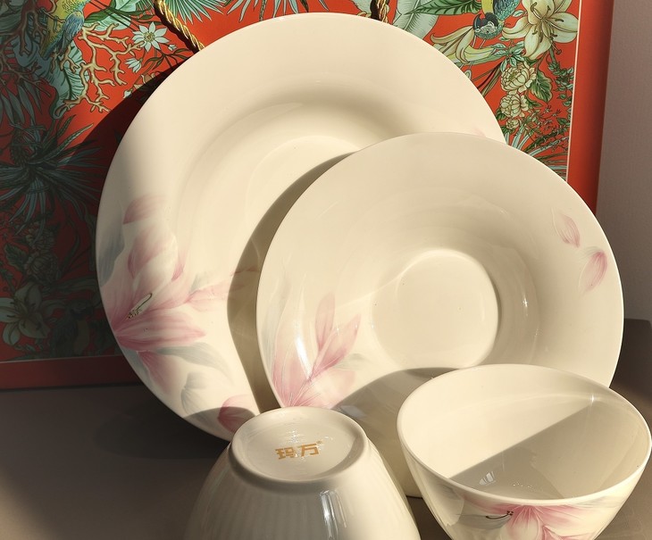 精选优质瓷土烧制 瓷质细腻温润如玉 宛如羊脂白玉般光滑 高温烧制成的餐具 表面则会有柔和的光泽,更为典雅精致