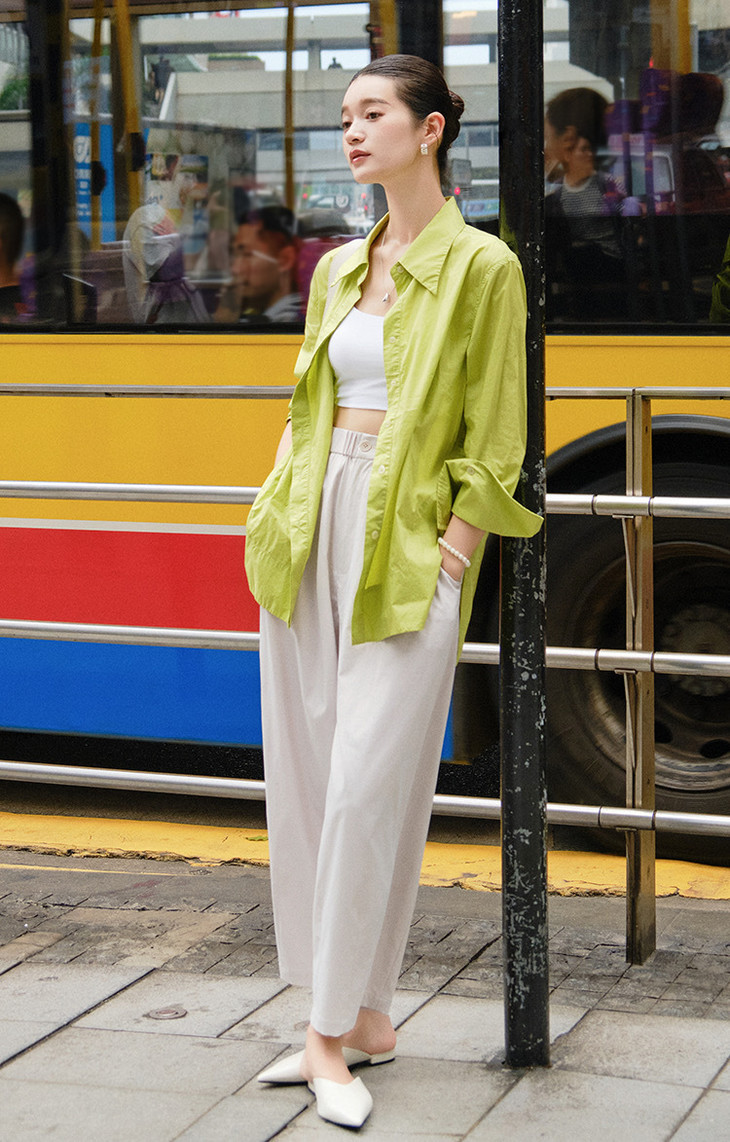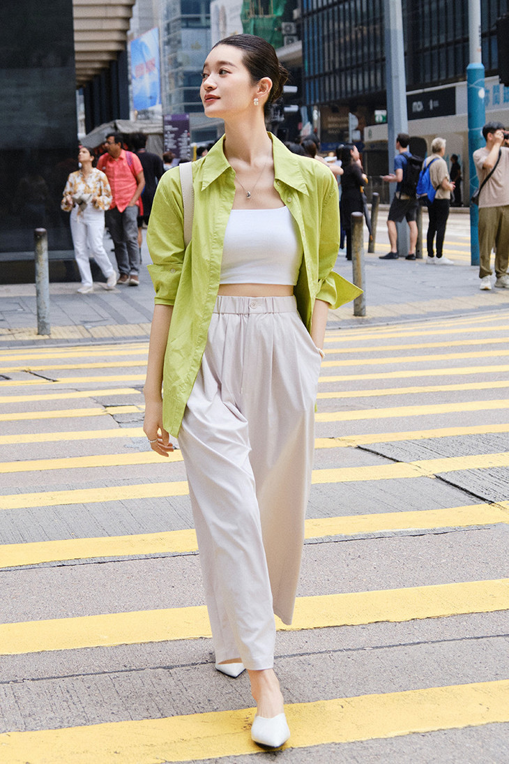 上衣随便是T恤 背心 小开衫 衬衫 新中式 还是什么外套 就没有它不能搭的 有调性且风格兼容度很高,耐看不挑人