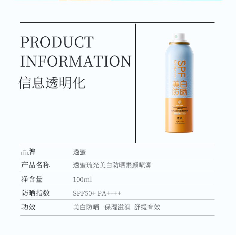 【防晒喷雾 | 29.9任选2件】透蜜 琉光美白防晒素颜喷雾100ml 美白+防晒+隔离三合一(压缩瓶:不发海南,新疆,西藏,广东、河北、天津、内蒙)