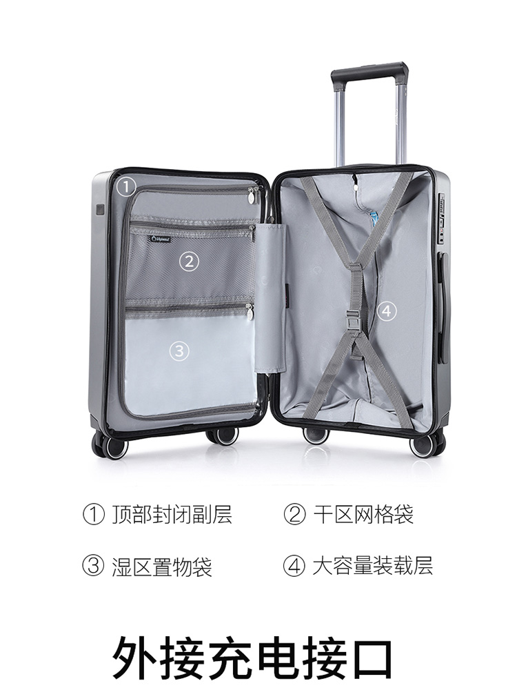 Diplomat外交官 干湿分离简约休闲商务拉杆箱MS-19012-1 铁灰色 20英寸 -适用短途【可登机】
