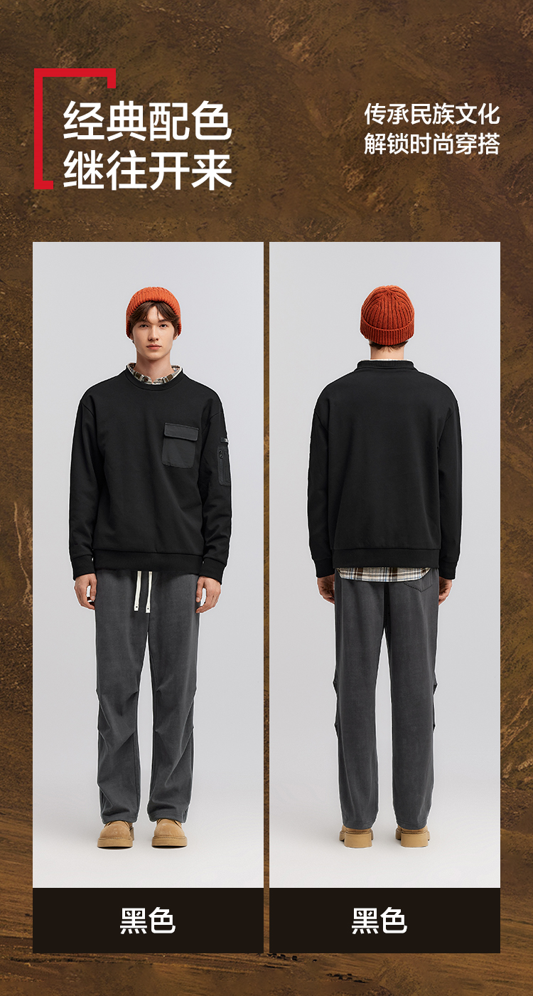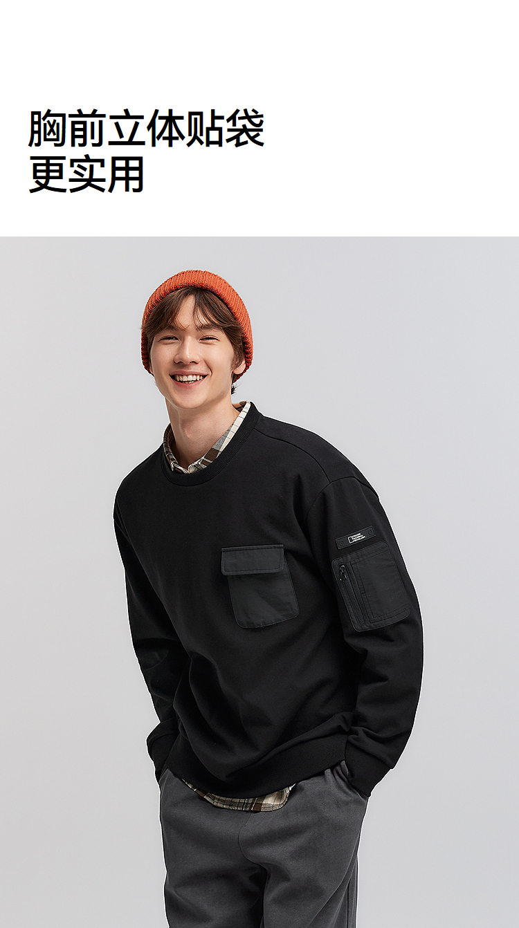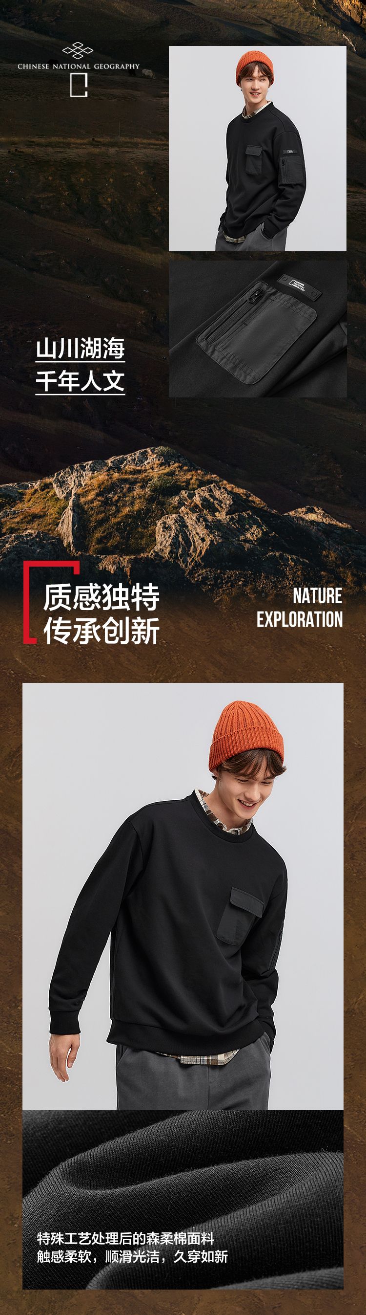 森柔|森马中国国家地理嘉绒系列卫衣男春联名胶章小宽松圆领上衣