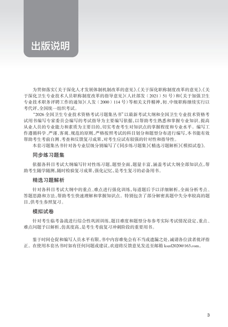 药学专业“全国卫生专业技术资格考试习题集丛书”以新考试大纲和全国卫生专业技术资格考试用书编写专家委员会编写的考试指导为依据,编写工作遵循科学、严谨、客观、规范的原则,严格按照实际考试的科目划分和题型分布进行编写,切实考查考生对知识点的掌握程度和专业水平。本系列丛书包括《精选习题解析》《同步练习题集》《模拟试卷》,能够有效帮助考生考前复习、自测和反馈学习成果。《同步练习题集》针对考试大纲各科目编写针对性练习,题型全面,题量丰富,涵盖考试大纲的所有知识点,并着重突出重点、难点,帮助考生随学随测,检测学习成果,强化记忆,是考生复习强化的必备用书。