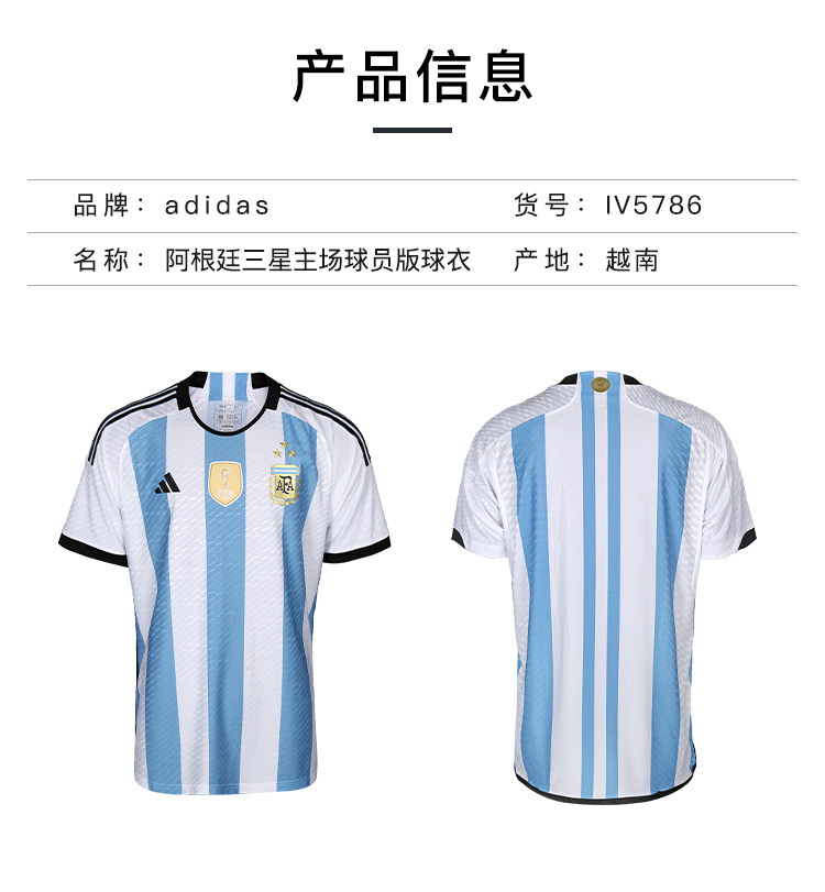 ADIDAS/阿迪达斯AFA H AUJSY D3S 2022世界杯阿根廷三星主场球员版短袖球衣IV5786