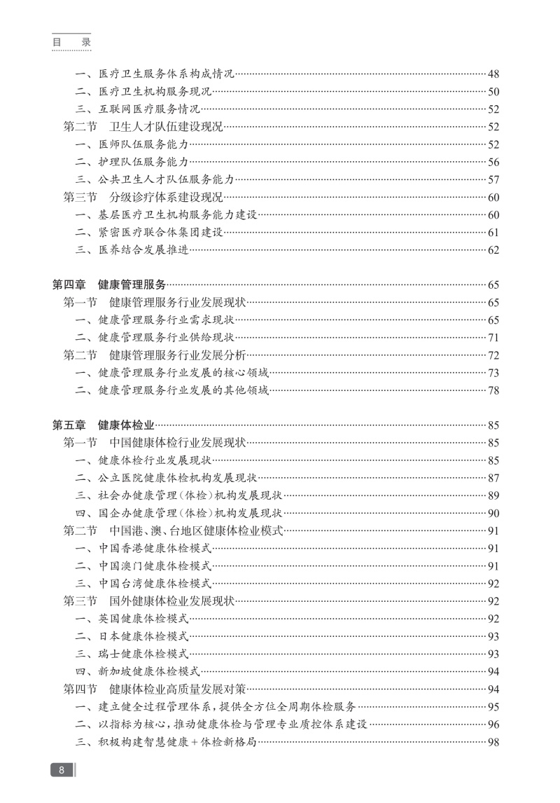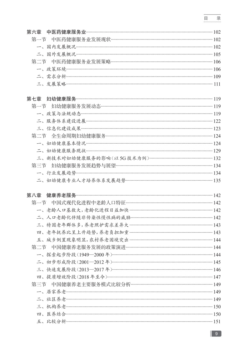 1.本报告对我国目前健康服务业的发展状况进行系统介绍,从医疗服务、健康管理与促进、健康保险以及相关服务三大领域着手,包括对药品、医疗器械、保健用品、保健食品、健身产品等产业的分析和介绍。 2.全书共20章,前4章分别从国家层面介绍健康服务业及医疗卫生事业的发展历史、行业特征、发展重点、政策与法规体系、面临的机遇与挑战等,其他章节分别从健康体检、中医药健康服务、健康养老、健康保险、智慧健康、药品、保健食品等方面展开,每章均附有相关案例评析供读者在阅读本章内容之后拓宽思路,理论联系实践。