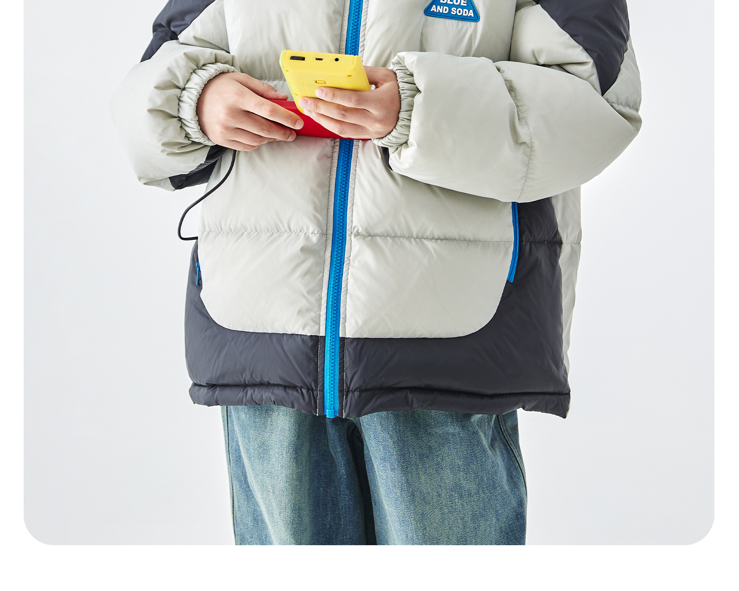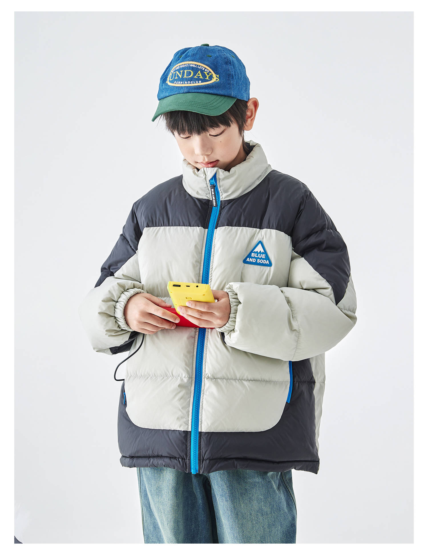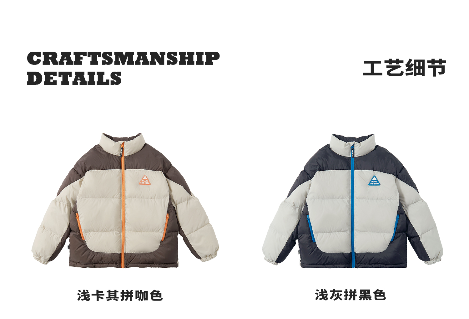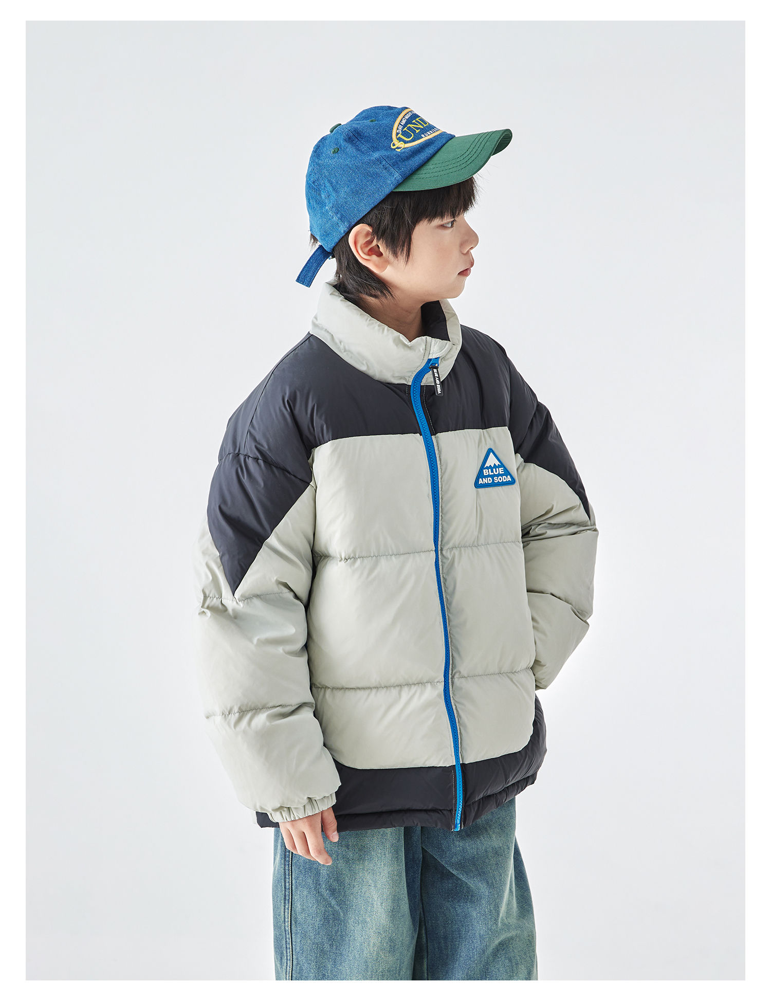 预售12.28发 蓝汽水2025冬季新款亲子中大男童短款羽绒服防钻绒抗静电拼色外套