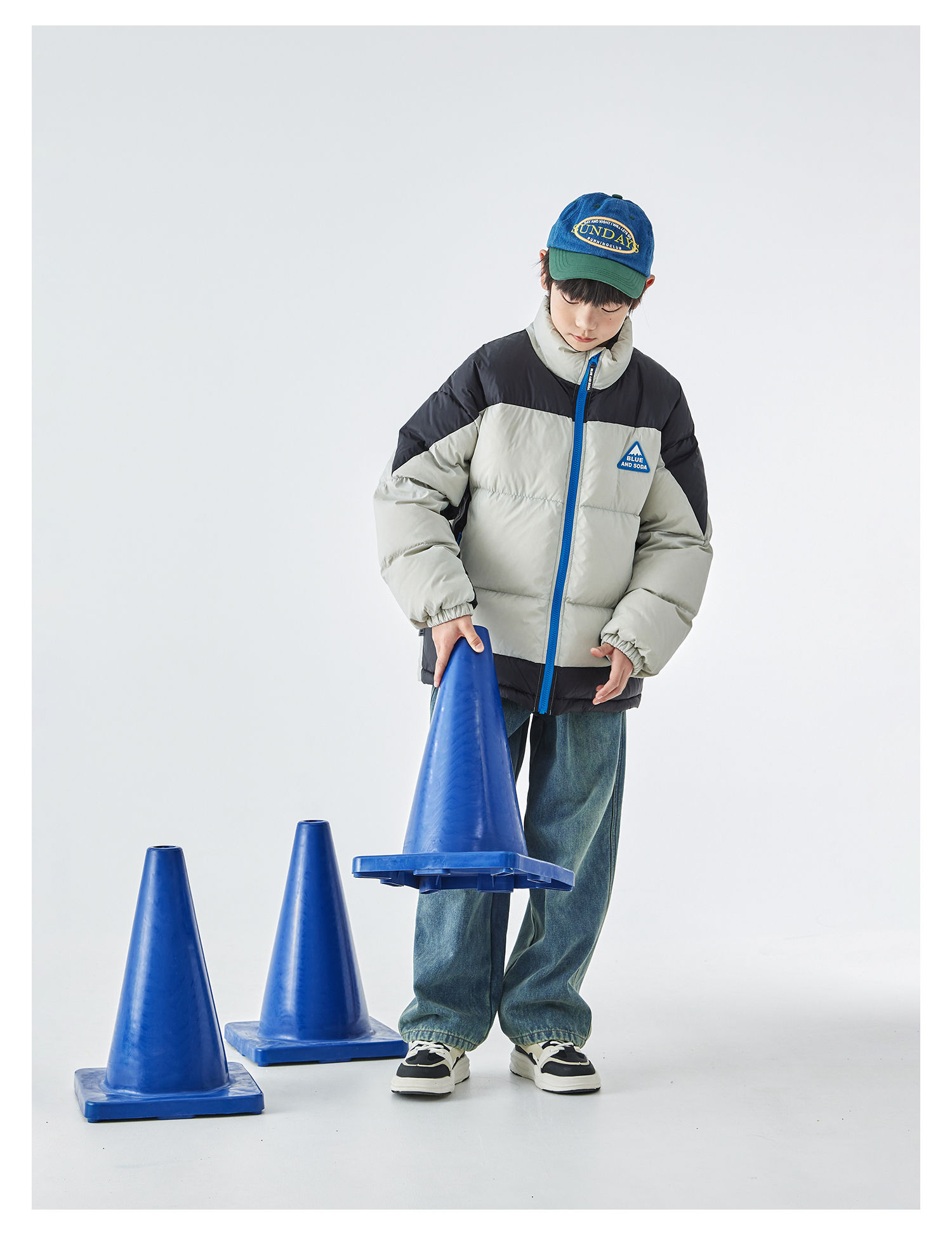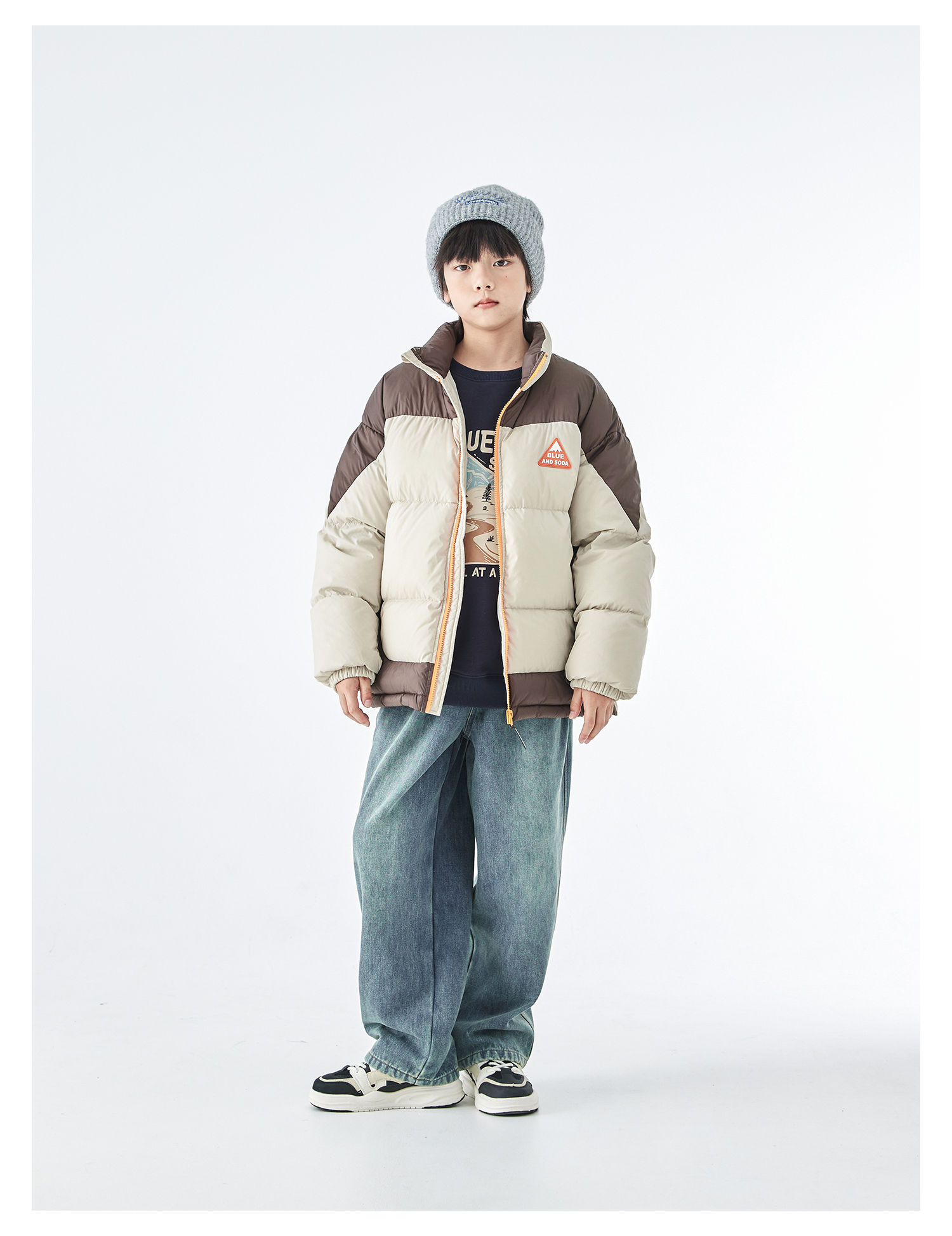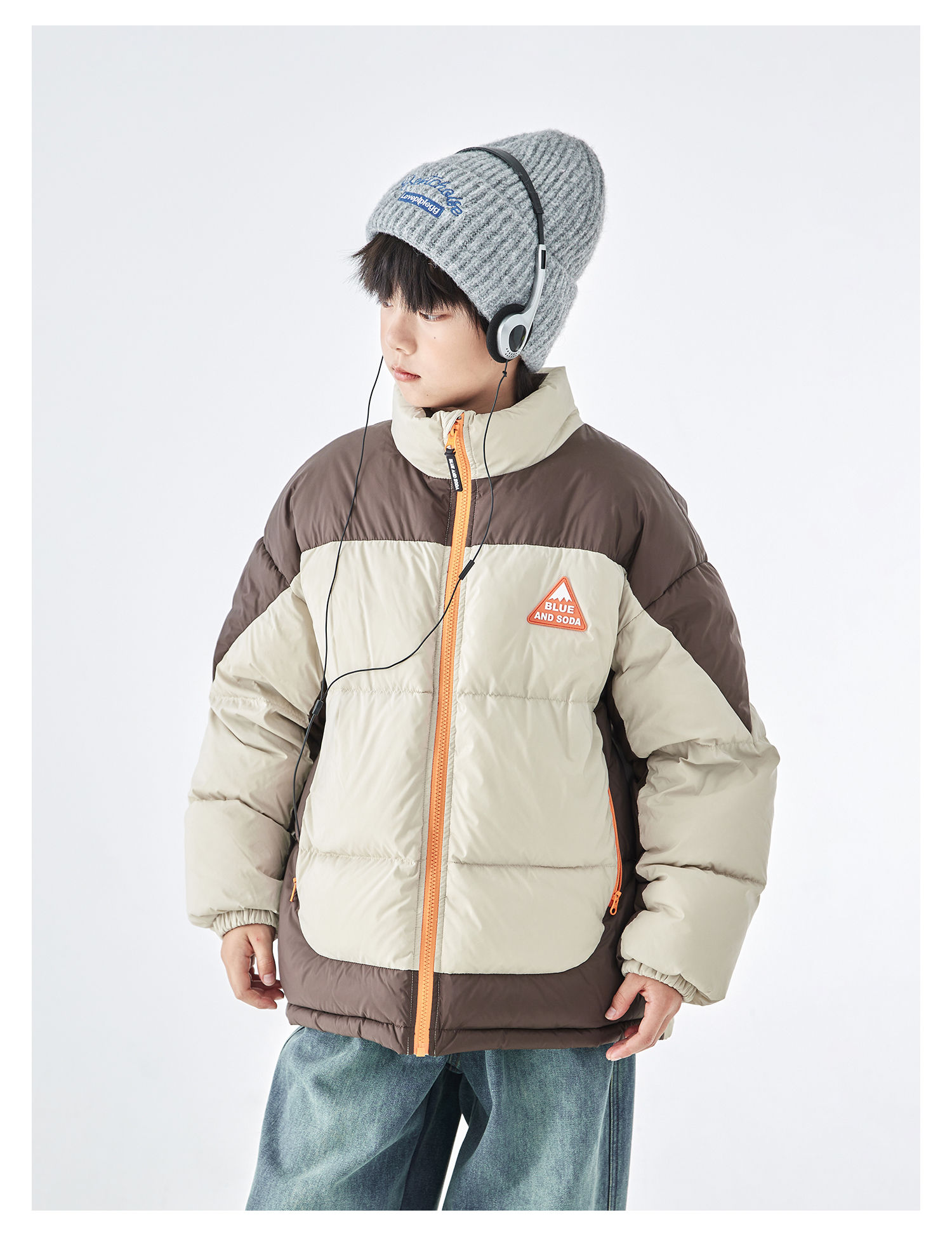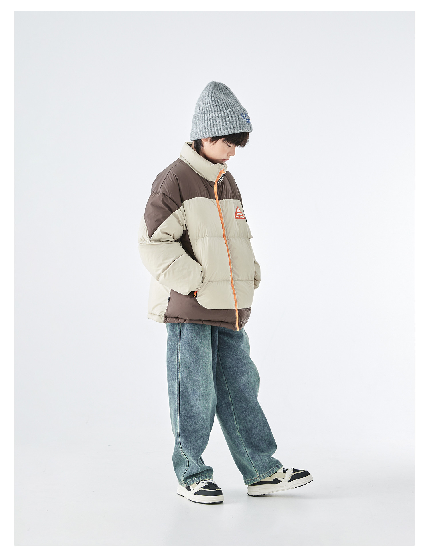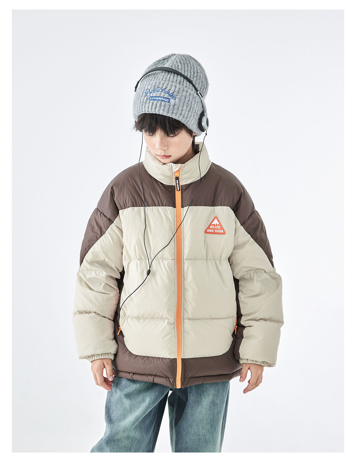 预售12.28发 蓝汽水2025冬季新款亲子中大男童短款羽绒服防钻绒抗静电拼色外套