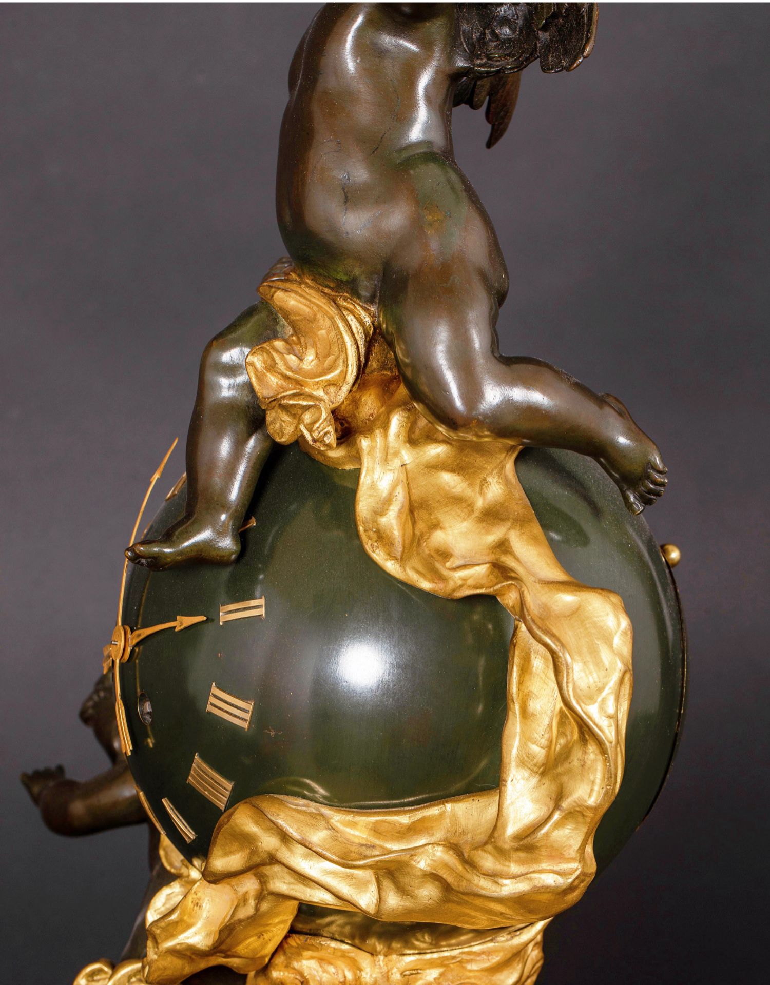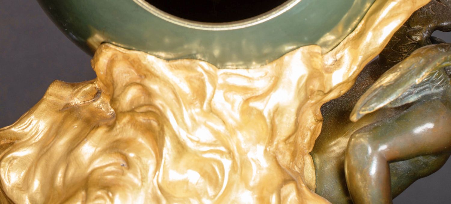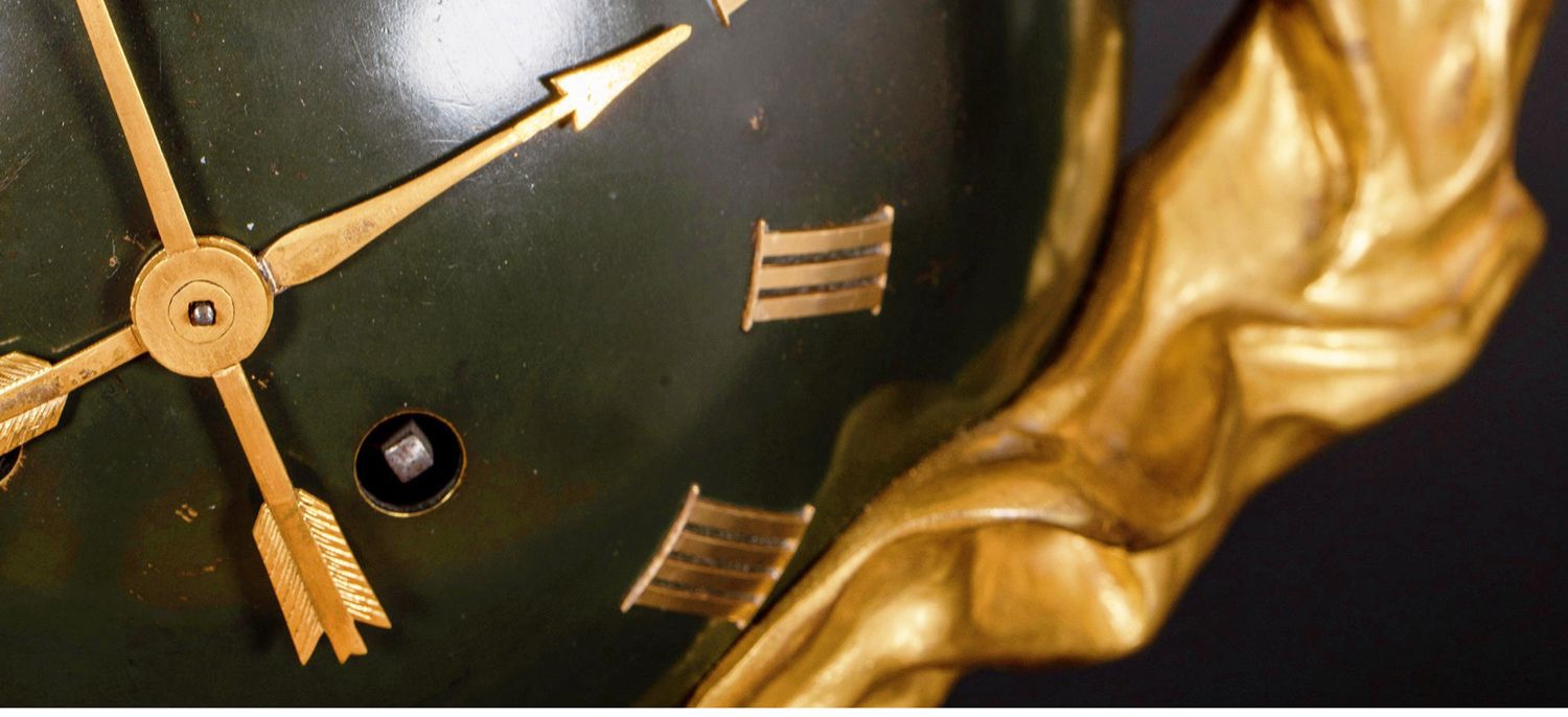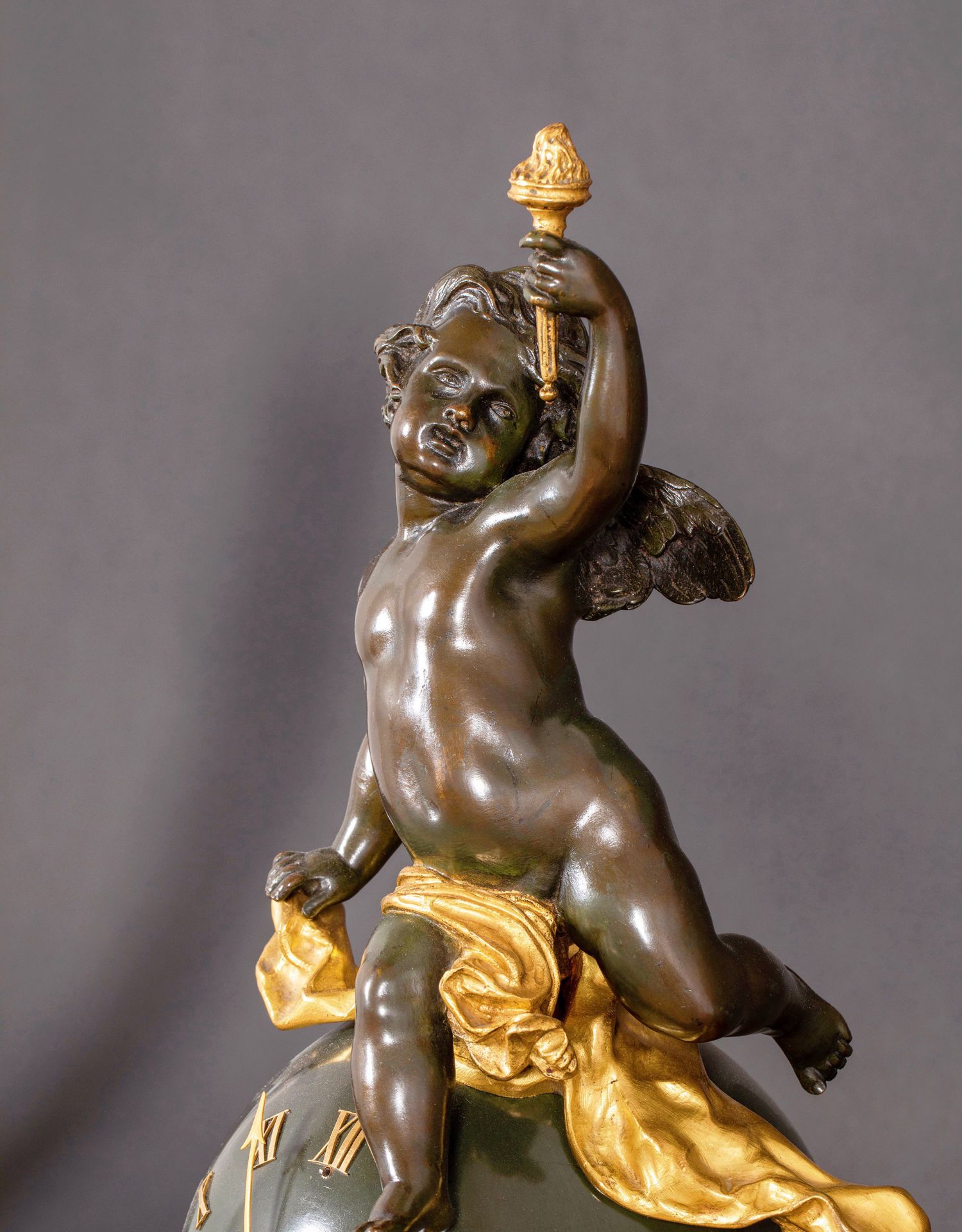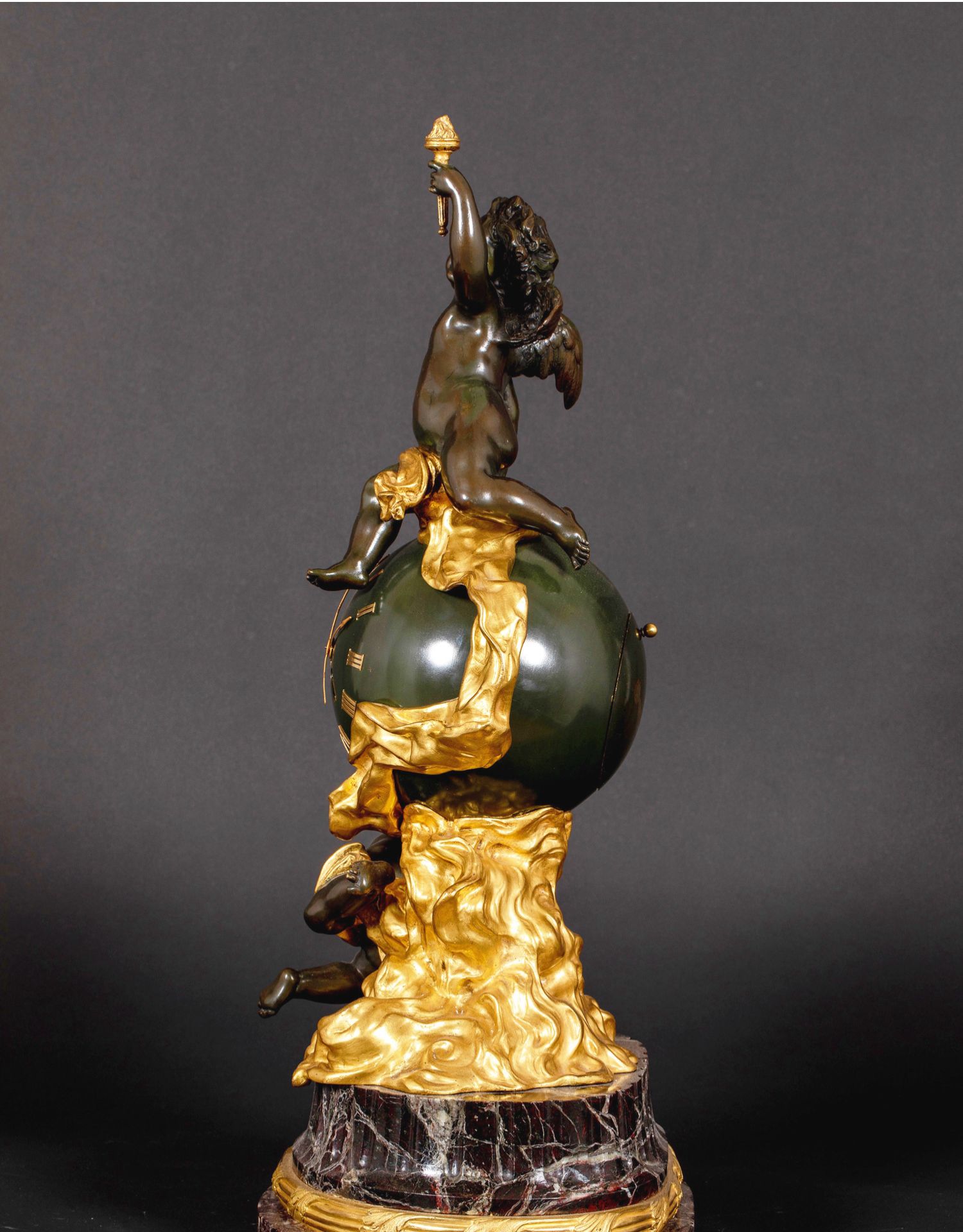 独角鹿西洋古董法国新古典风格铜鎏金小天使大理石底座座钟摆件
