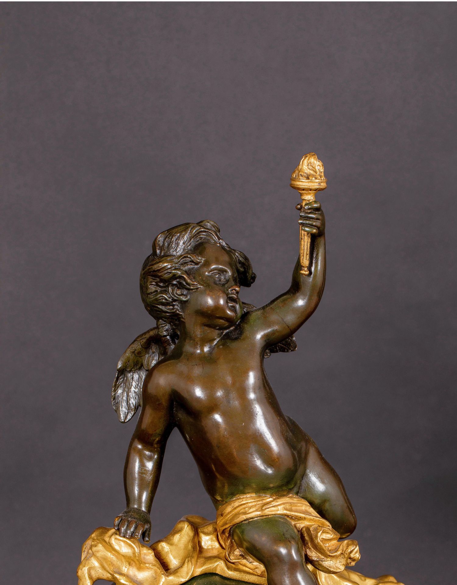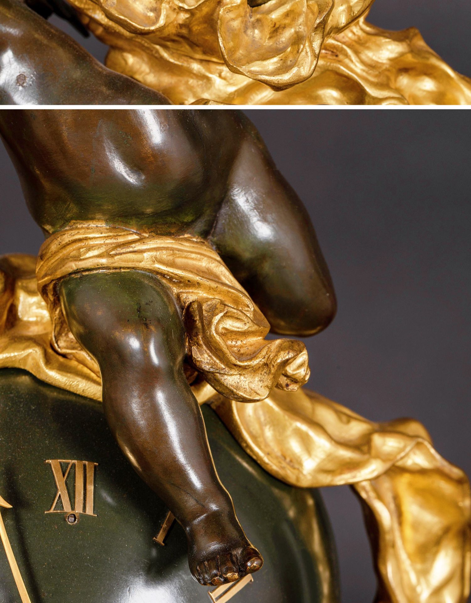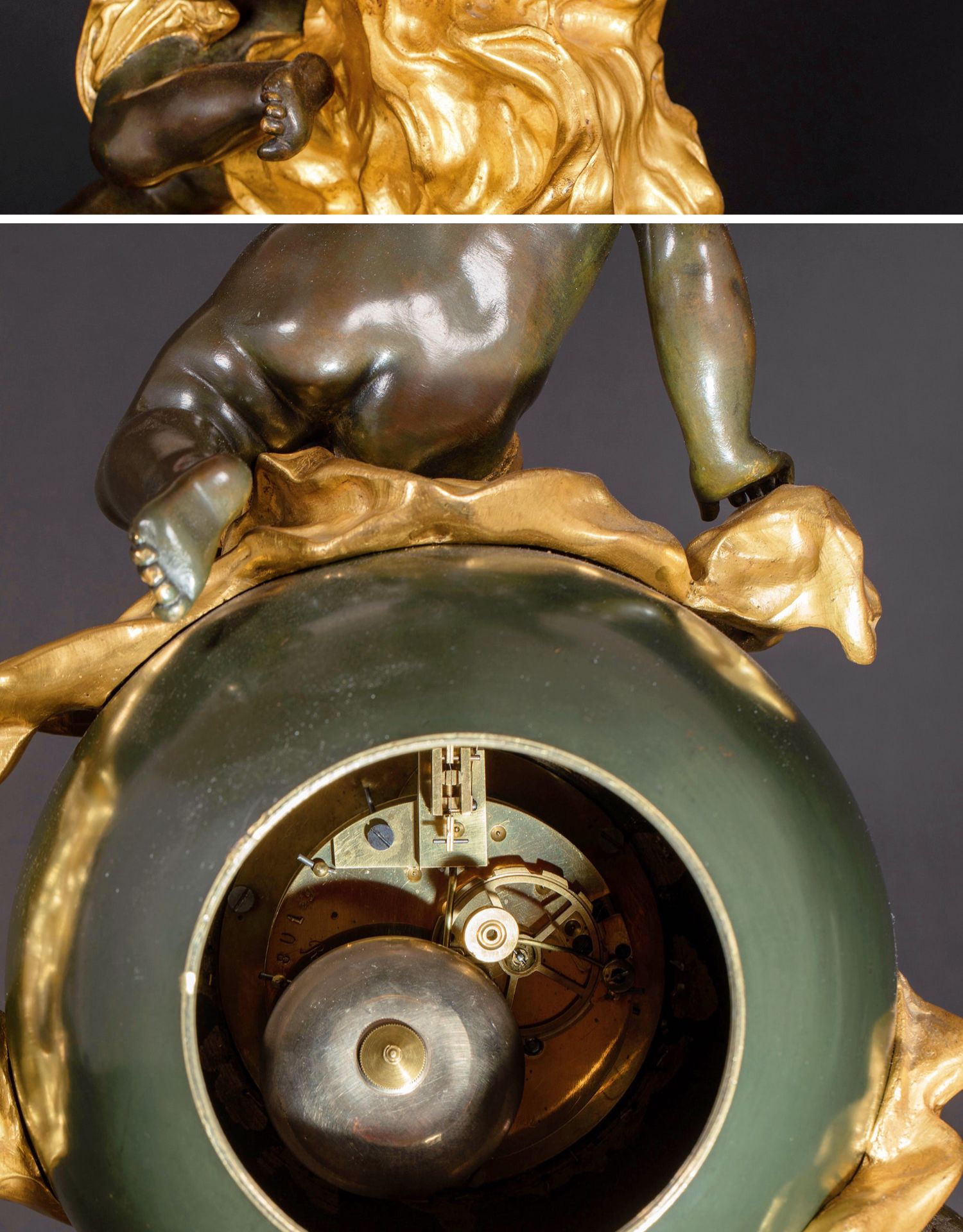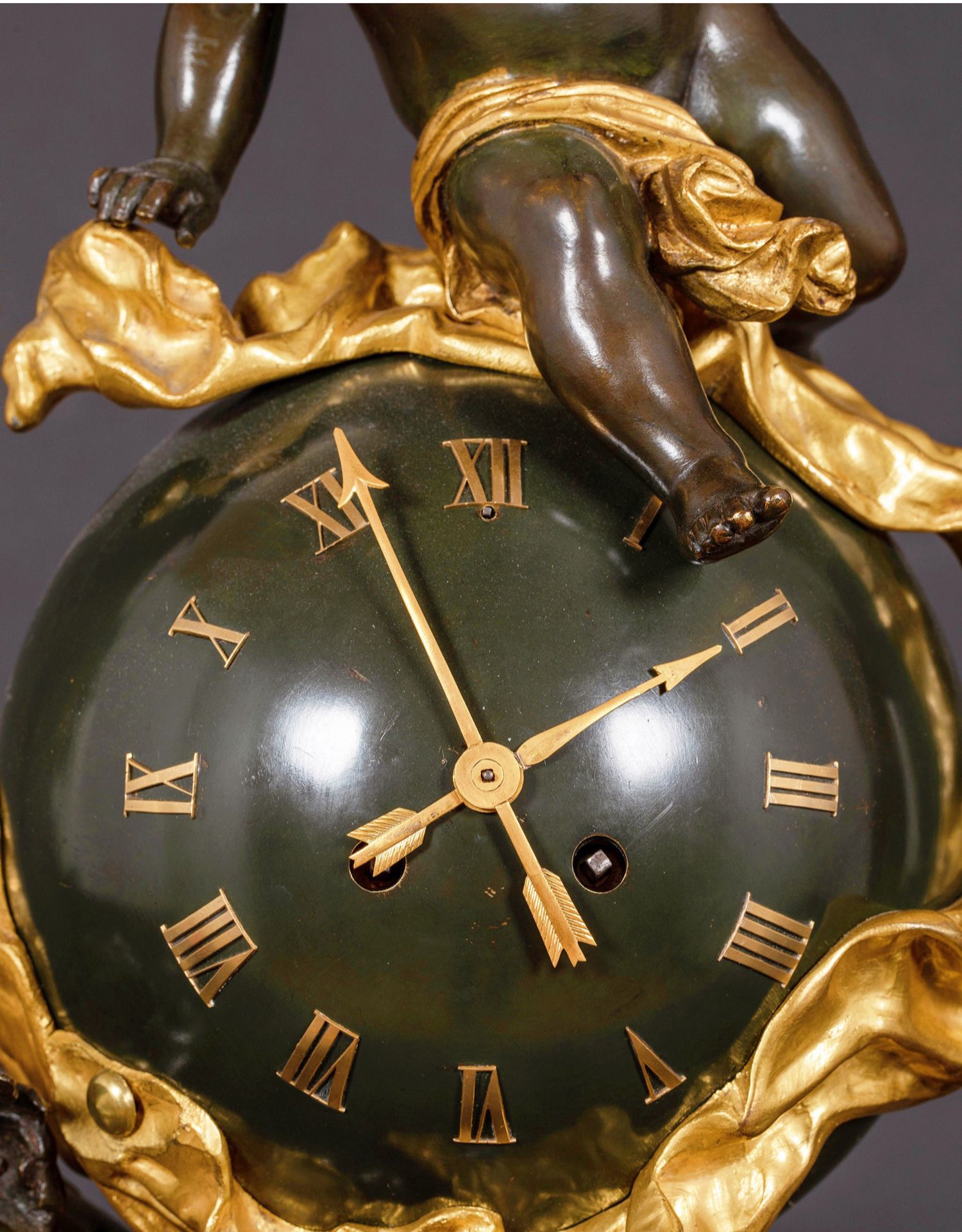 独角鹿西洋古董法国新古典风格铜鎏金小天使大理石底座座钟摆件