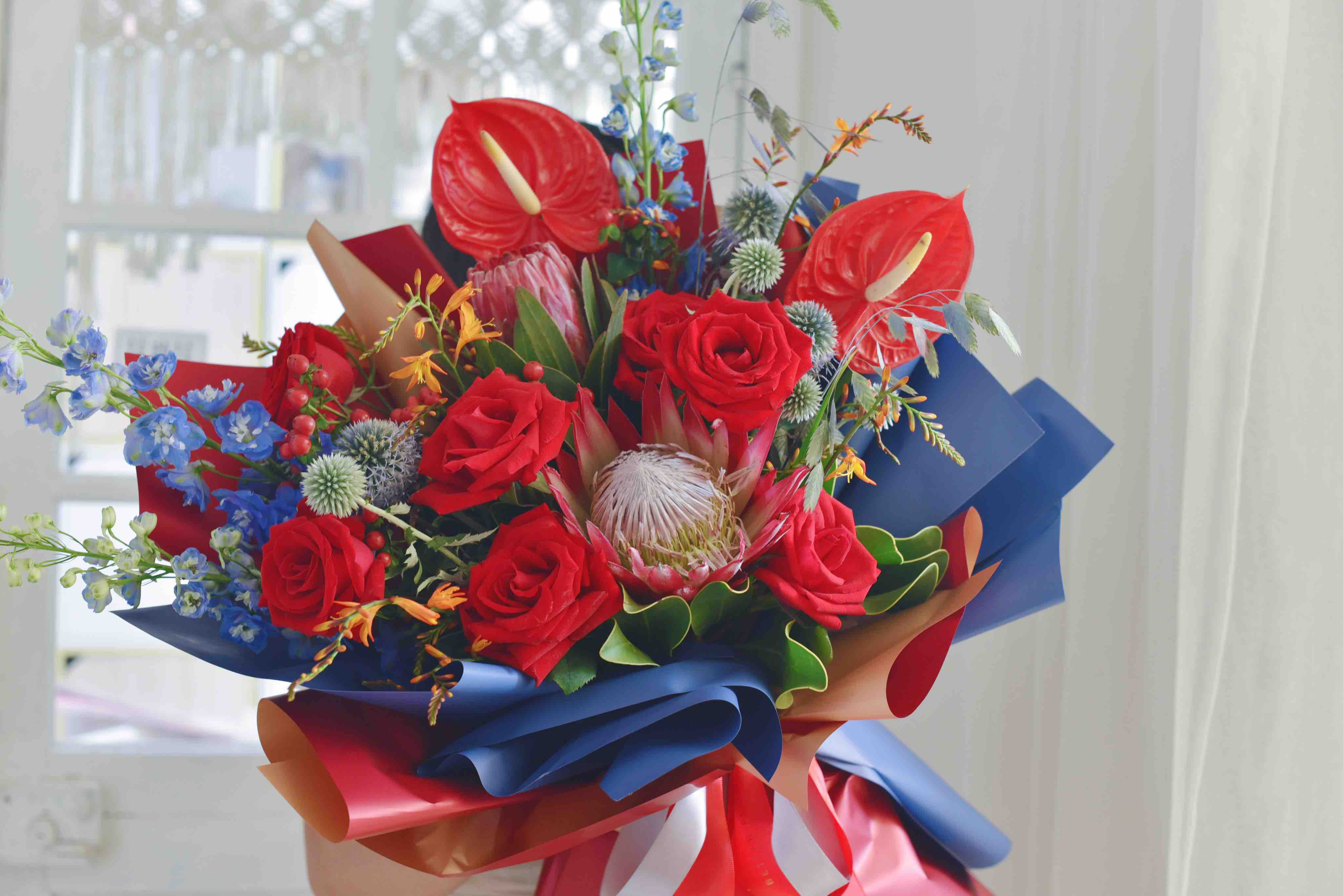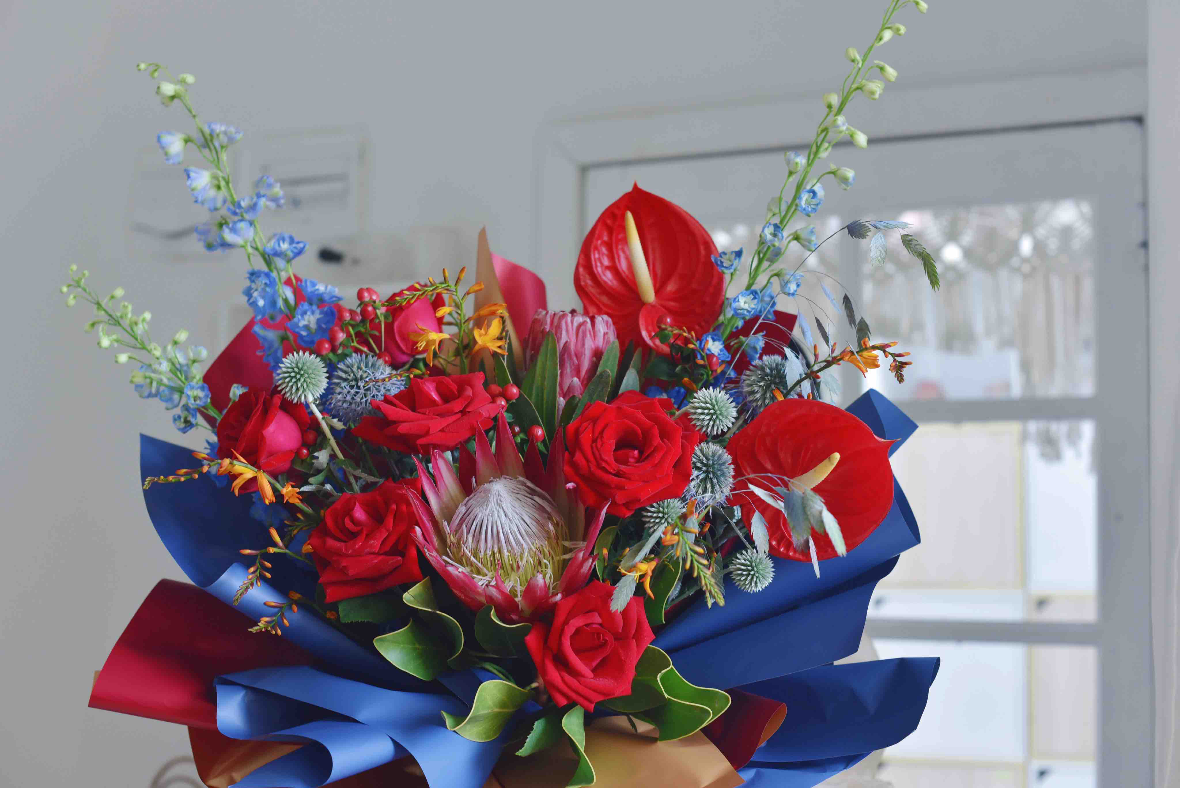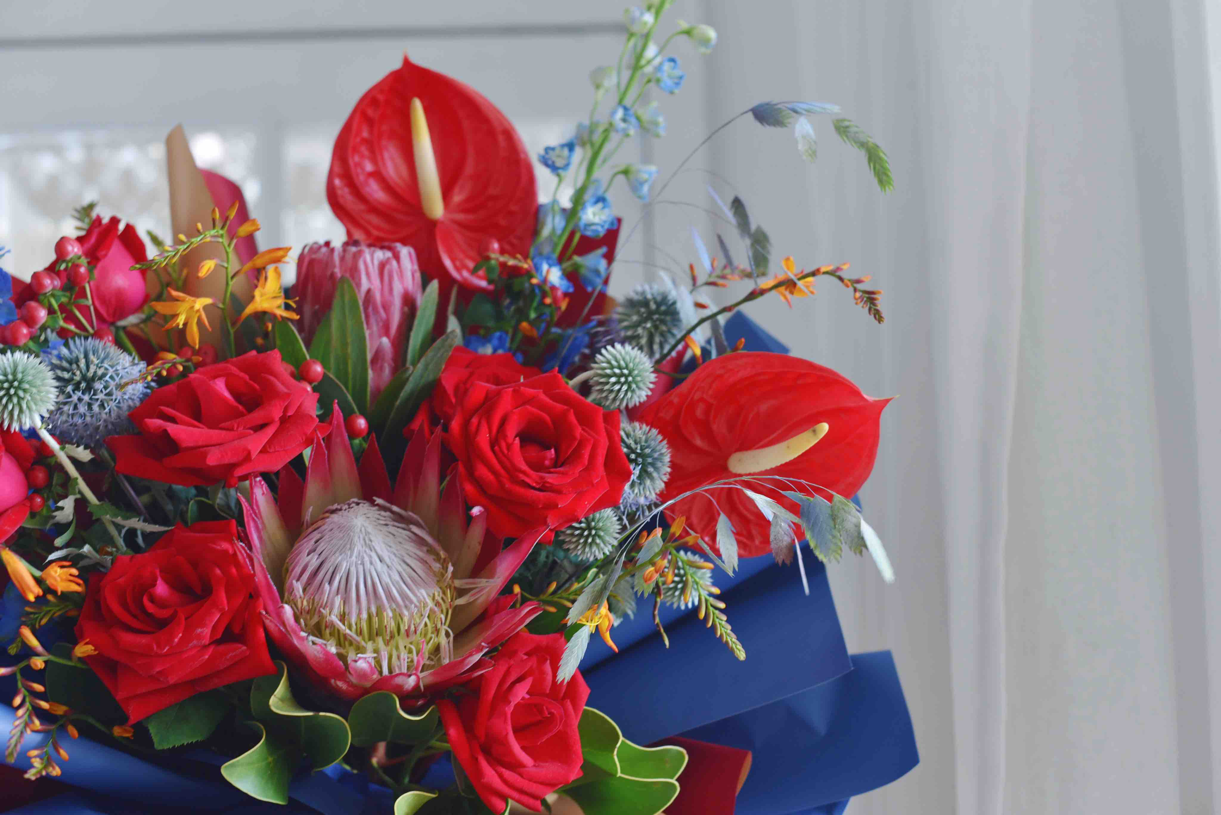 《繁华似锦》红色帝王红掌花束