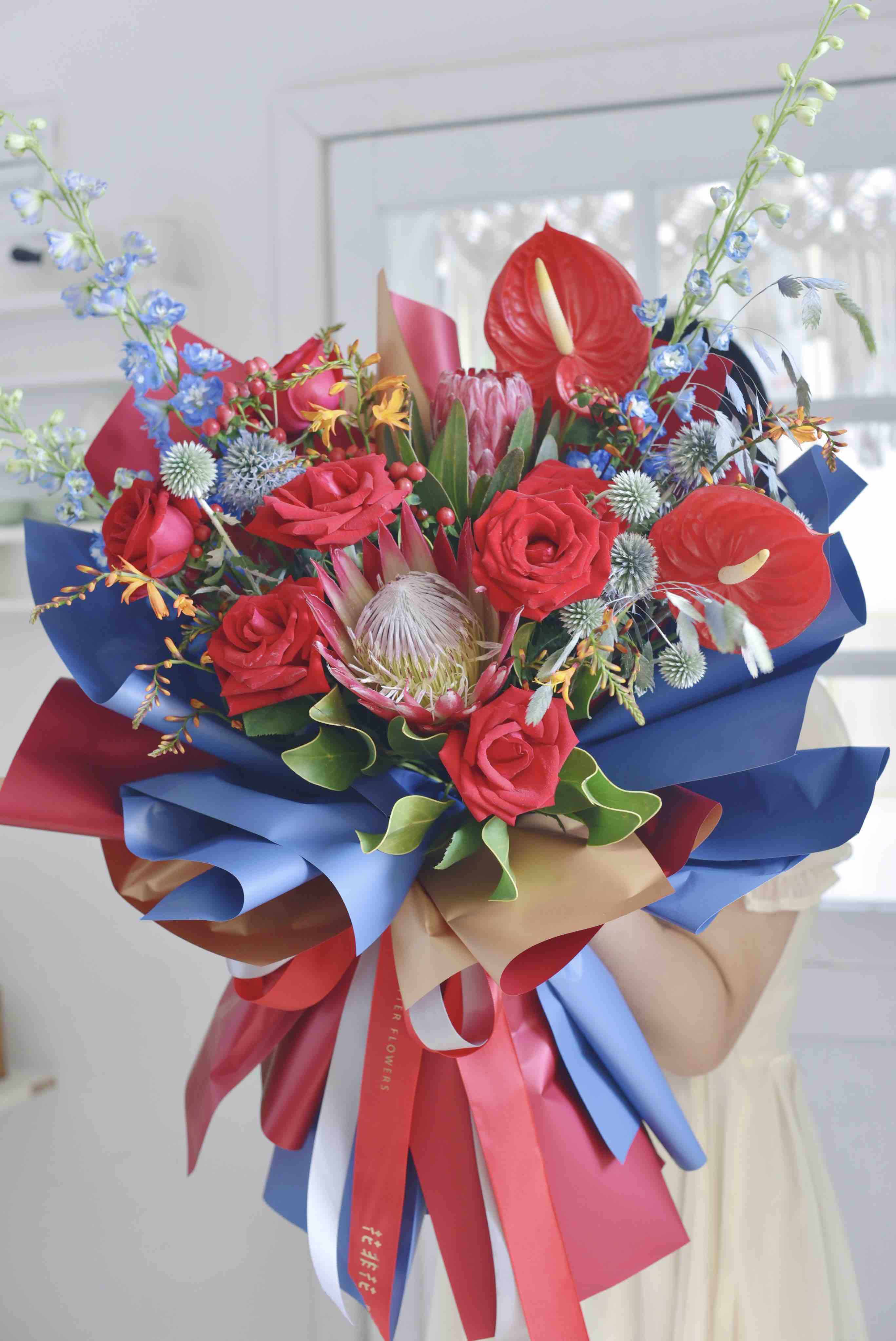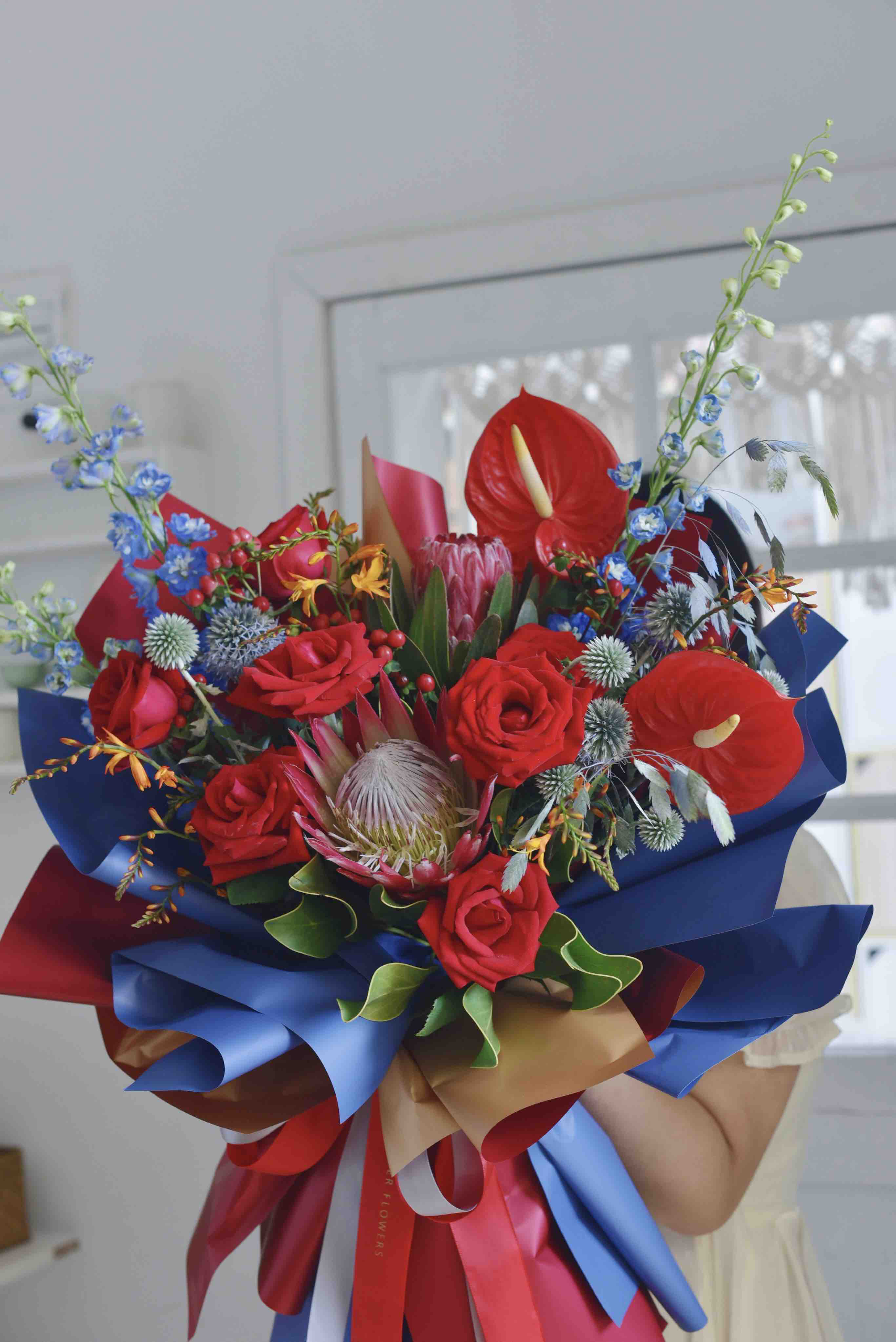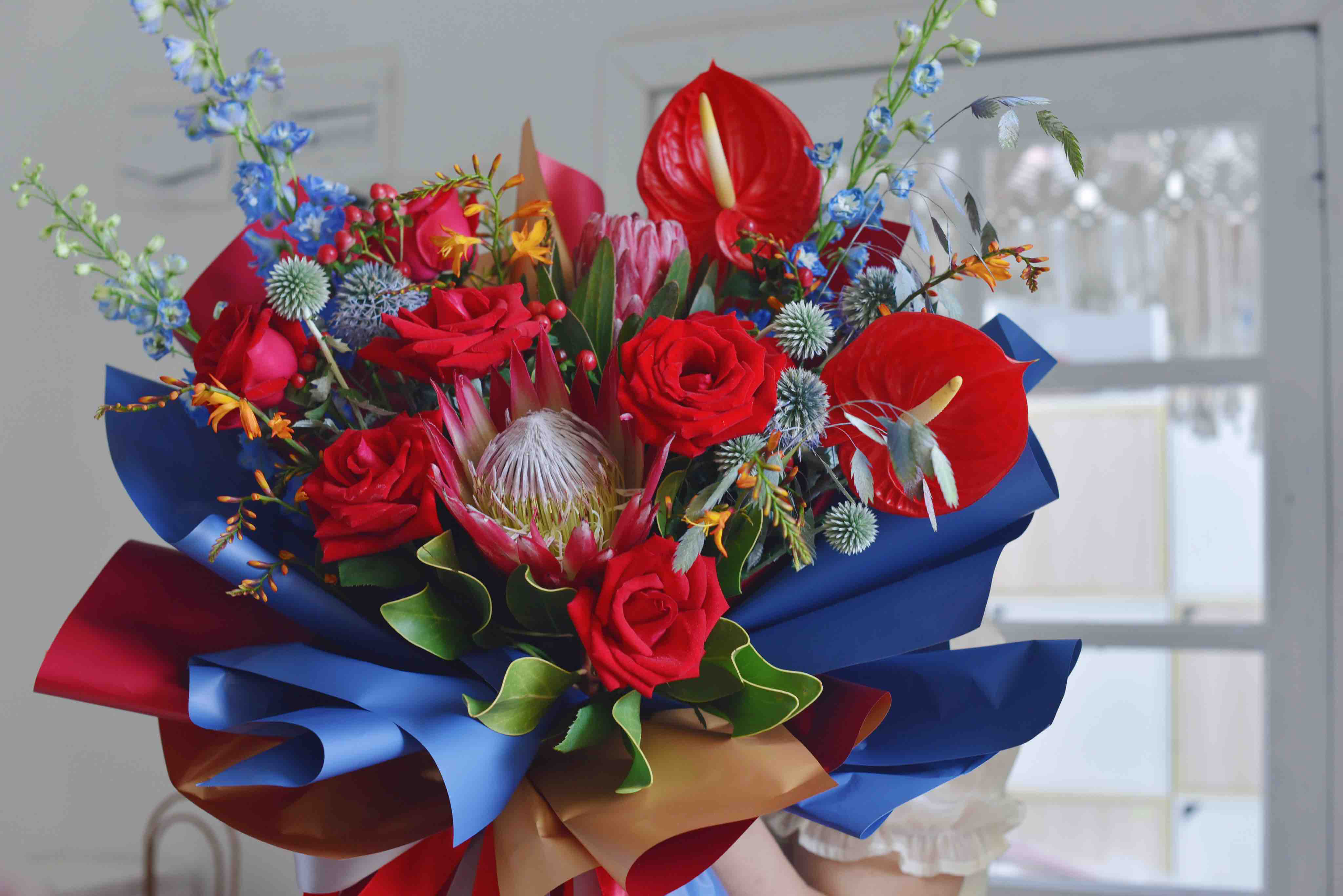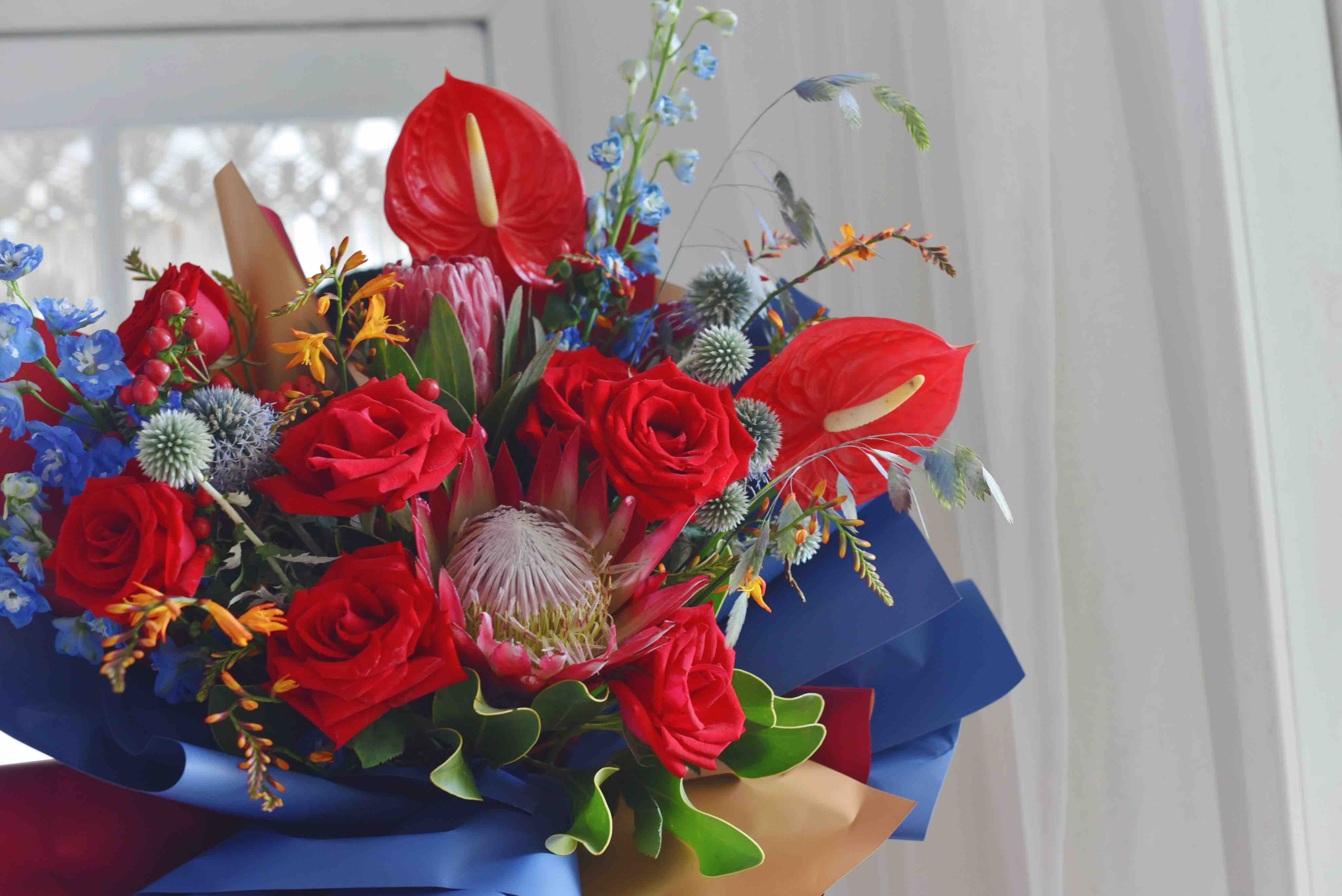 《繁华似锦》红色帝王红掌花束