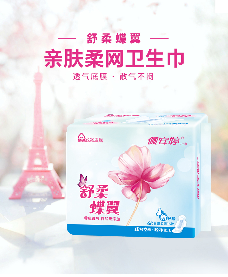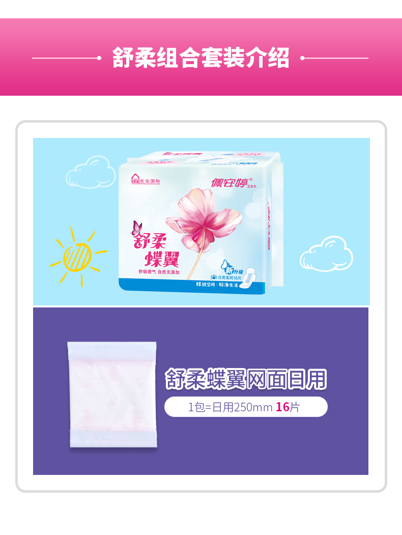 佩安婷瞬吸透气日用绵柔/柔网卫生巾250mm16片装