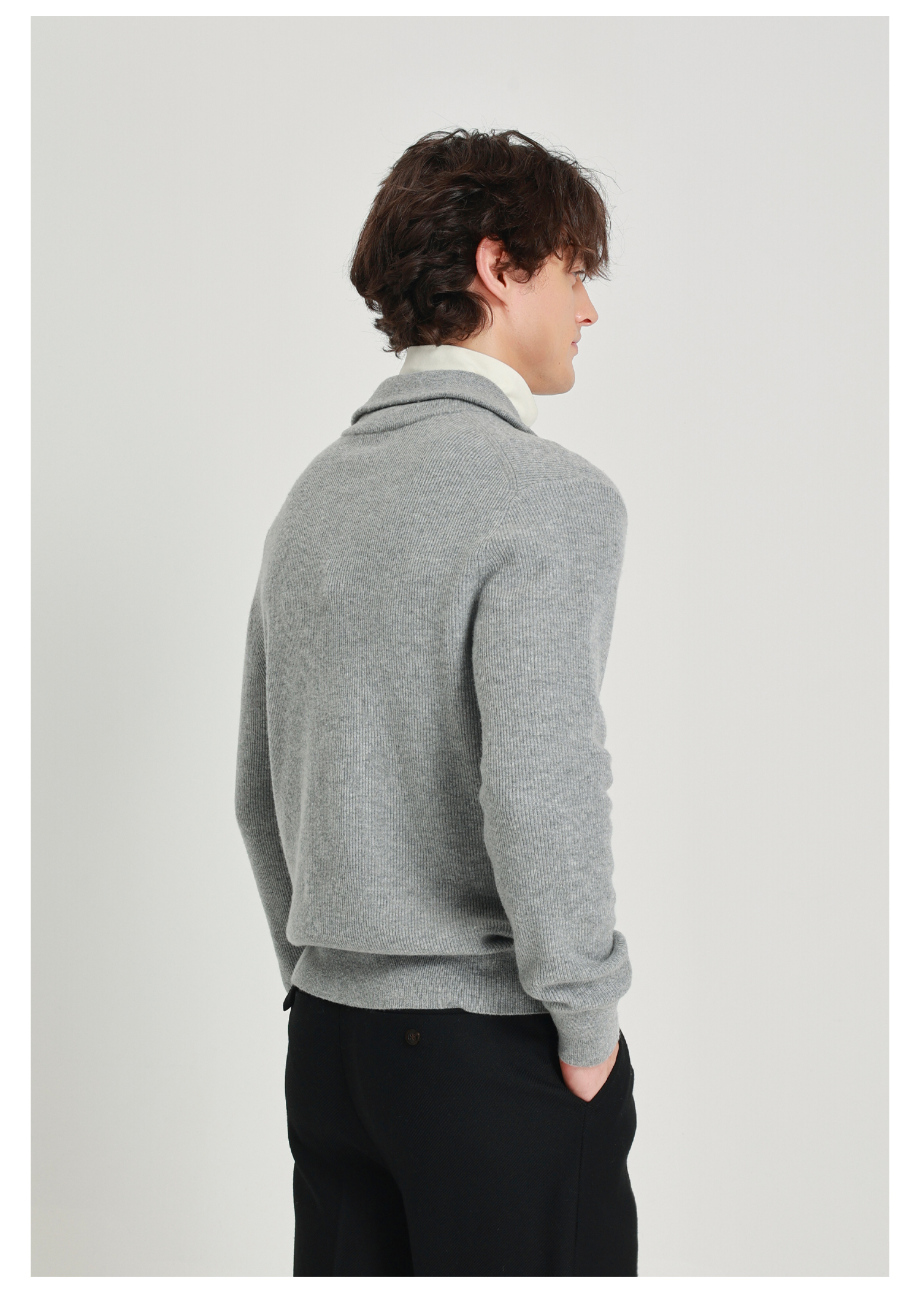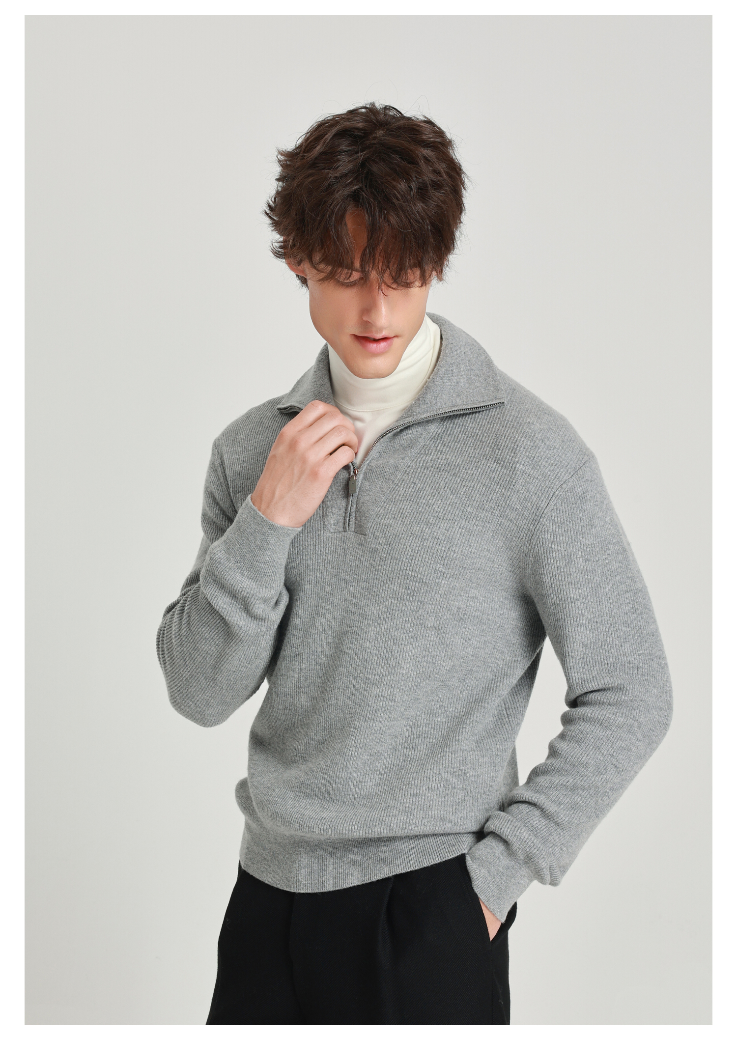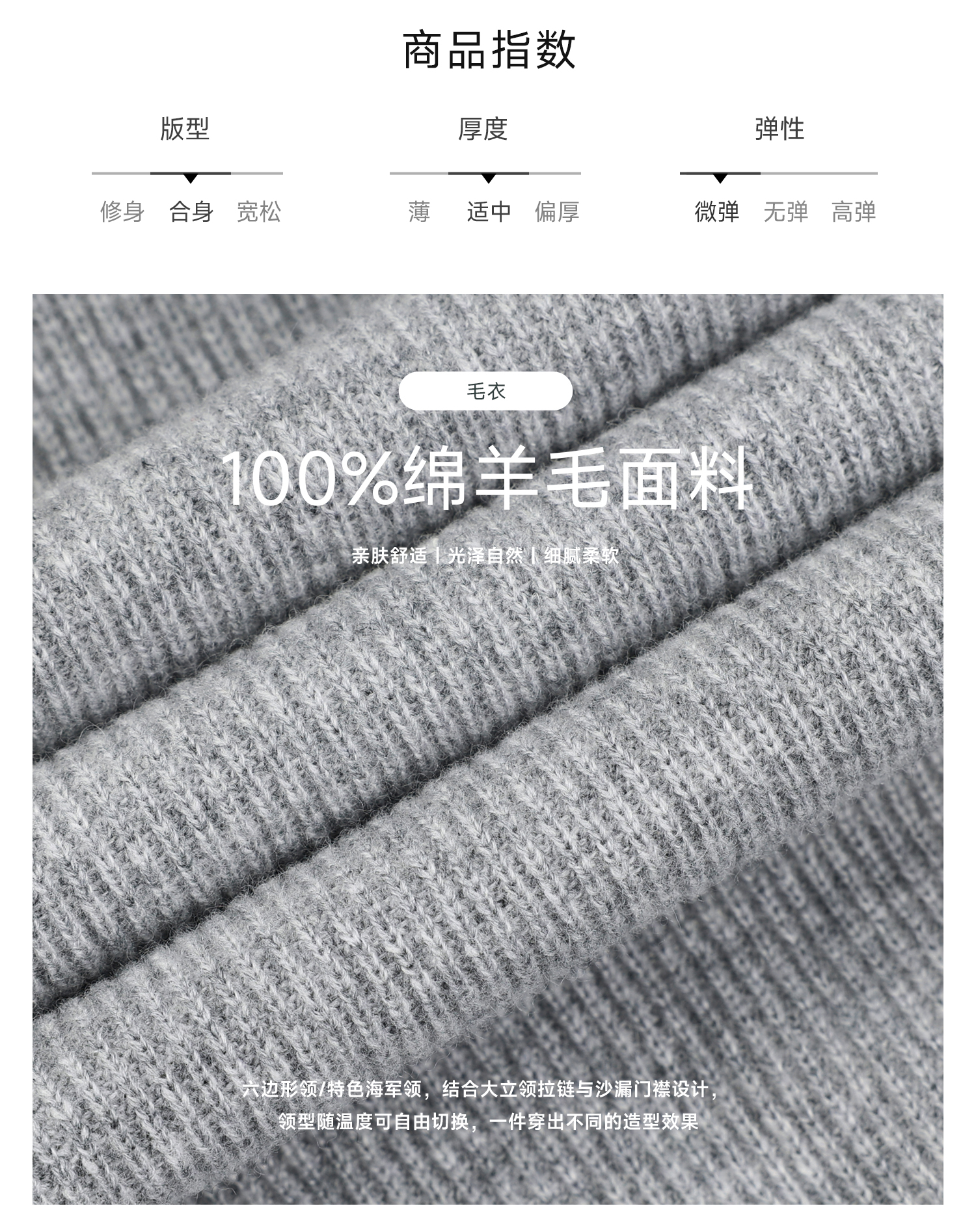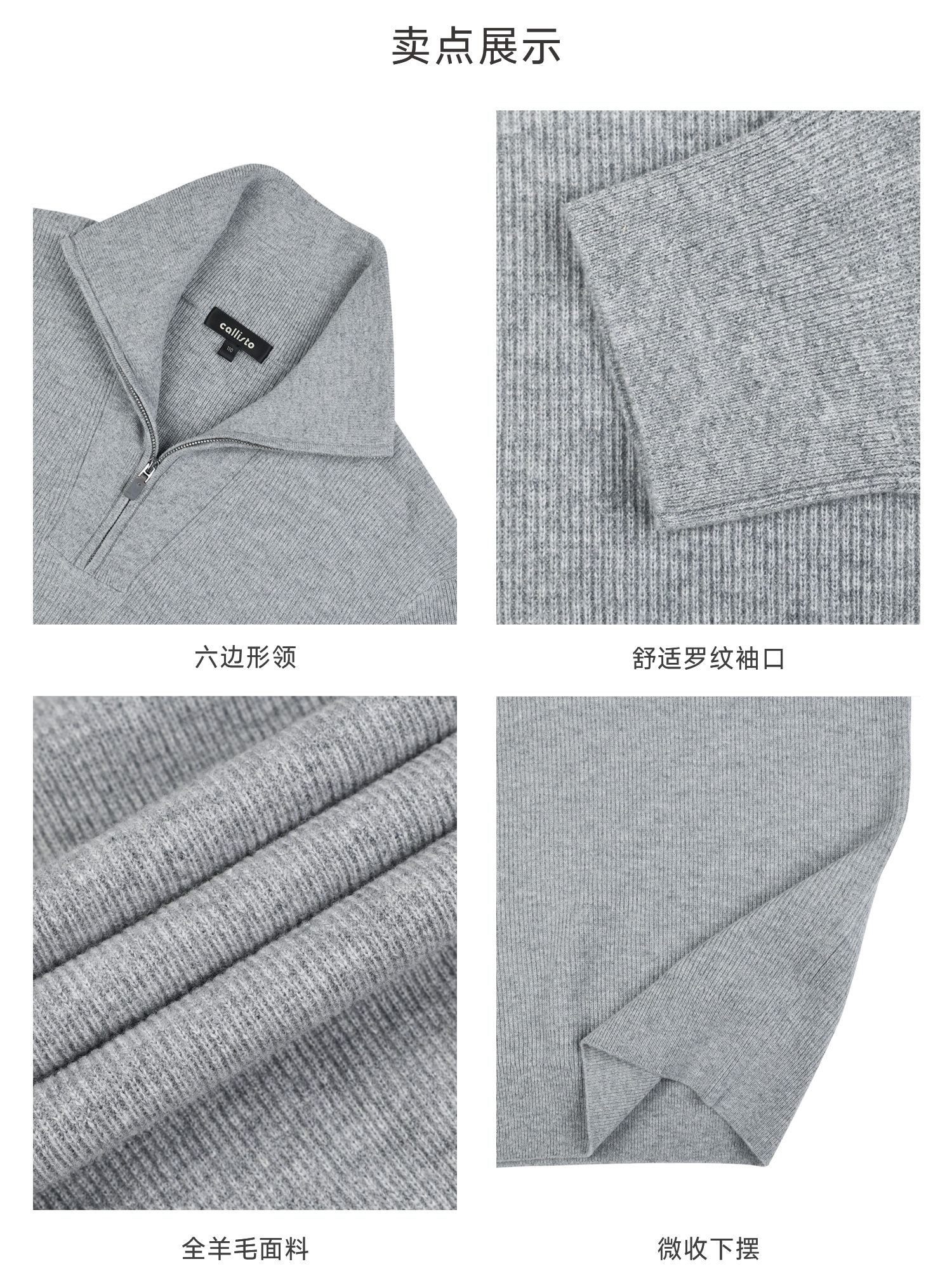 callisto海豚灰美丽诺羊毛海军领拉链毛衣