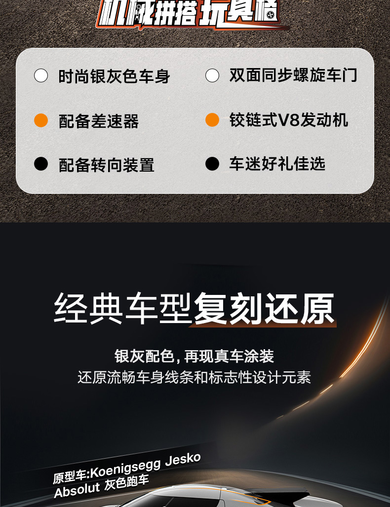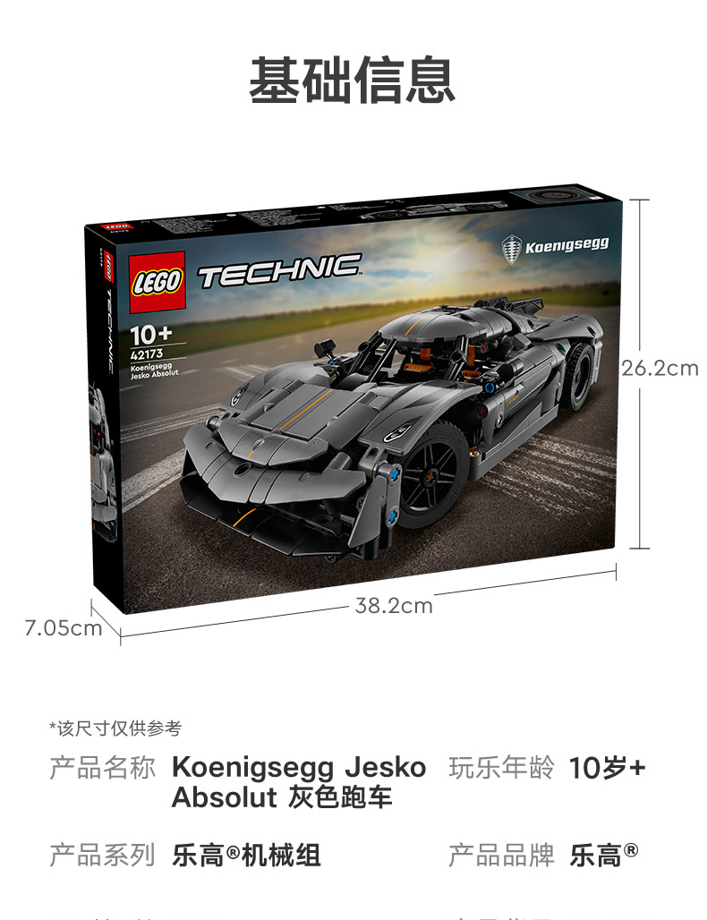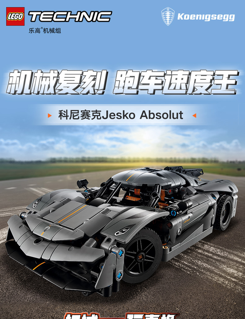 乐高LEGO Koenigsegg Jesko Absolut灰色超跑LEGC42173