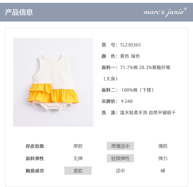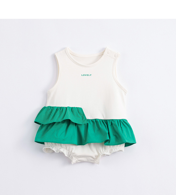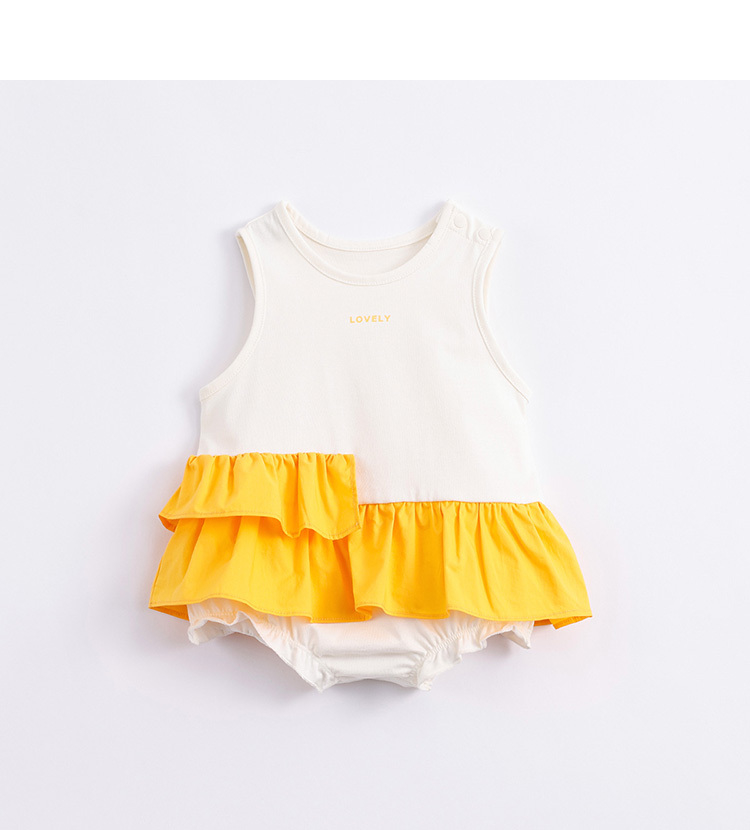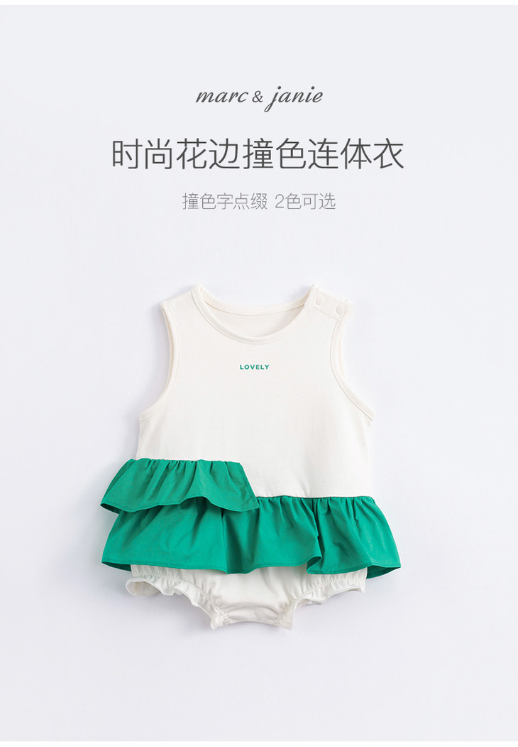 马克珍妮新款夏装 女童不规则花边摆背心连体衣230365