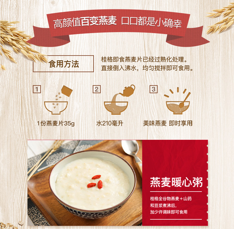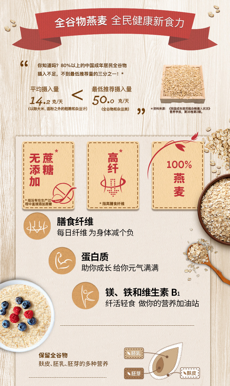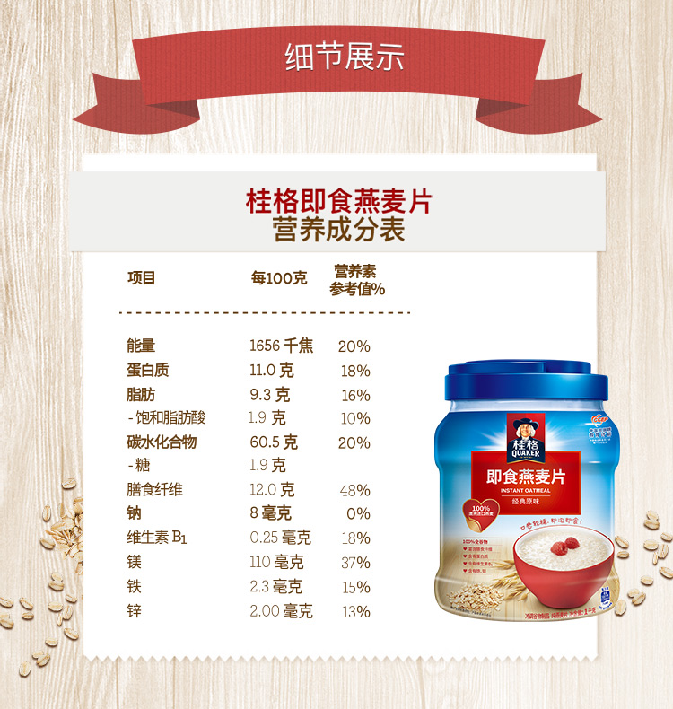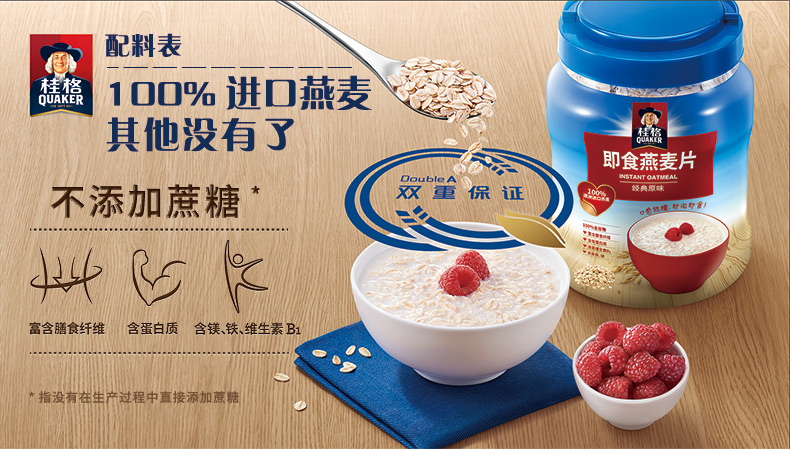 桂格早餐谷物 无额外添加蔗糖 膳食纤维 即食燕麦片 1000克 罐装