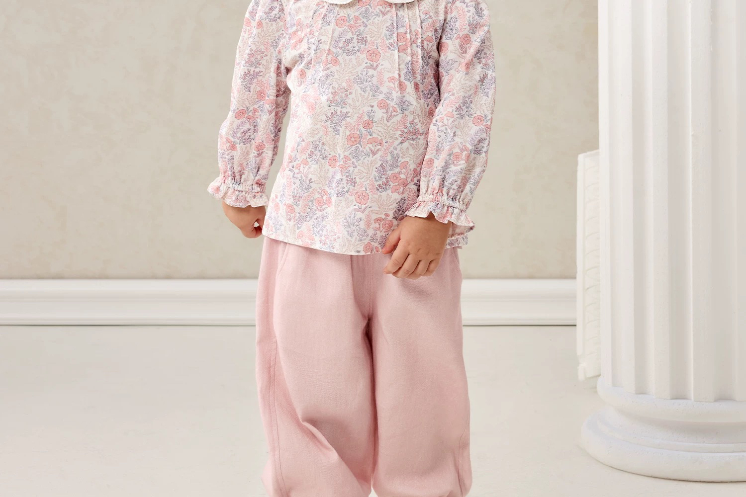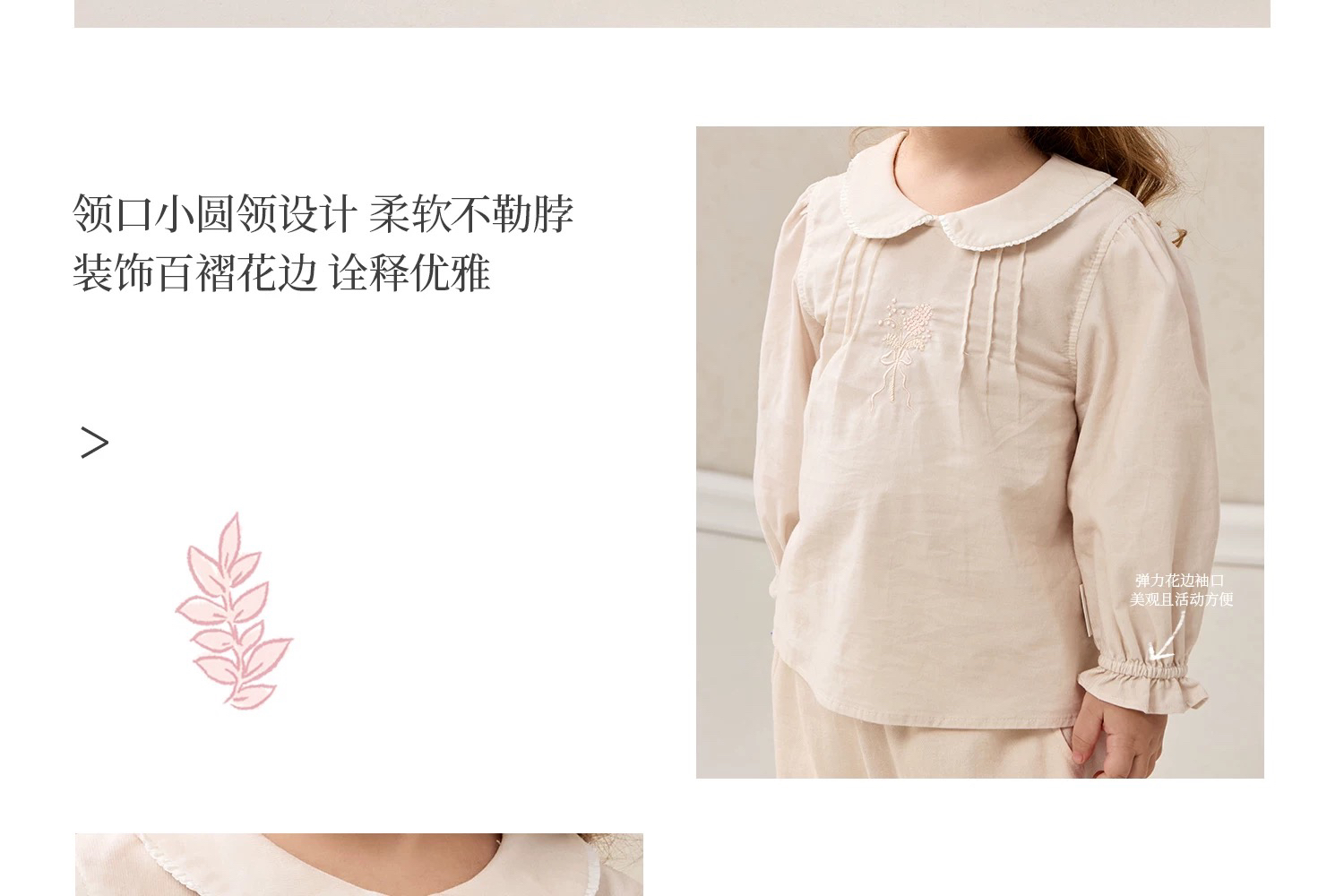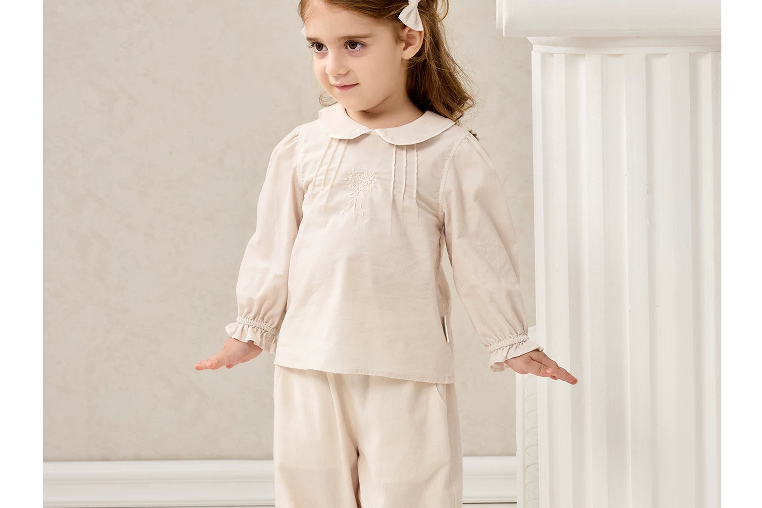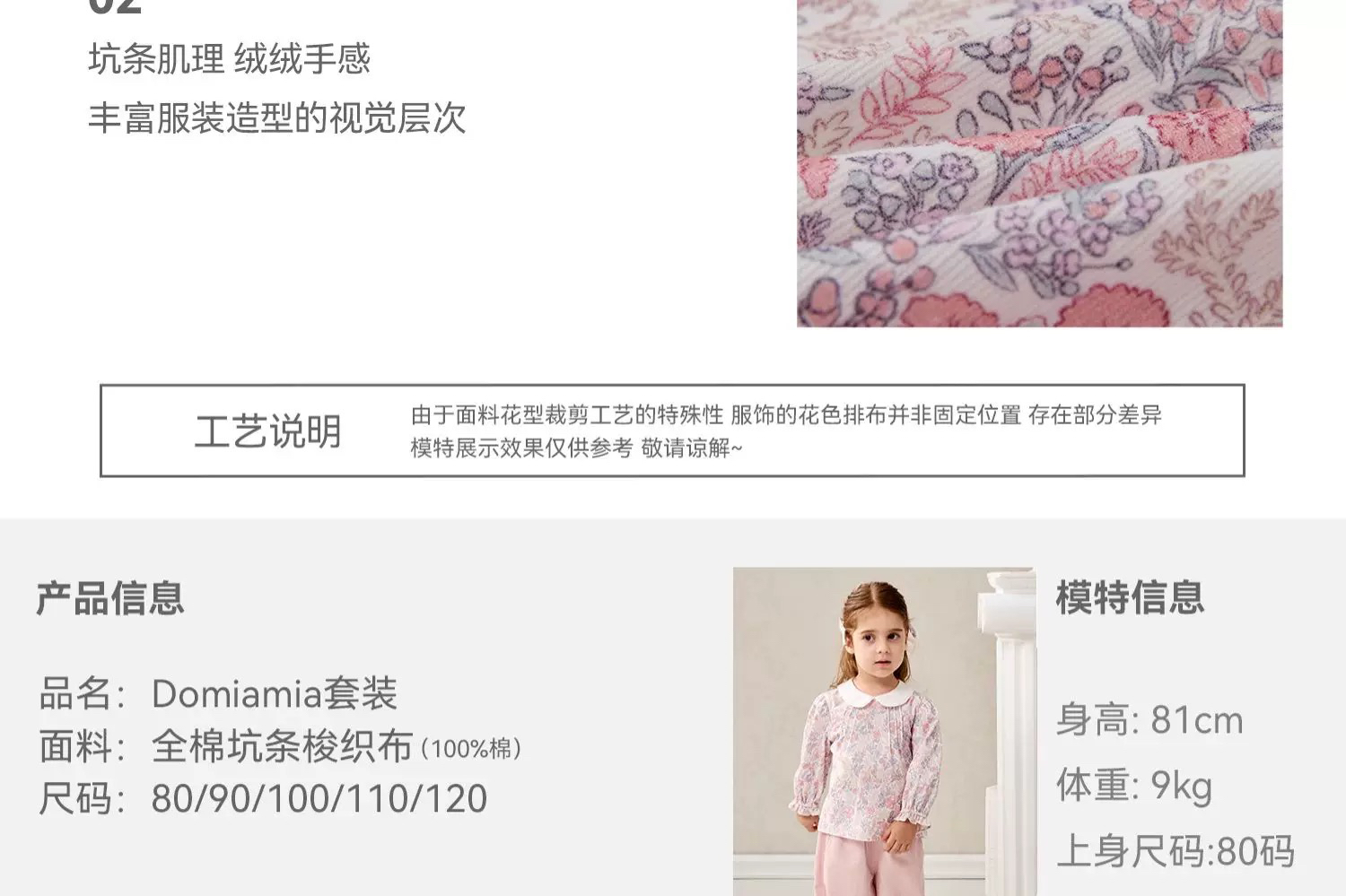 Domiamia 女宝宝套装 全棉坑条长袖花边领上衣 全棉斜纹花边长裤 洋气穿搭