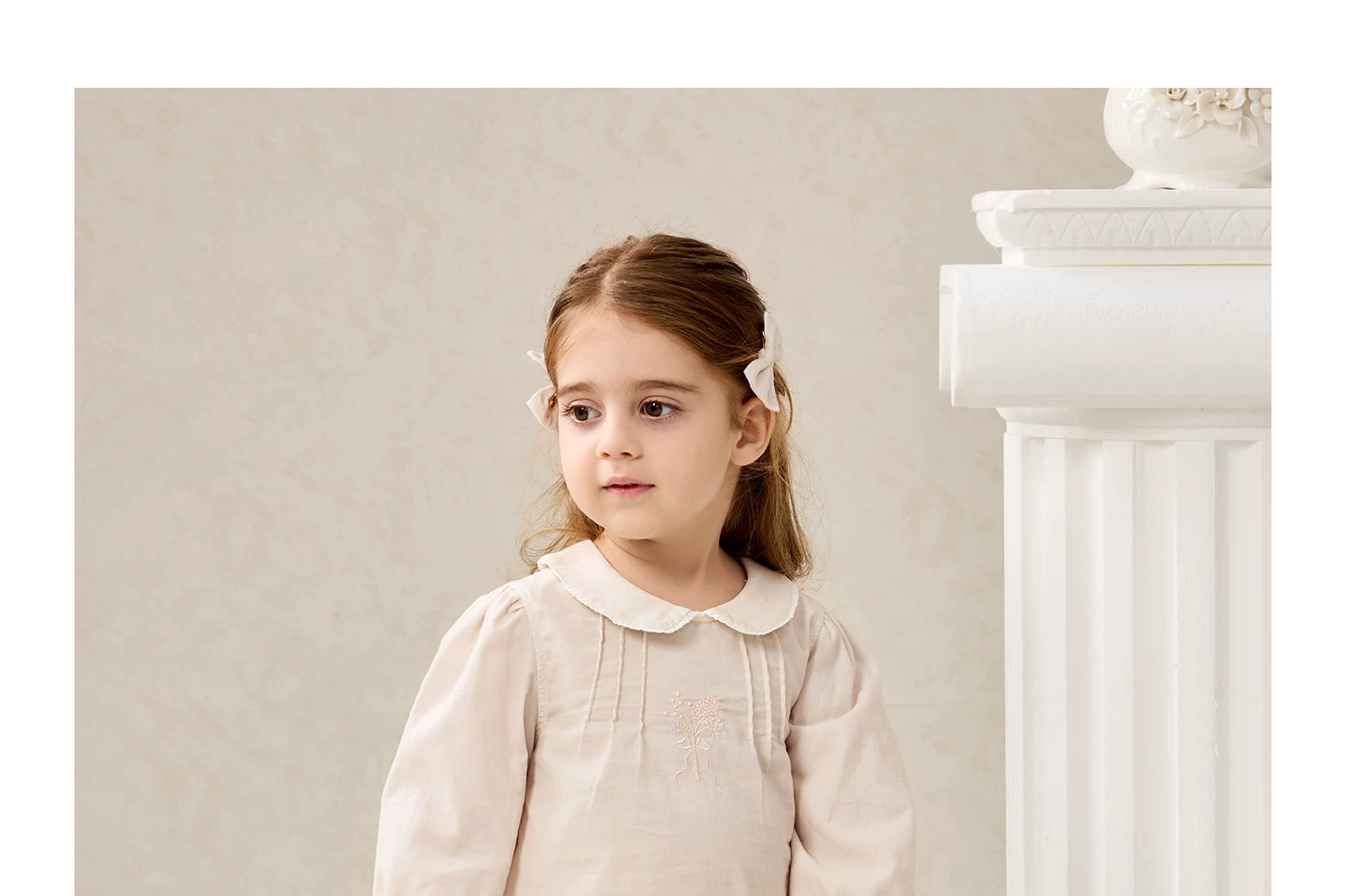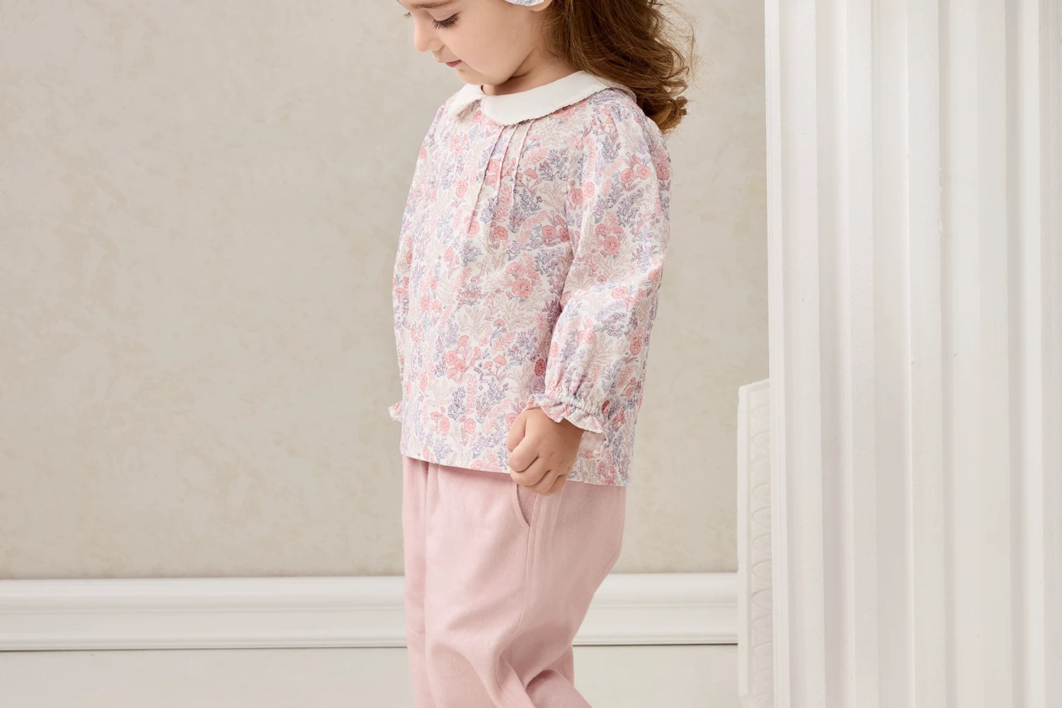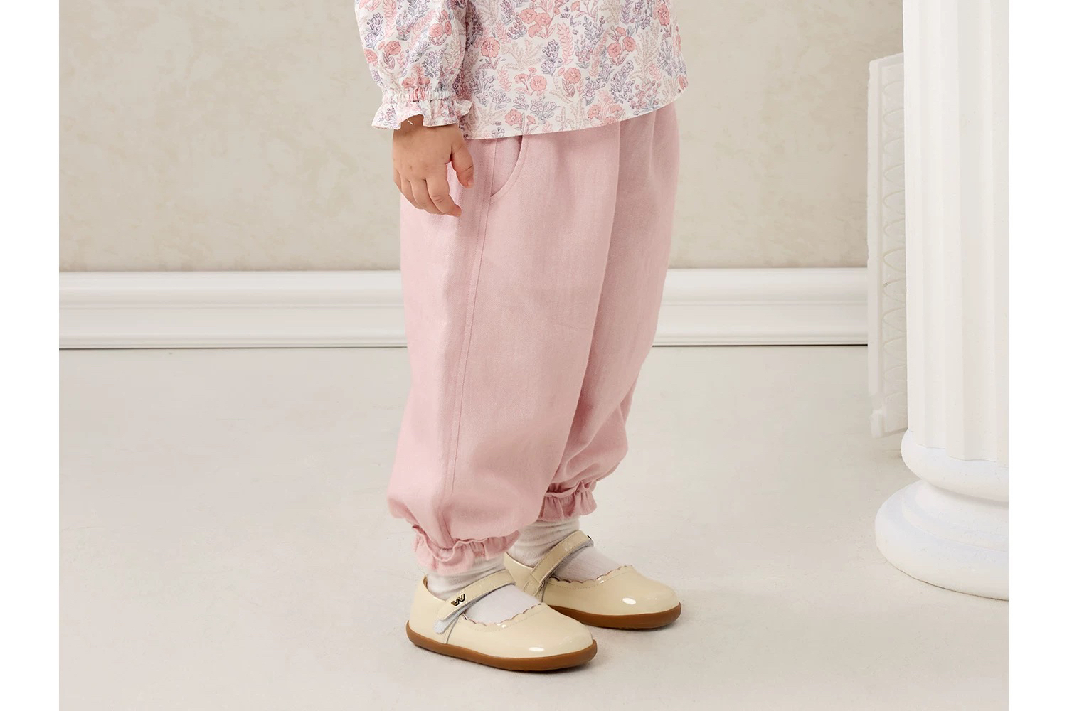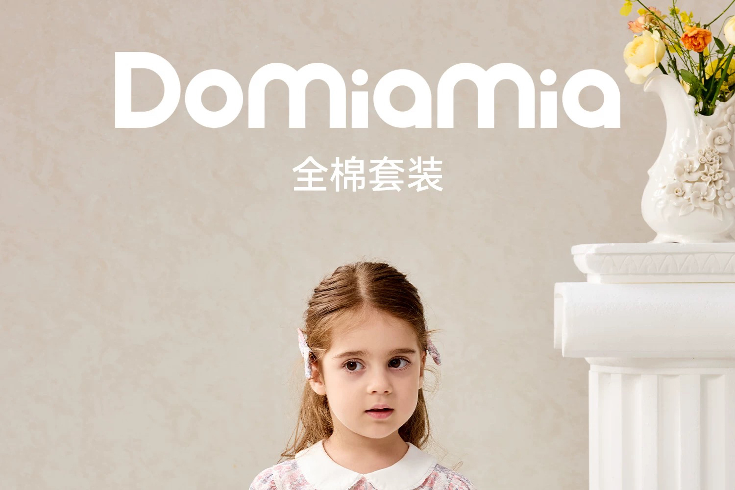 Domiamia 女宝宝套装 全棉坑条长袖花边领上衣 全棉斜纹花边长裤 洋气穿搭