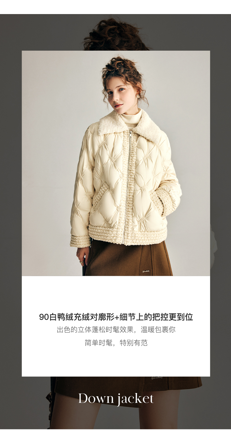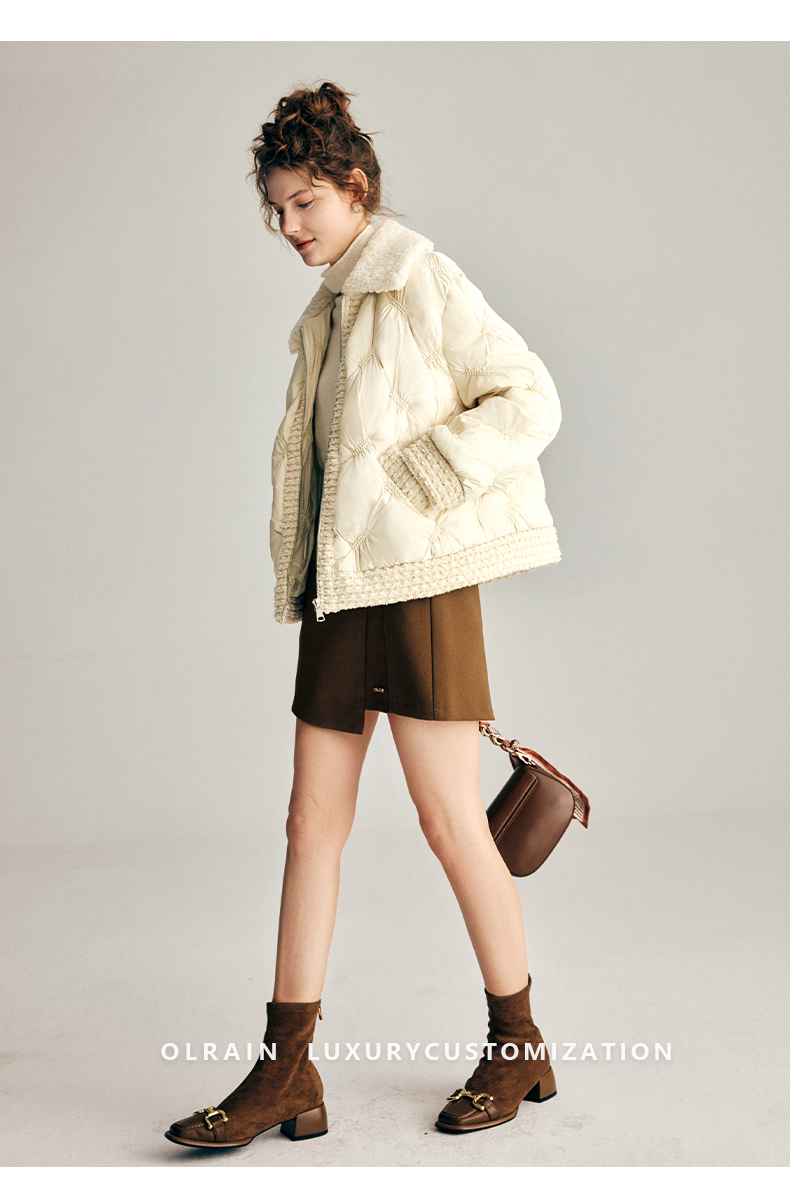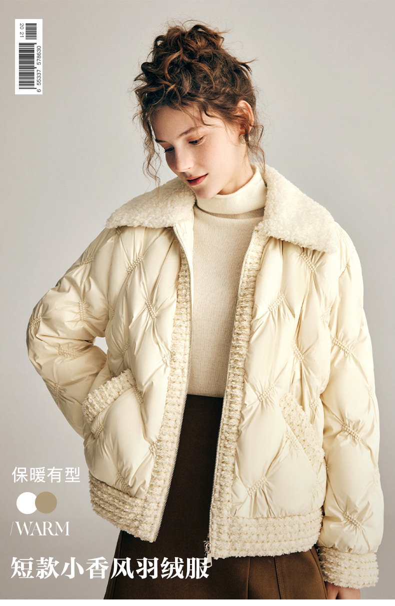OLrain欧芮儿法式小香风短款羽绒服女秋冬2022新款保暖白鸭绒外套
