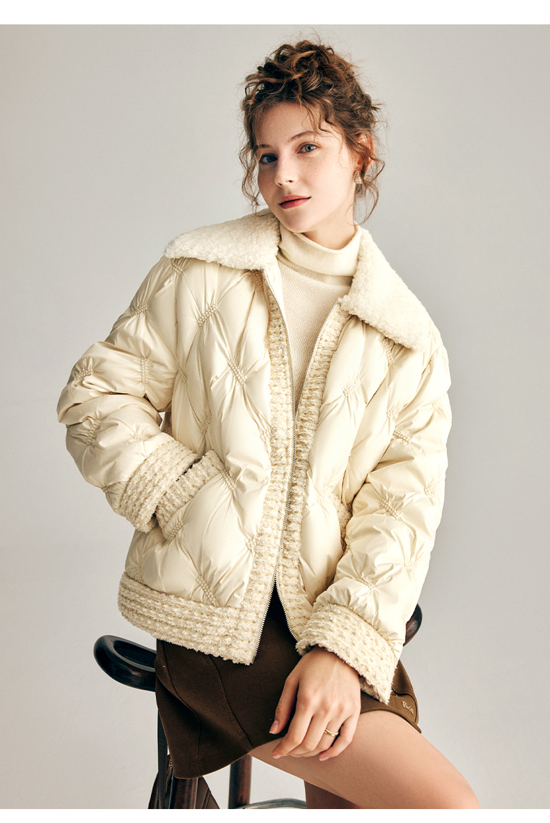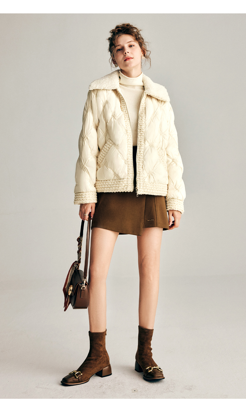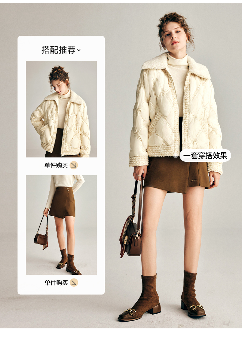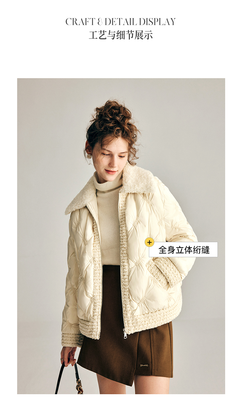 OLrain欧芮儿法式小香风短款羽绒服女秋冬2022新款保暖白鸭绒外套