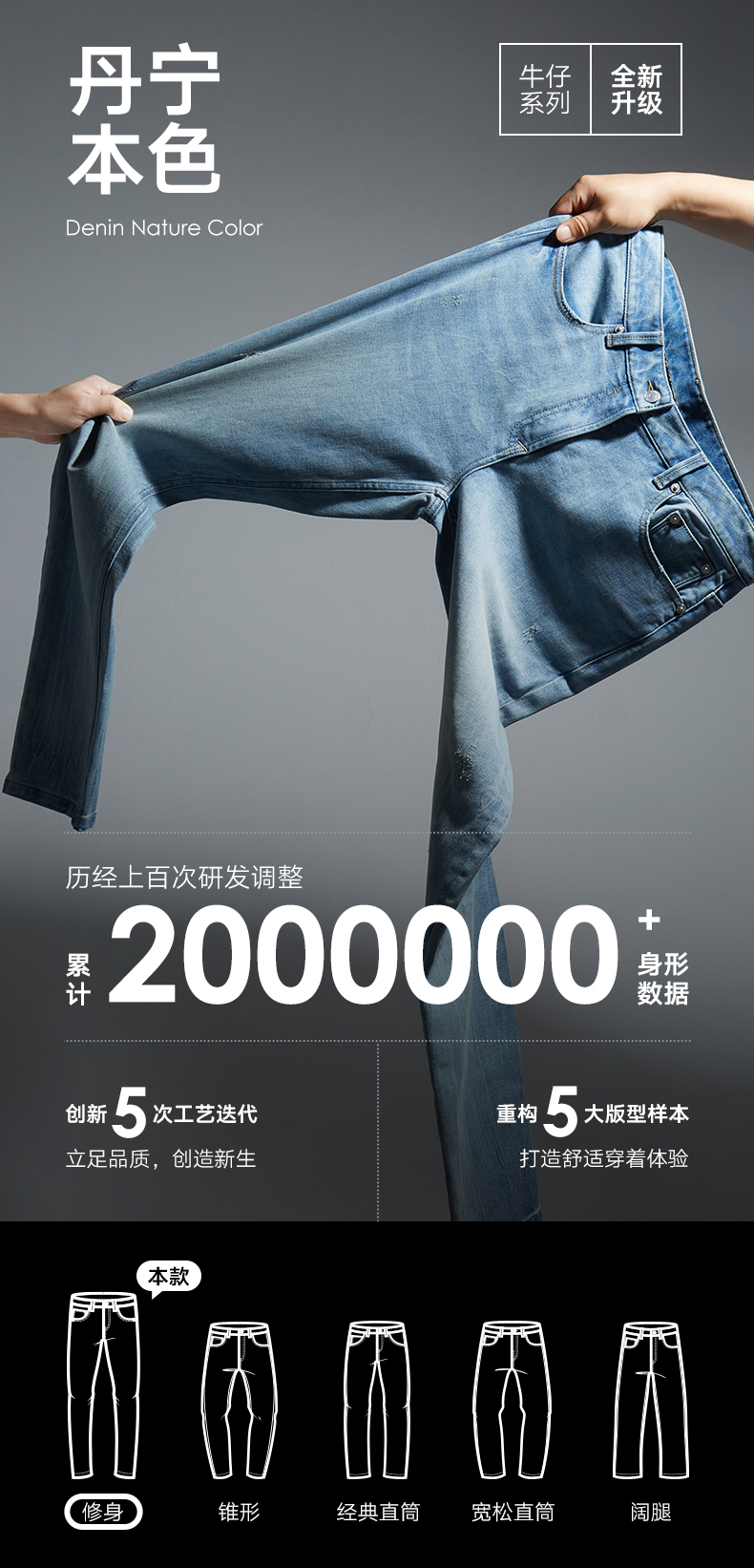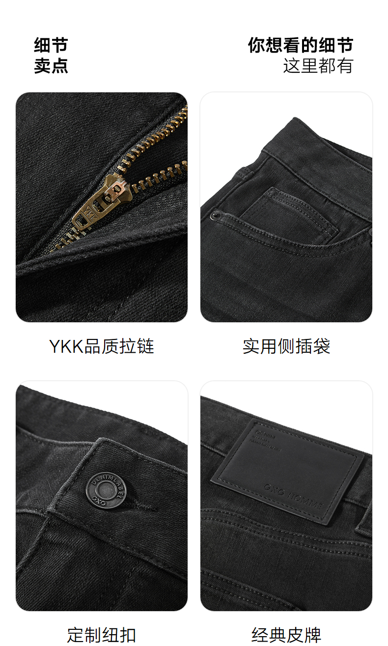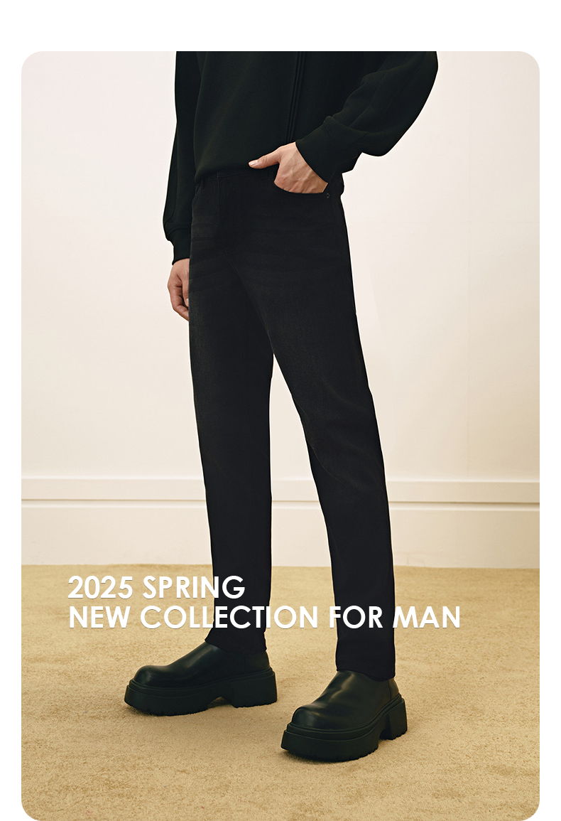 GXG男装 黑色修身牛仔裤弹力休闲裤通勤男小脚长裤 2025春季热卖