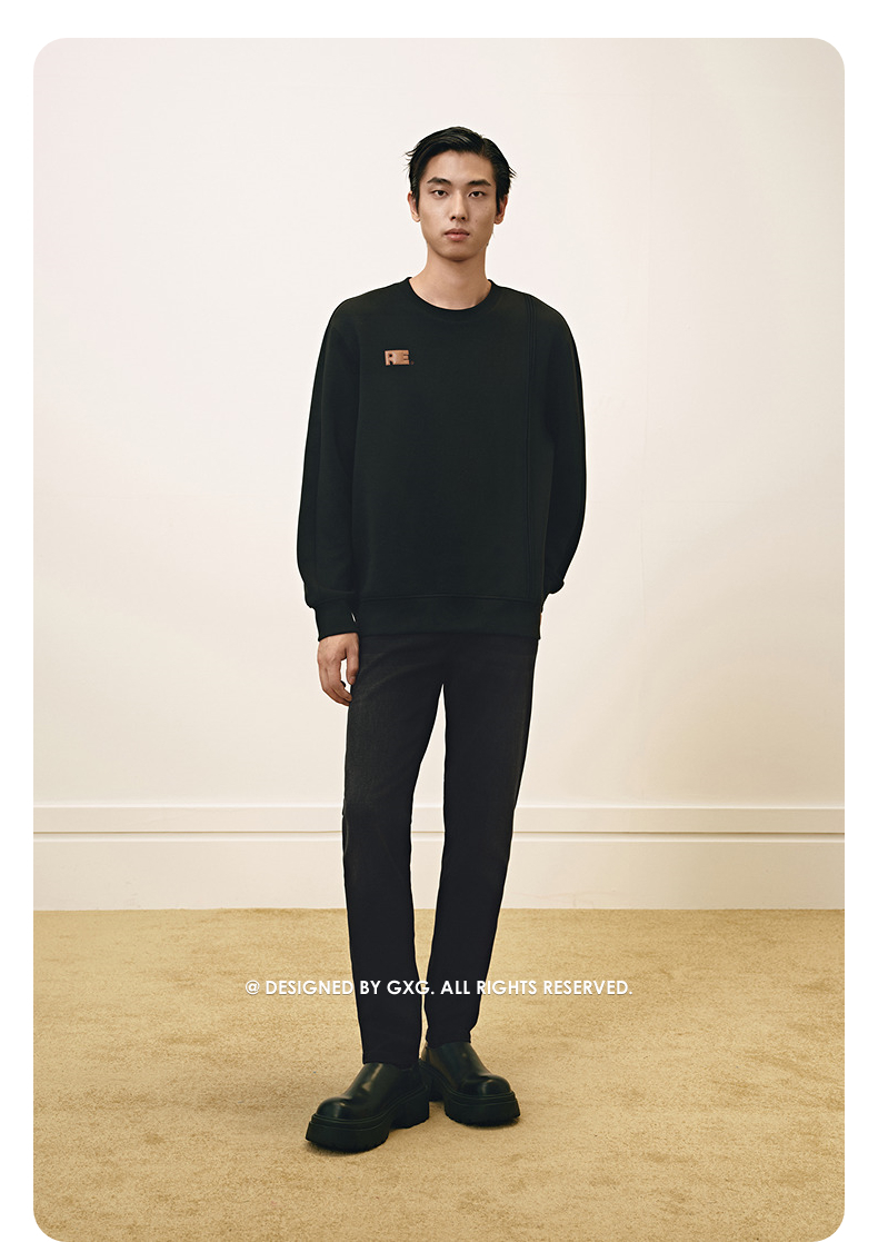 GXG男装黑色后背图案休闲通勤卫衣24冬热卖G24X314037
