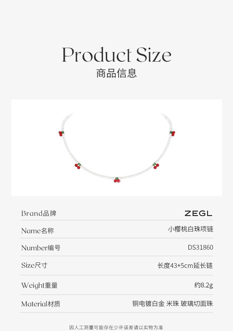 ZEGL樱桃项链女夏轻奢小众高级感人造珍珠2022年新款潮甜酷锁骨链