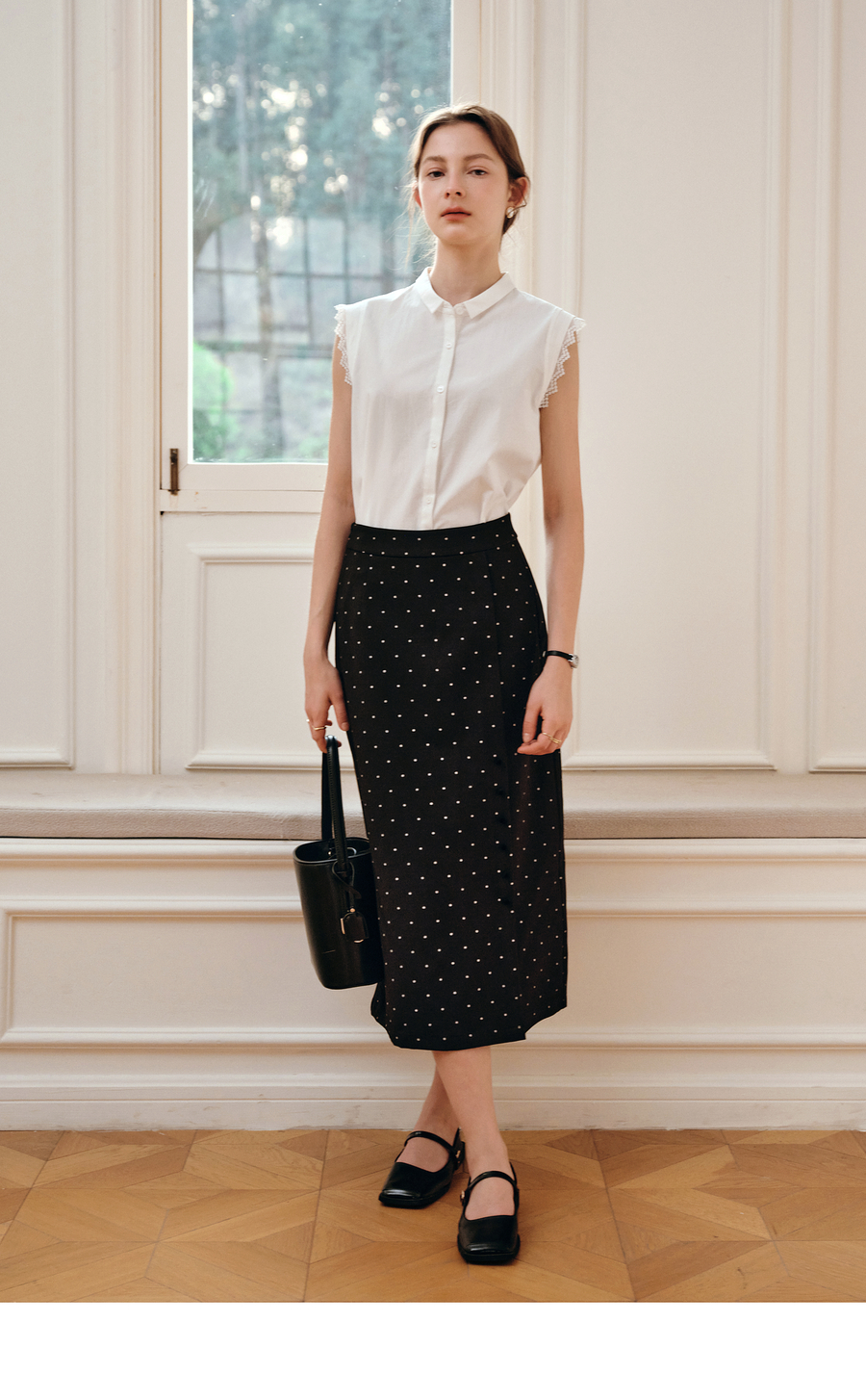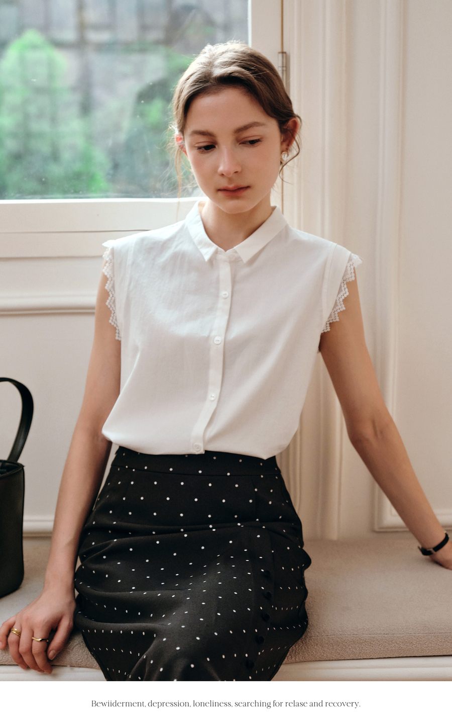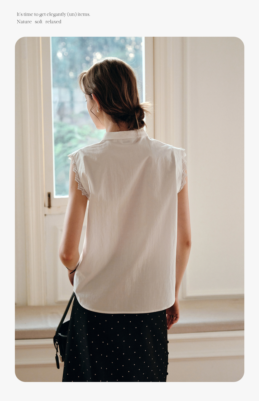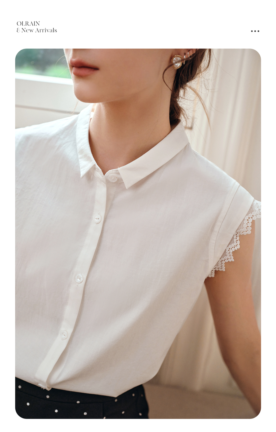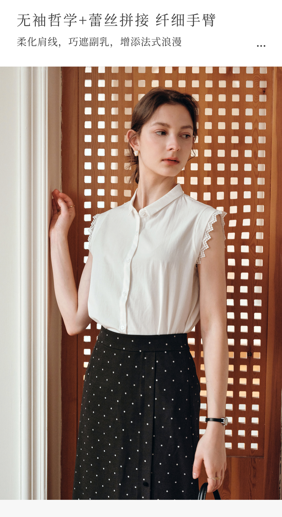 OLrain欧芮儿白色设计感衬衫女夏季2025新款翻领蕾丝拼接无袖上衣